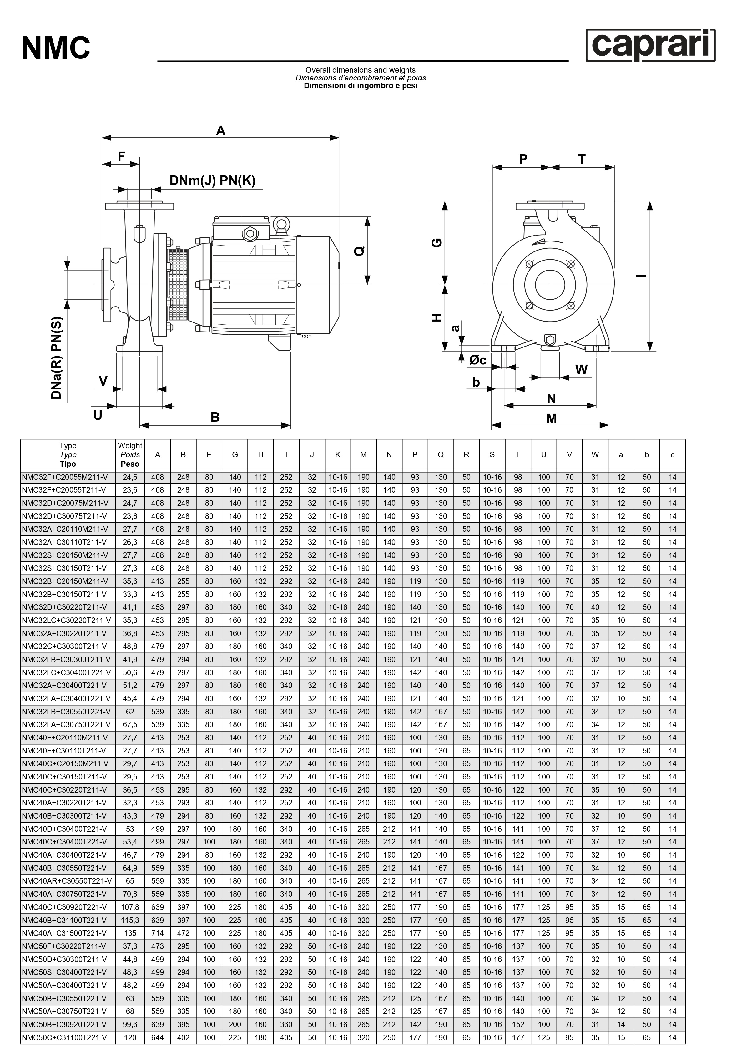 Поверхностные одноступенчатые консольно-моноблочные насосы Caprari серии NMC доступны как с цельным валом, так и с удлиненным валом насоса и нормализованными 2- и 4-полюсными двигателями.