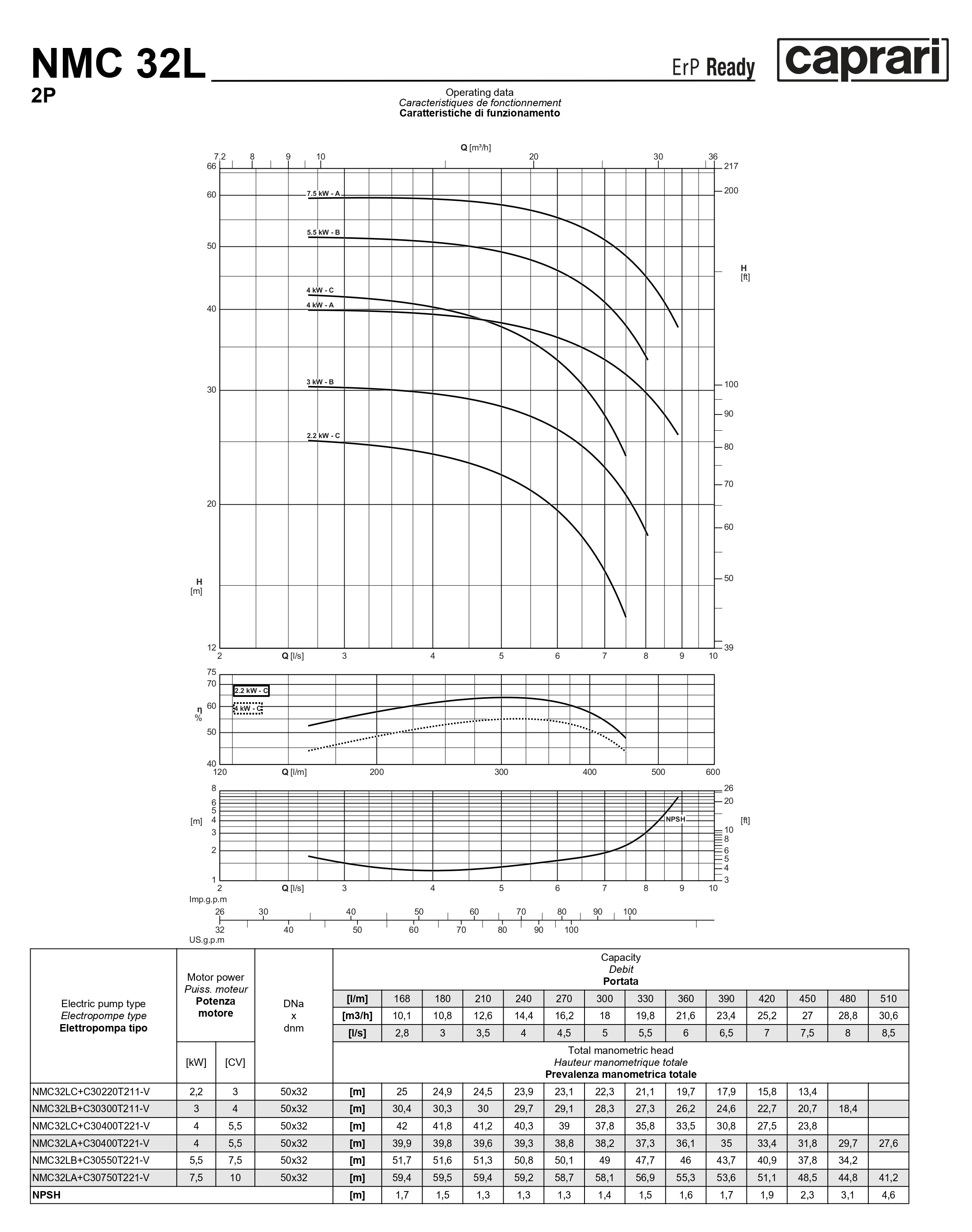 Поверхностные одноступенчатые консольно-моноблочные насосы Caprari NMC 32L 2P