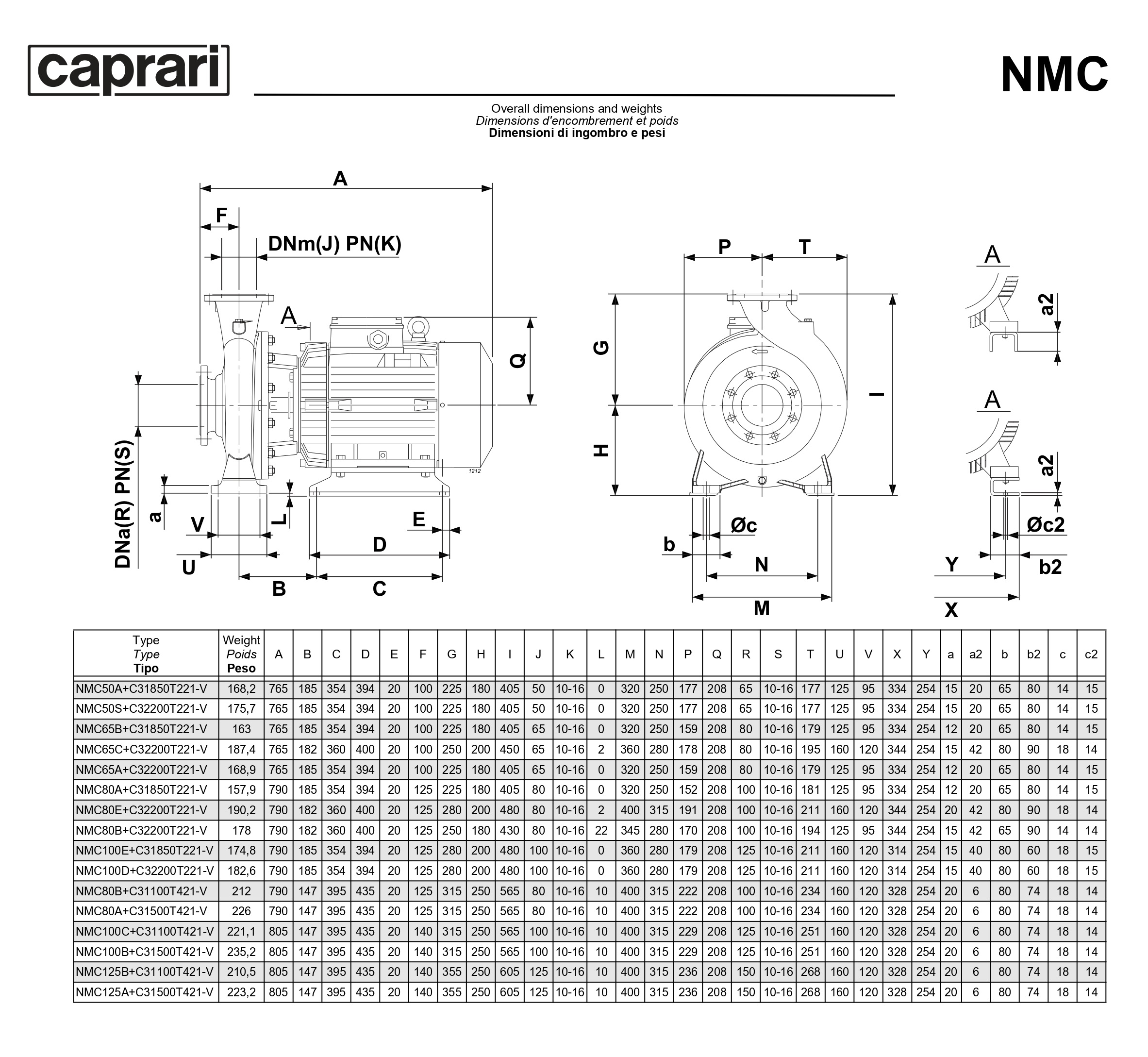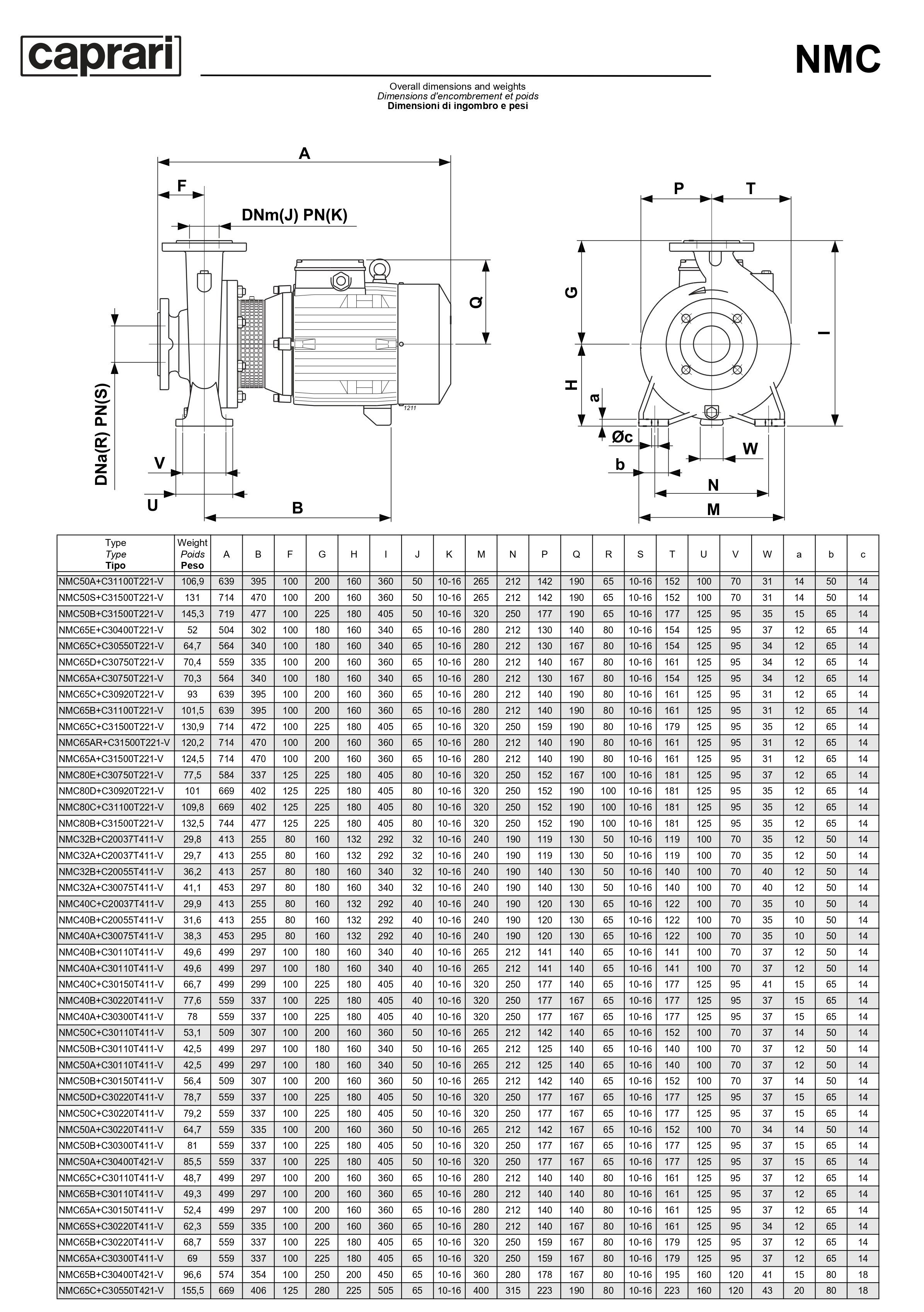 Поверхностные одноступенчатые консольно-моноблочные насосы Caprari серии NMC доступны как с цельным валом, так и с удлиненным валом насоса и нормализованными 2- и 4-полюсными двигателями.