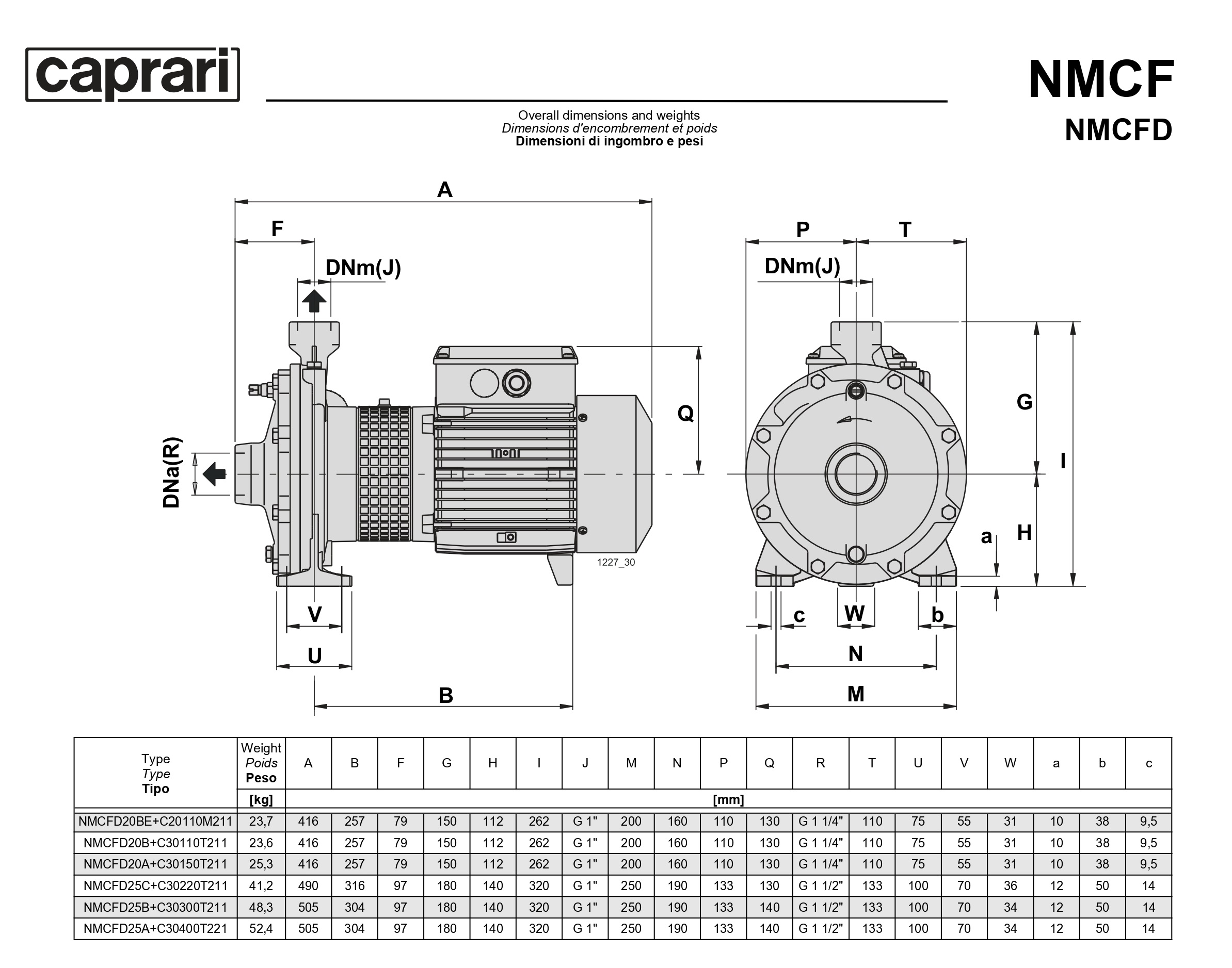 Поверхностные одноступенчатые консольно-моноблочные насосы Caprari NMCF 20