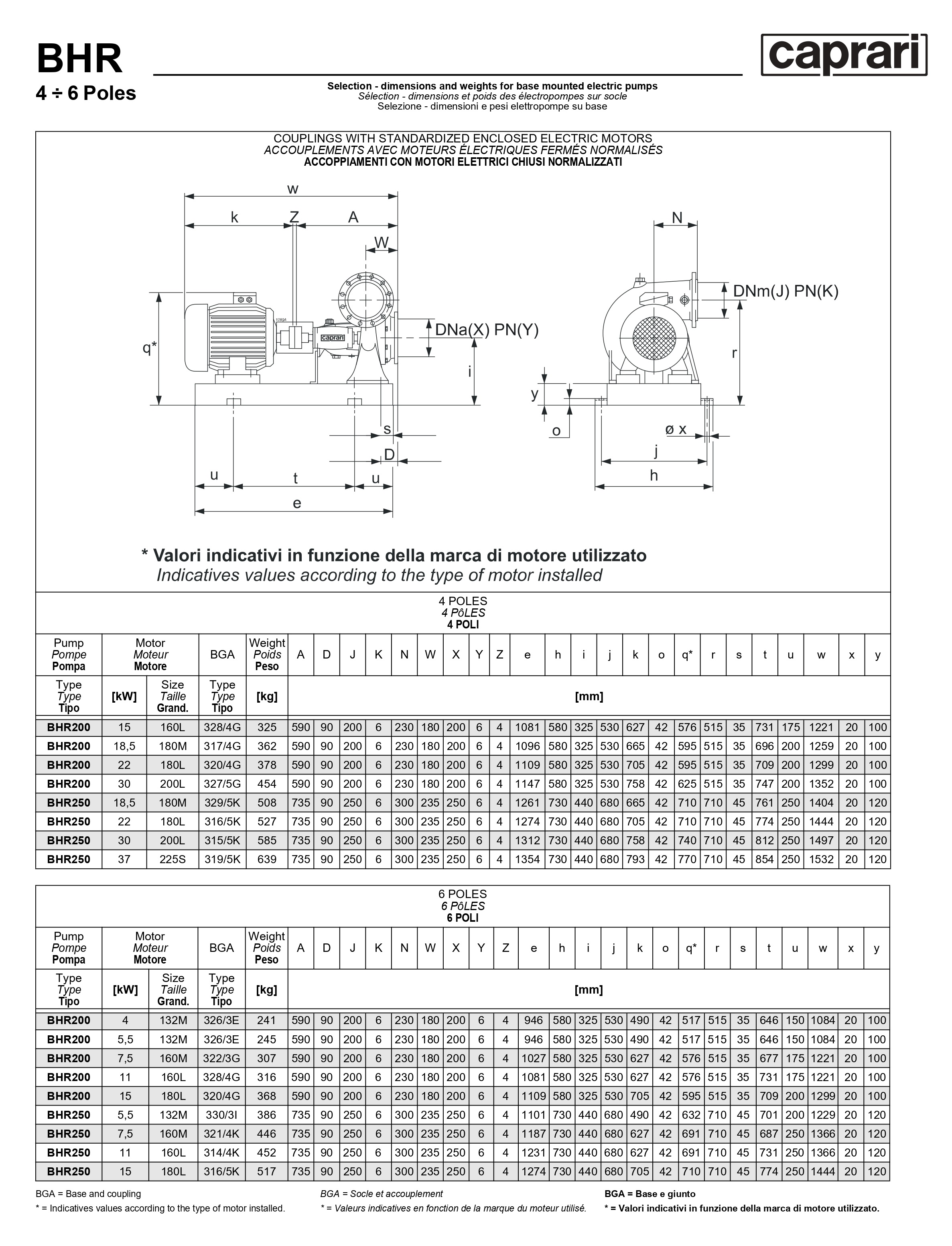 Горизонтальные одноступенчатые насосы Caprari серии BHR. Могут агрегатироваться как с 6- и 4-полюсными электродвигателями, так и с дизельными двигателями. Насосы, обеспечивающие значительный расход, находят свое применение в ирригации, рыбоводстве и промышленности в целом.Область применения