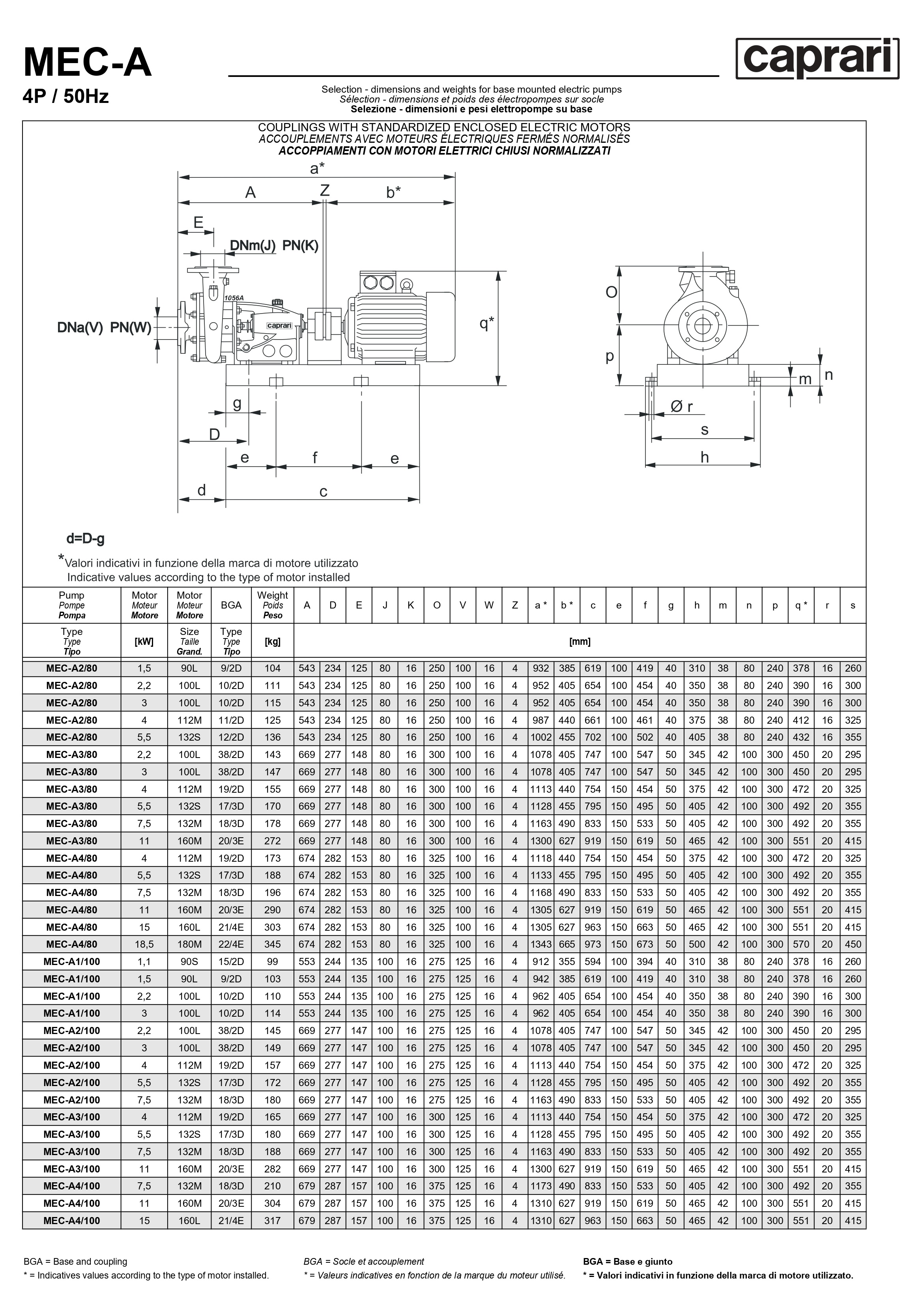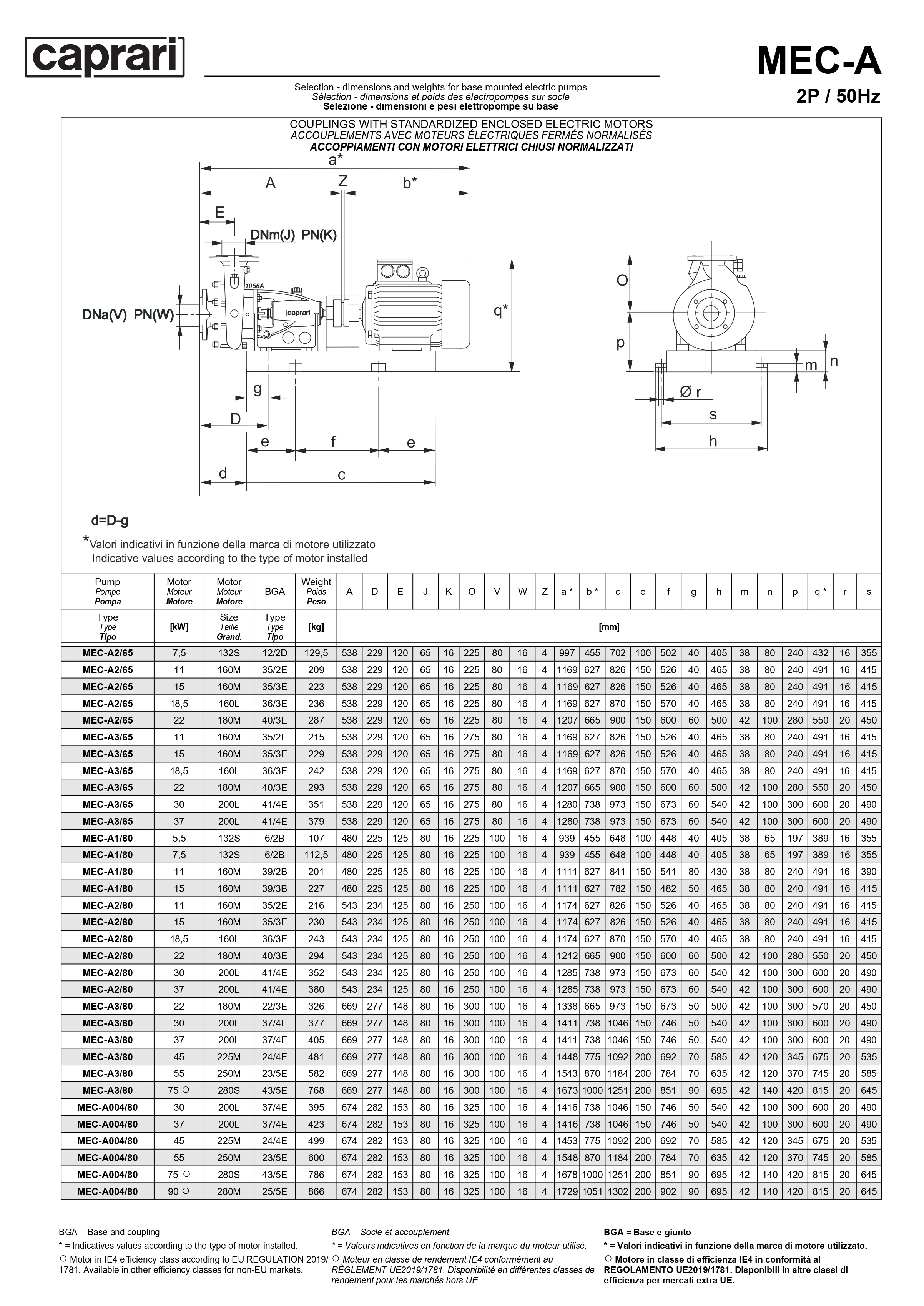 Горизонтальные одноступенчатые насосы Caprari MEC-A с разъемным корпусом. Изготовлен из чугунной гидравлики и стального вала. Выпускается с приводами от электродвигателя или дизельного двигателя. Имеет механическое уплотнение. Подходит для систем гражданского и промышленного водоснабжения, мелиорации, орошения и промышленности.Область применения