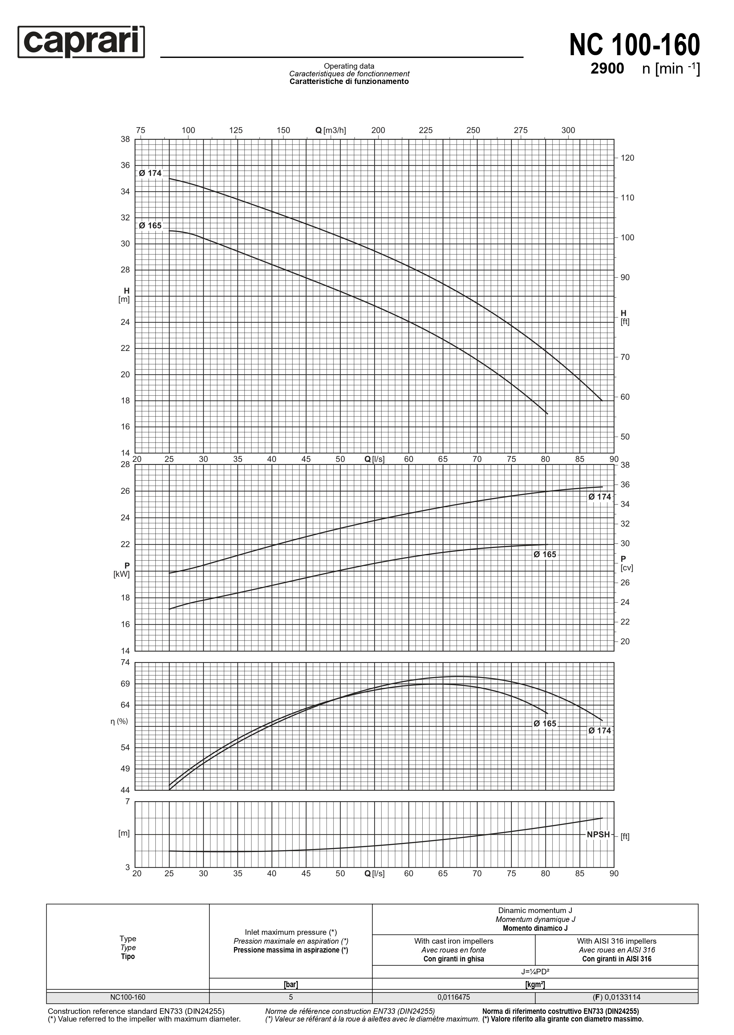 Одноступенчатые горизонтальные центробежные насосы Caprari NC 100-160 2900