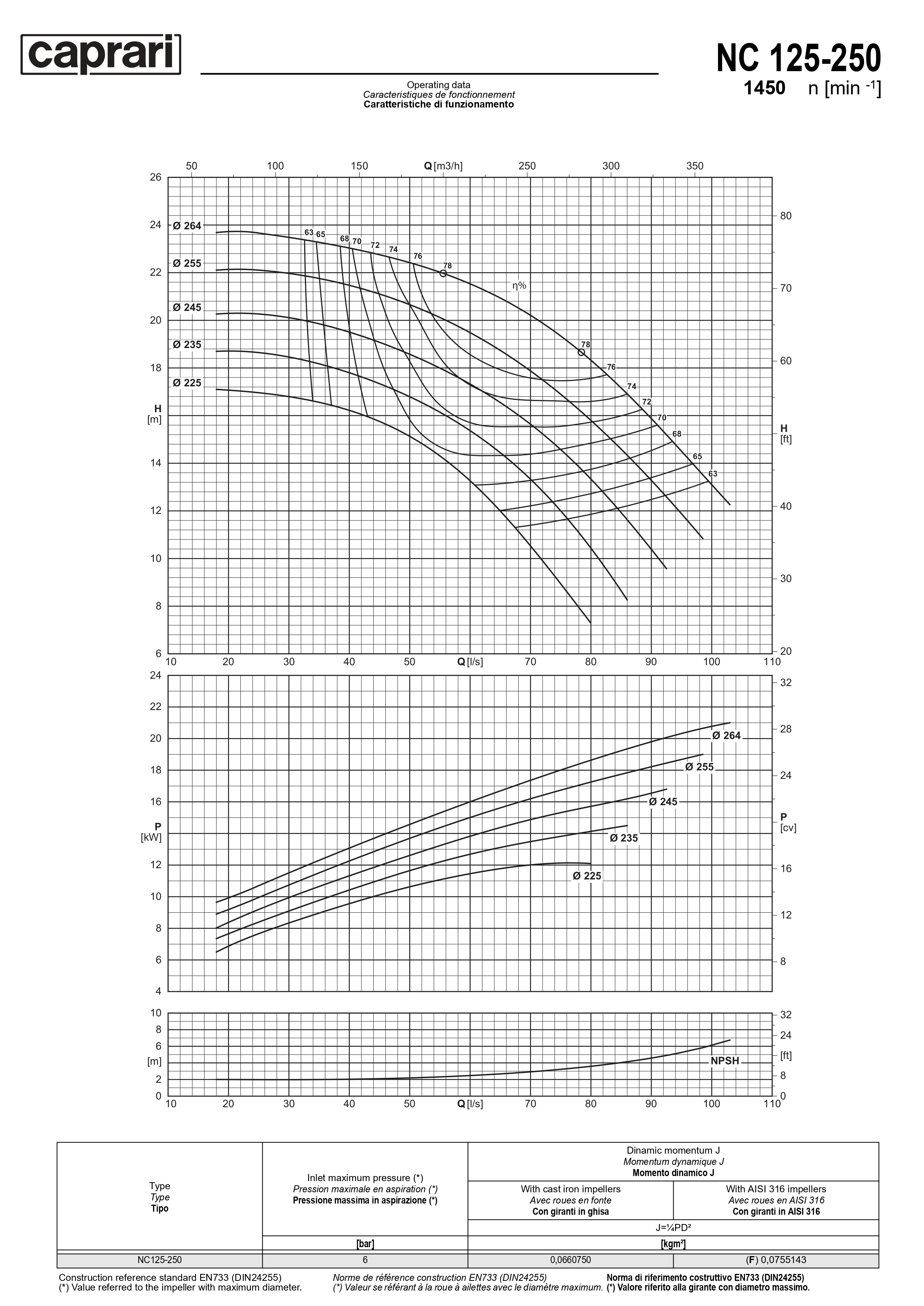 Одноступенчатые горизонтальные центробежные насосы Caprari NC 125-250 1450