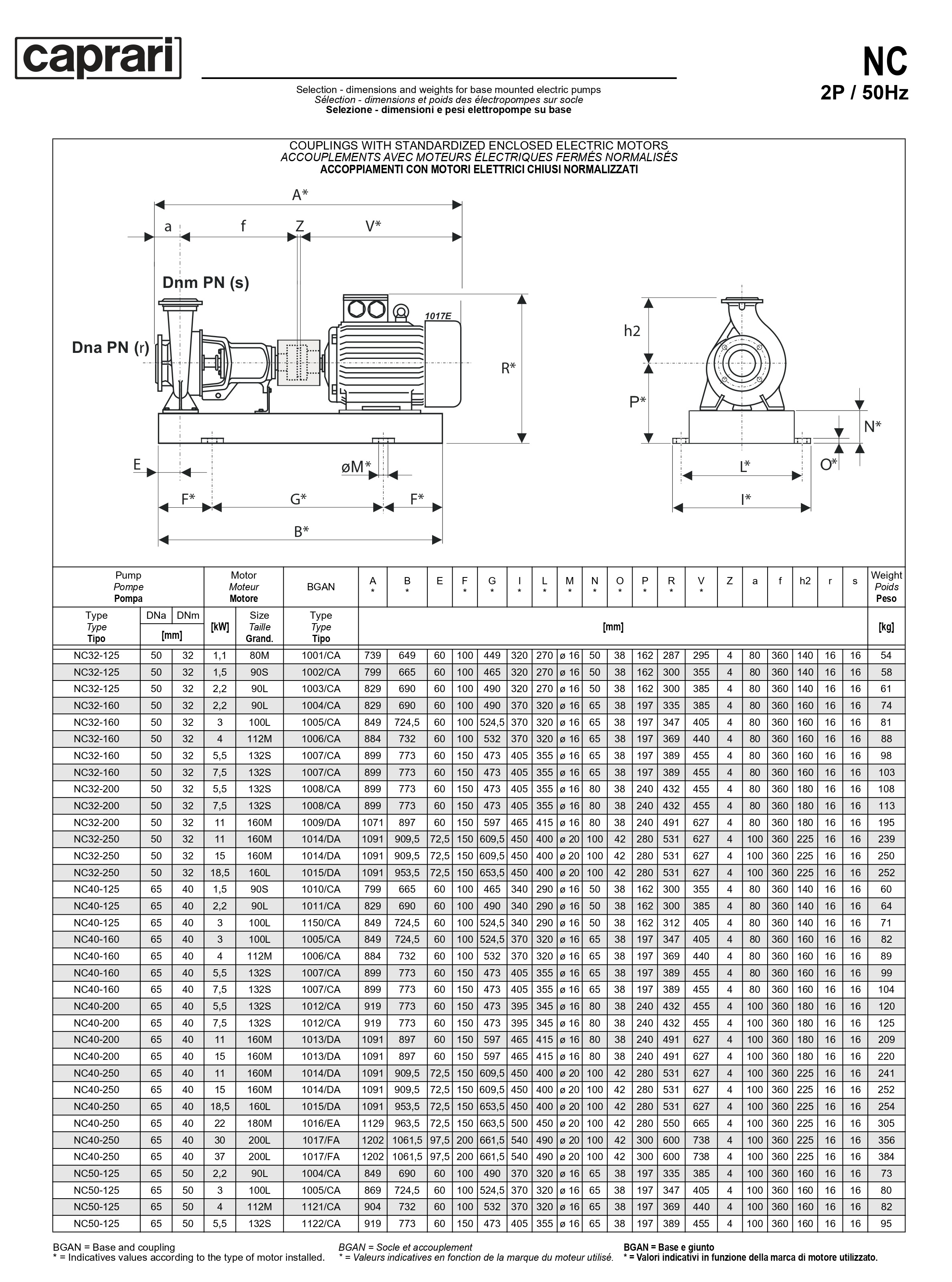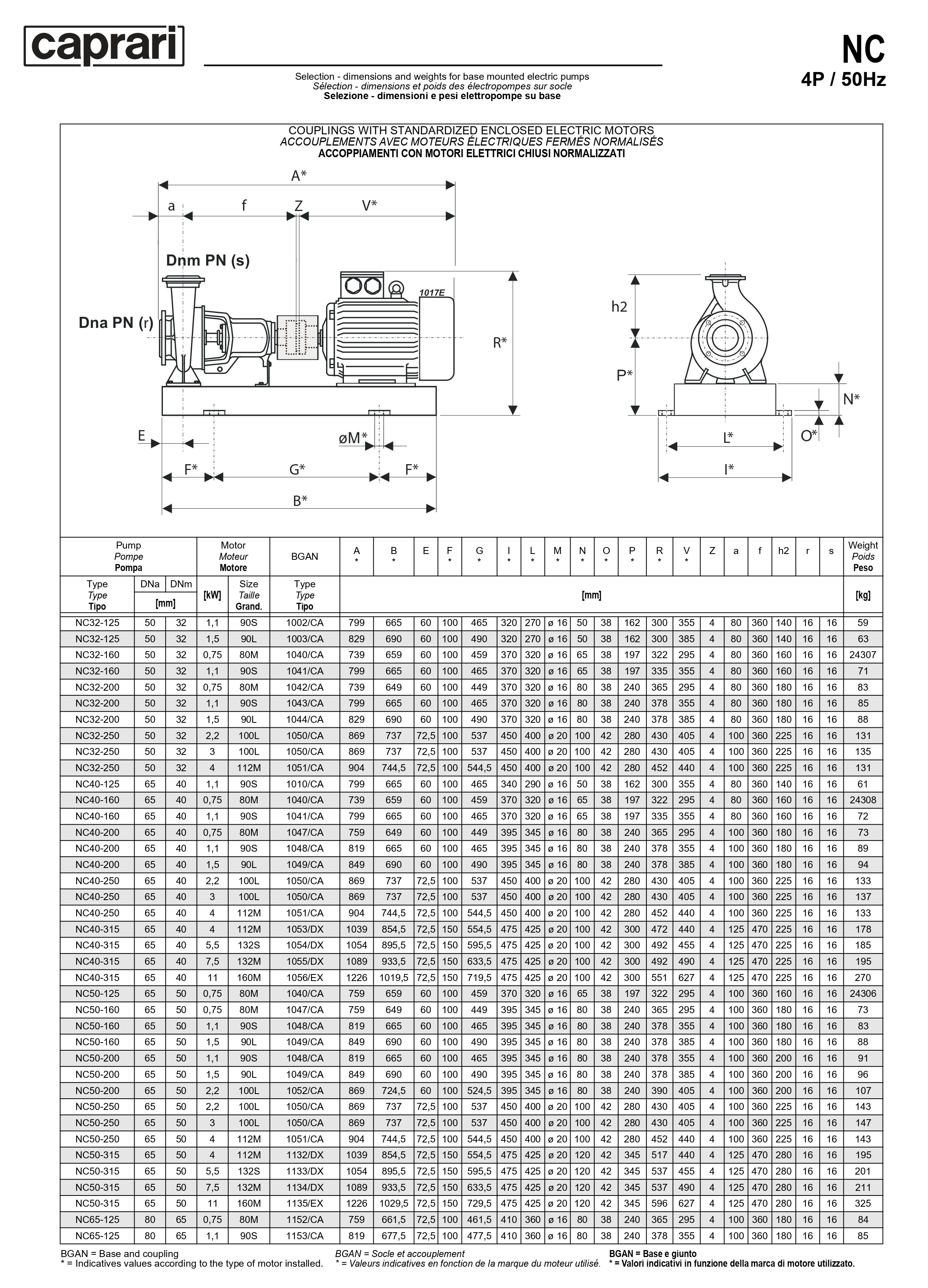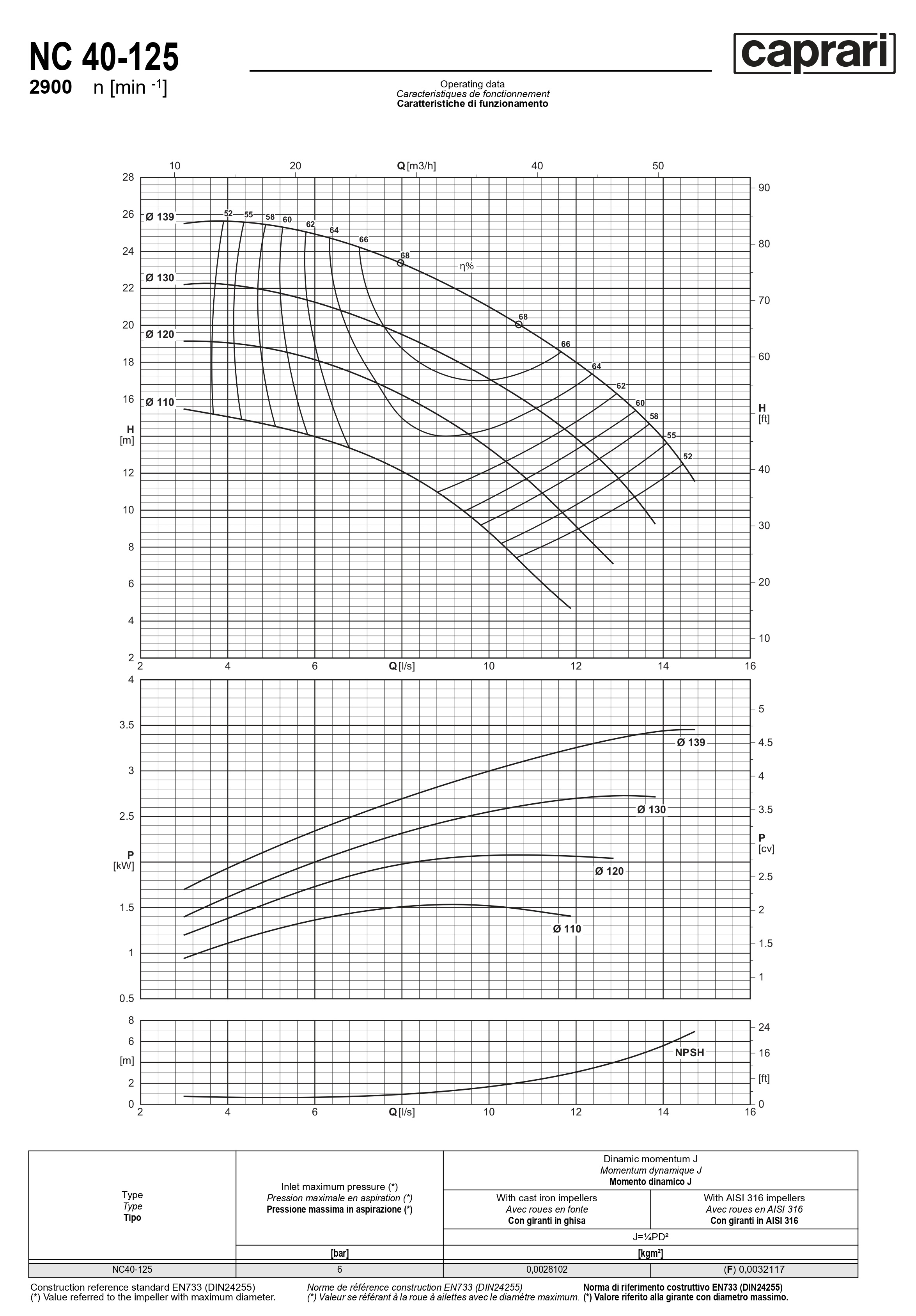 Одноступенчатые горизонтальные центробежные насосы Caprari NC 40-125 2900