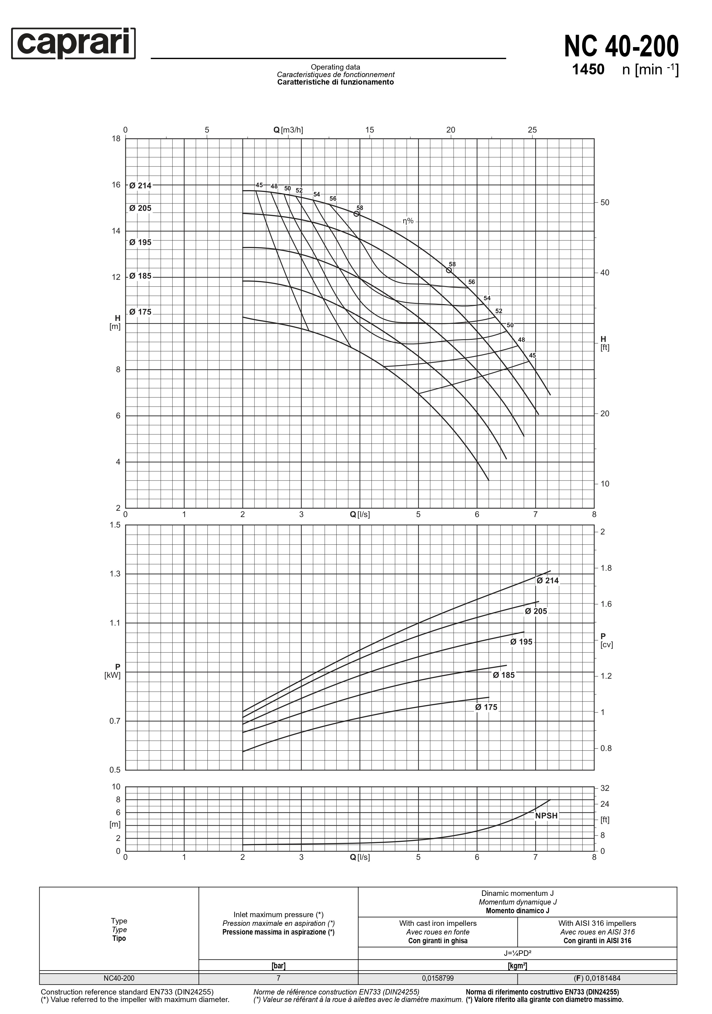 Одноступенчатые горизонтальные центробежные насосы Caprari NC 40-200 1450