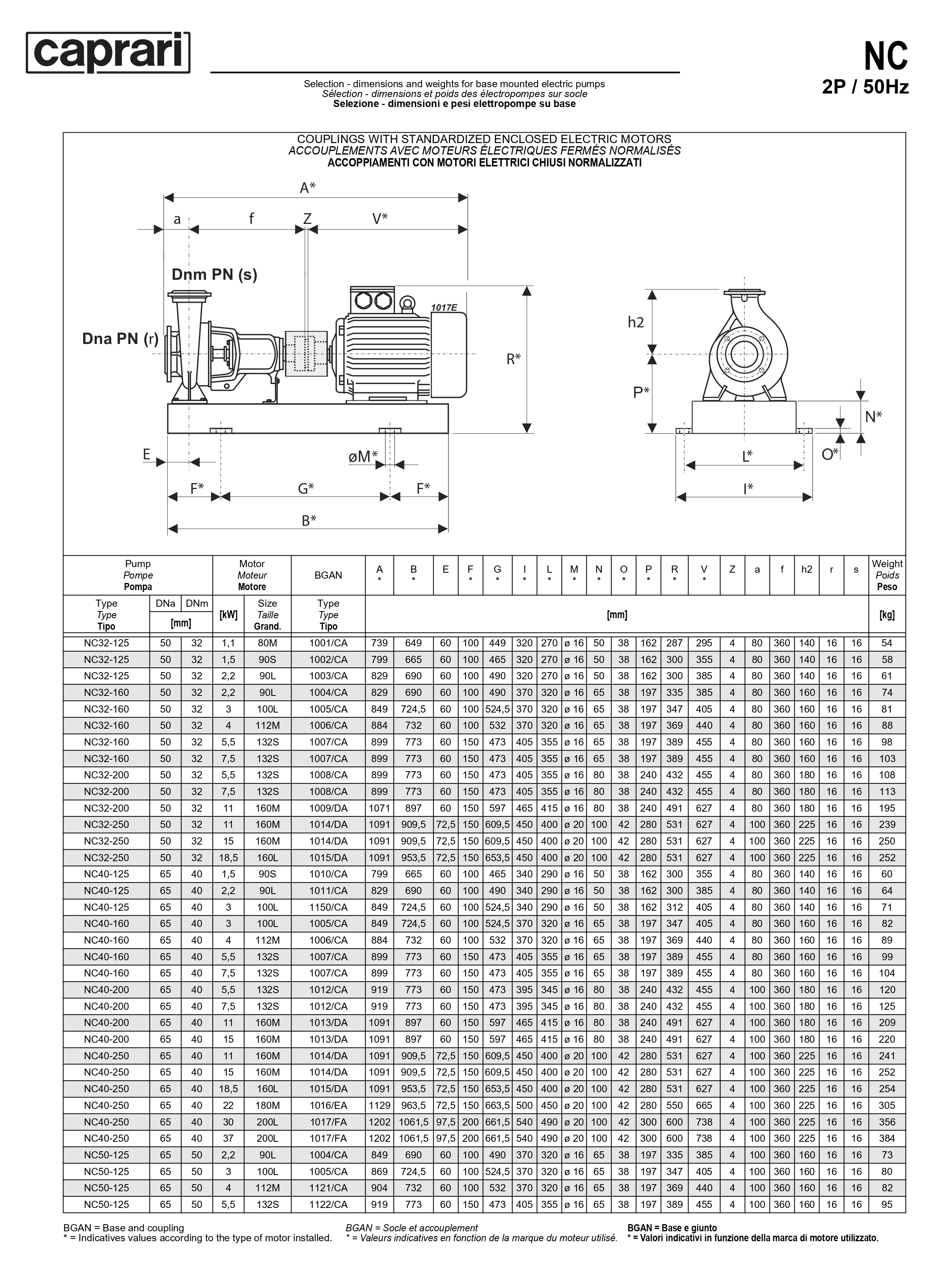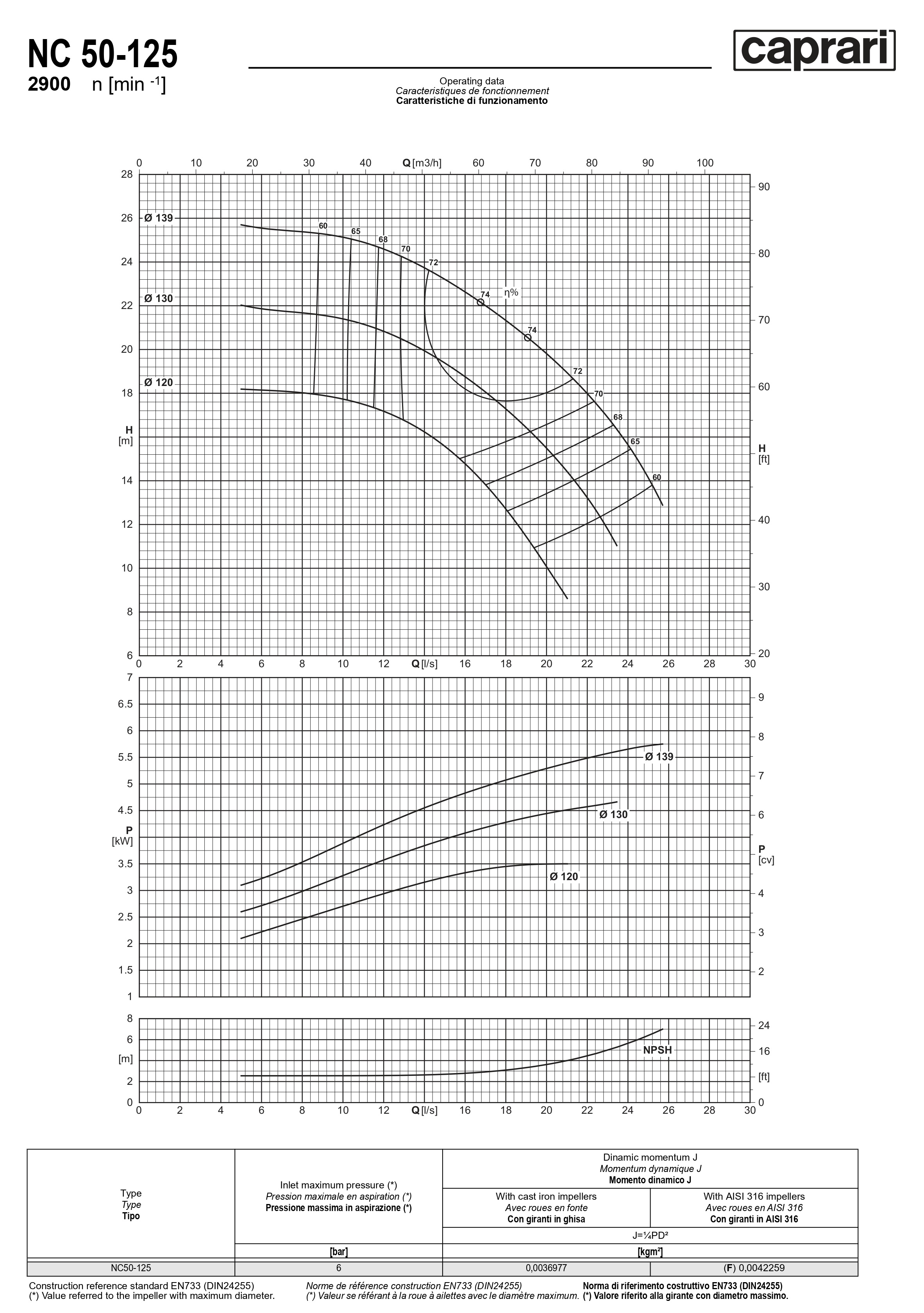 Одноступенчатые горизонтальные центробежные насосы Caprari NC 50-125 2900