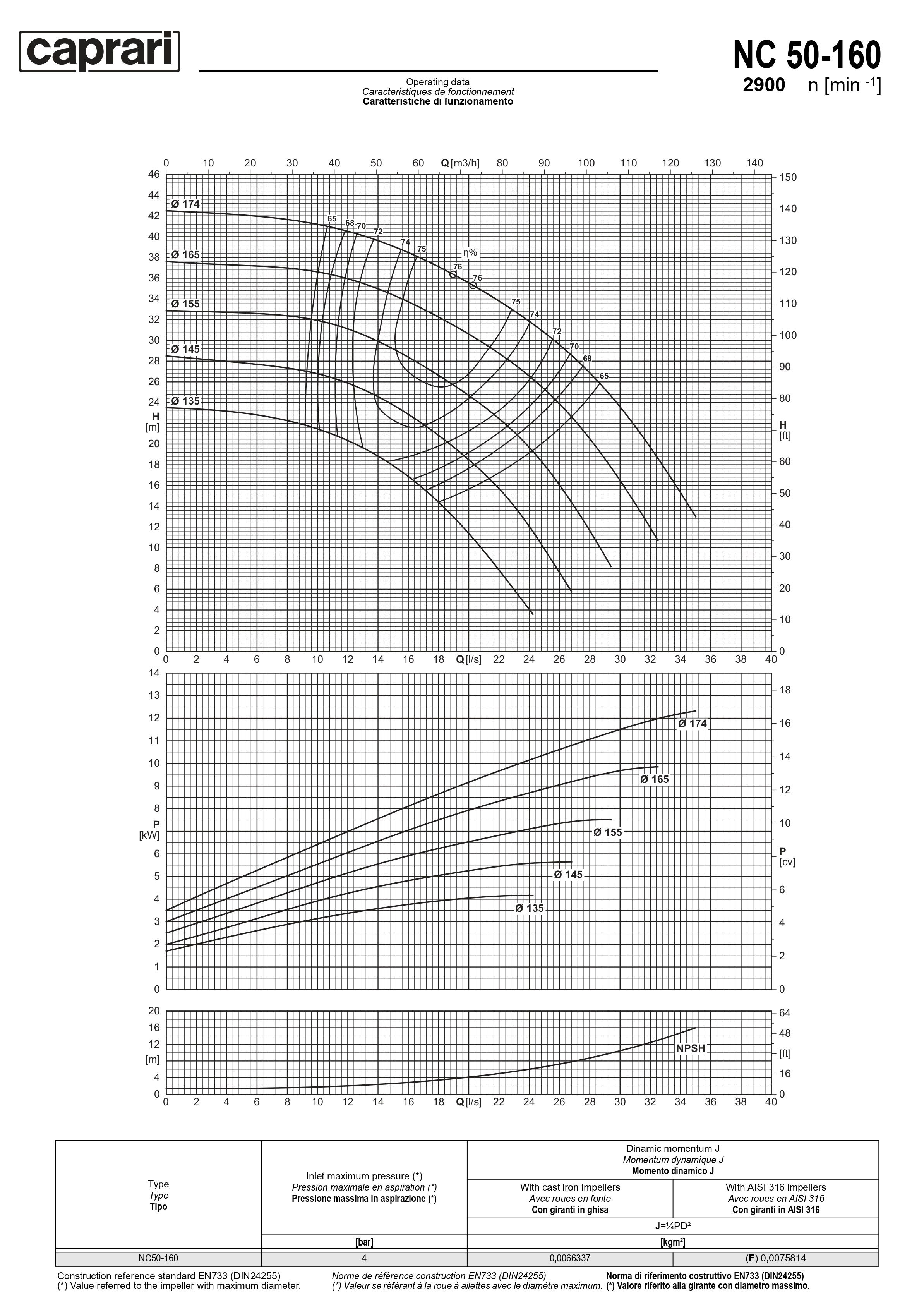 Одноступенчатые горизонтальные центробежные насосы Caprari NC 50-160 2900