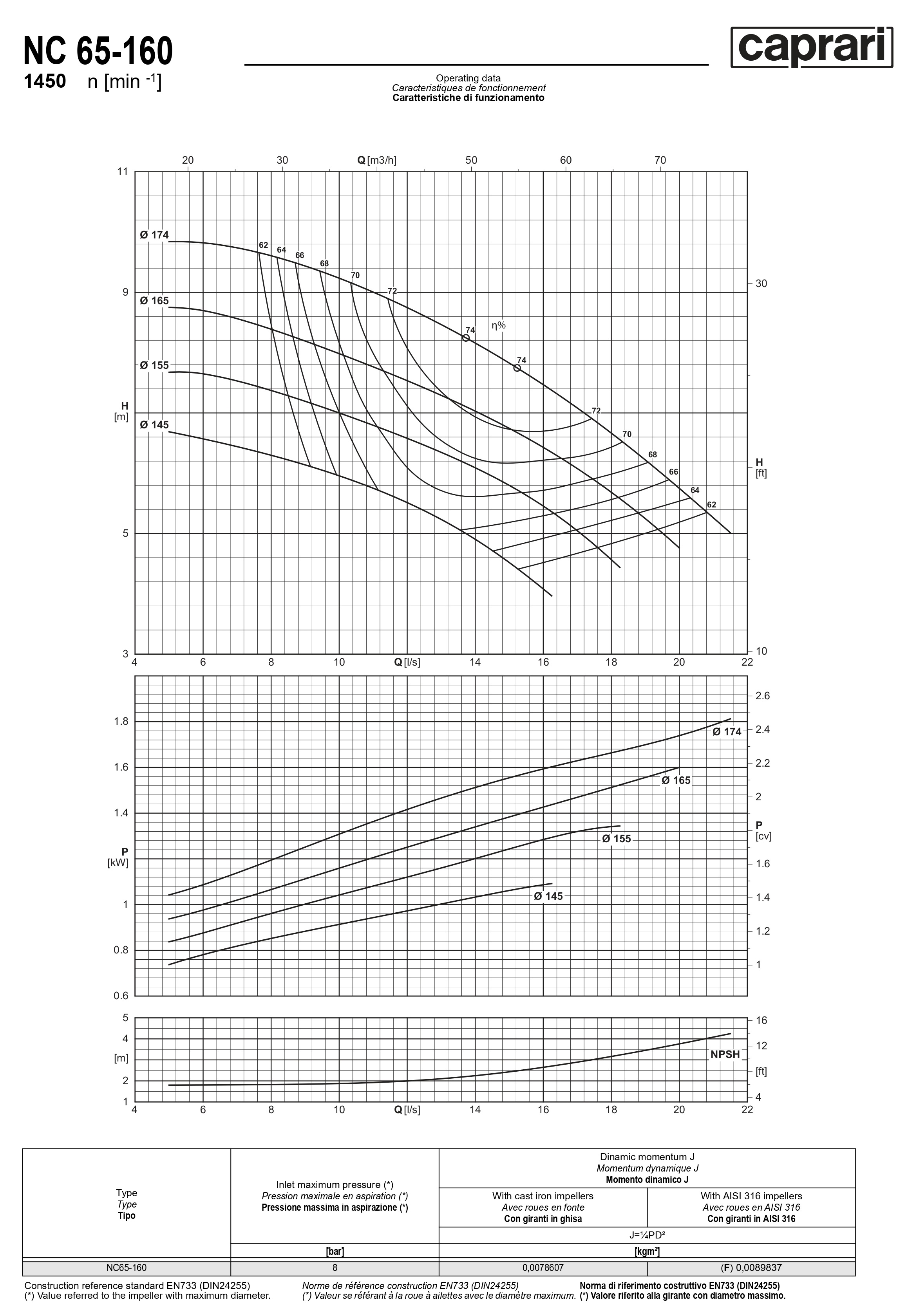 Одноступенчатые горизонтальные центробежные насосы Caprari NC 65-160 1450