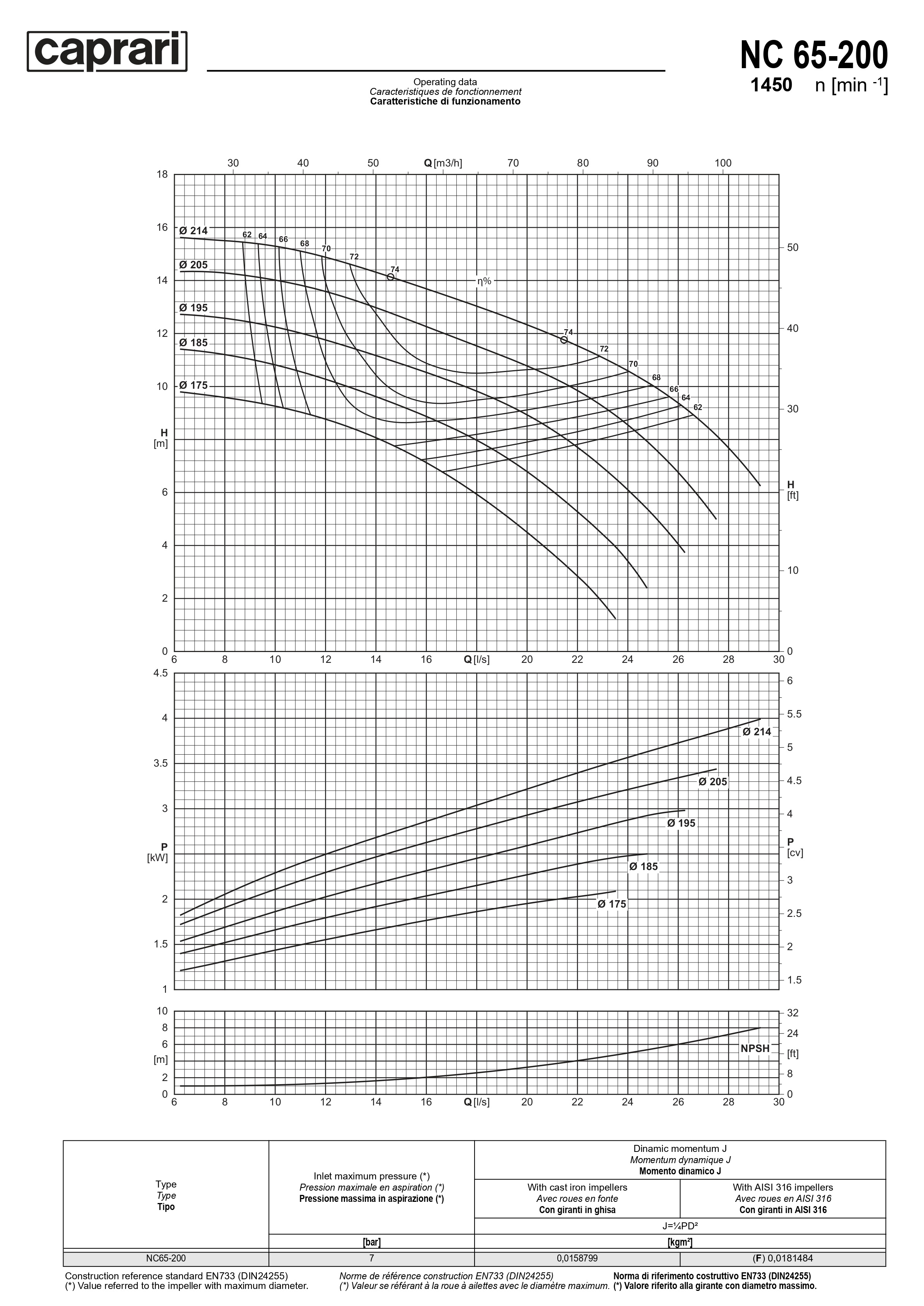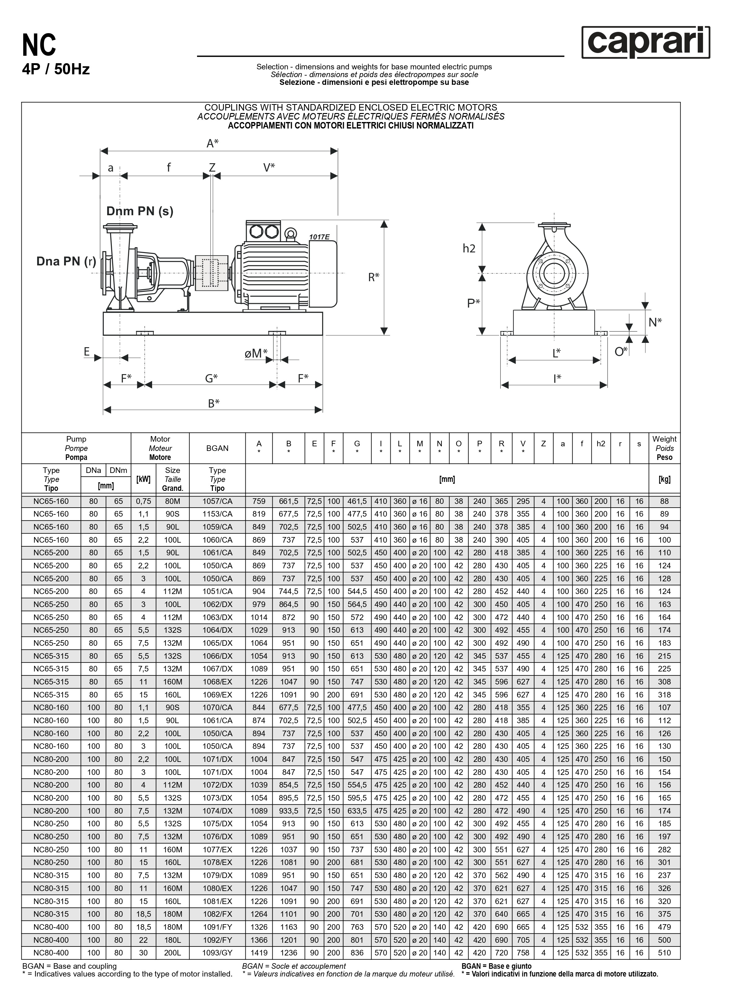 Одноступенчатые горизонтальные центробежные насосы Caprari NC 65-200 1450