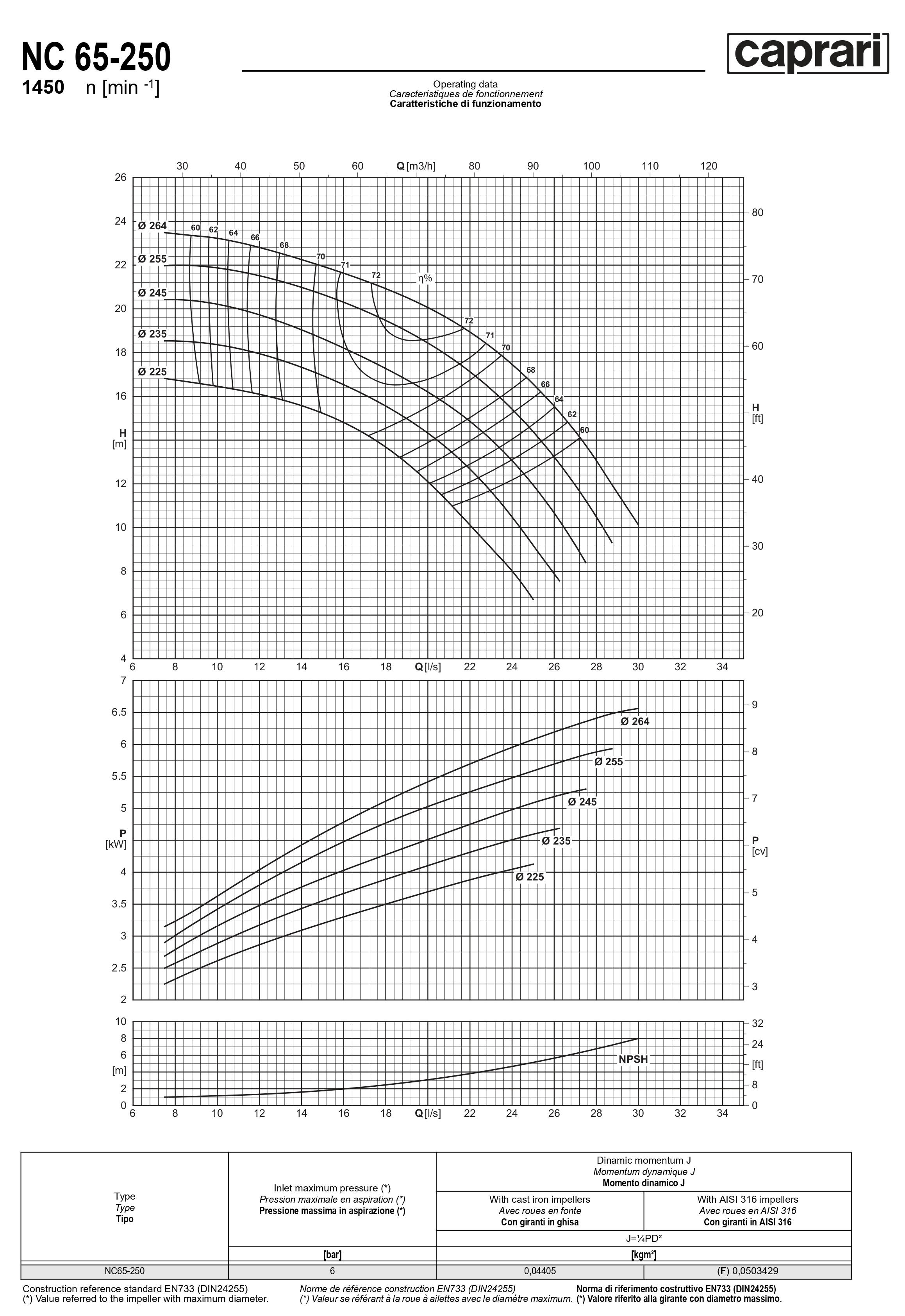 Одноступенчатые горизонтальные центробежные насосы Caprari NC 65-250 1450