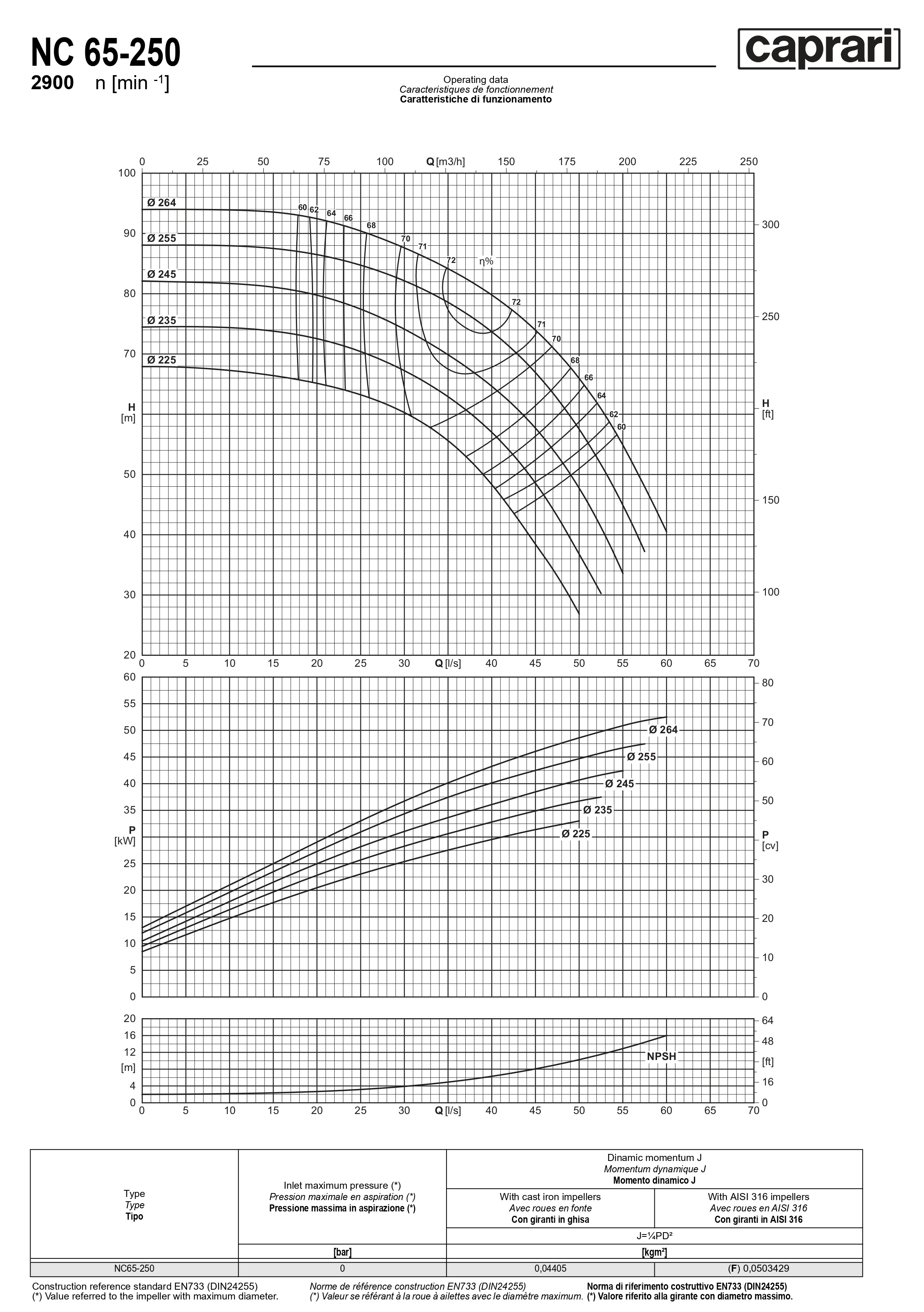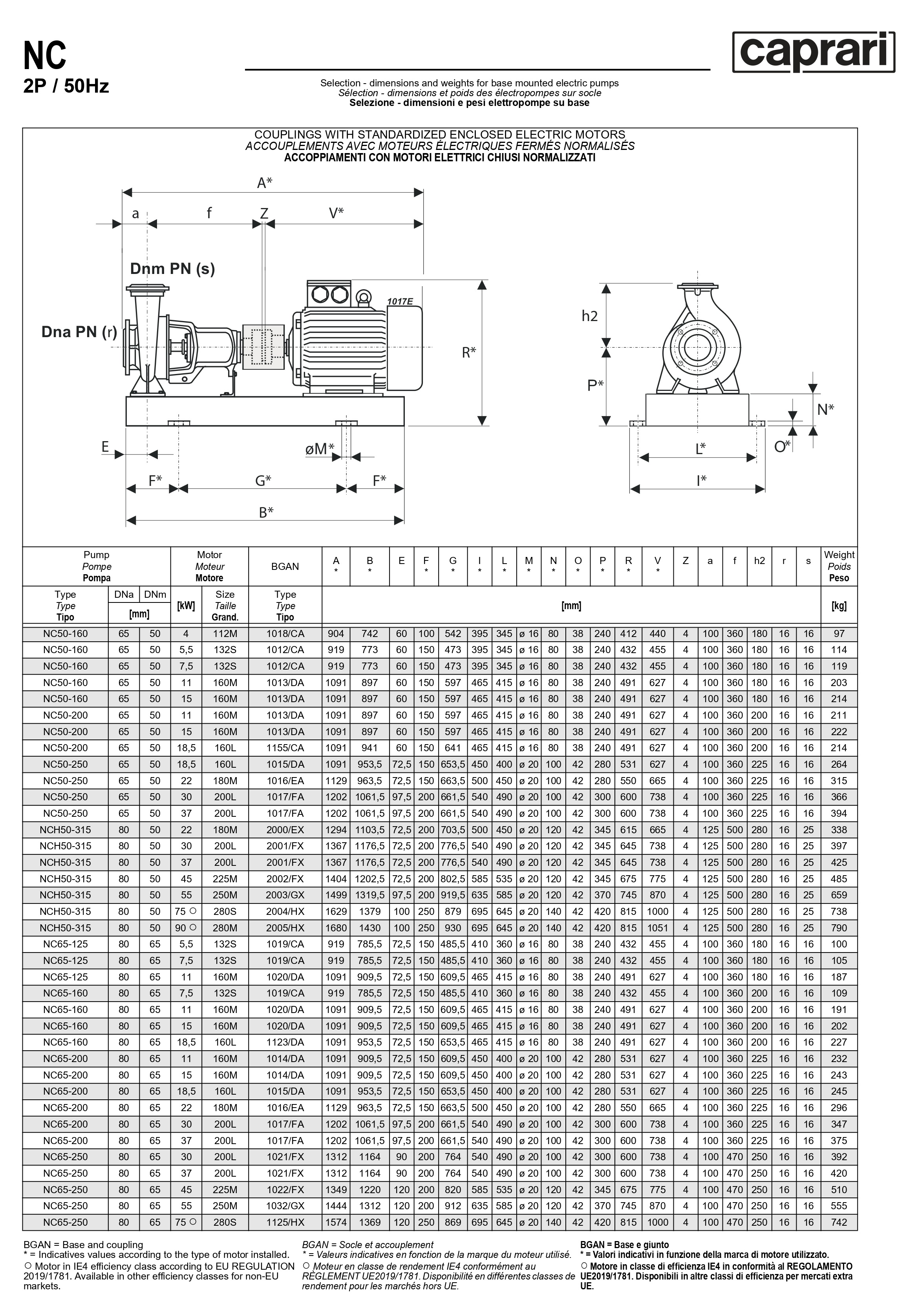 Одноступенчатые горизонтальные центробежные насосы Caprari NC 65-250 2900