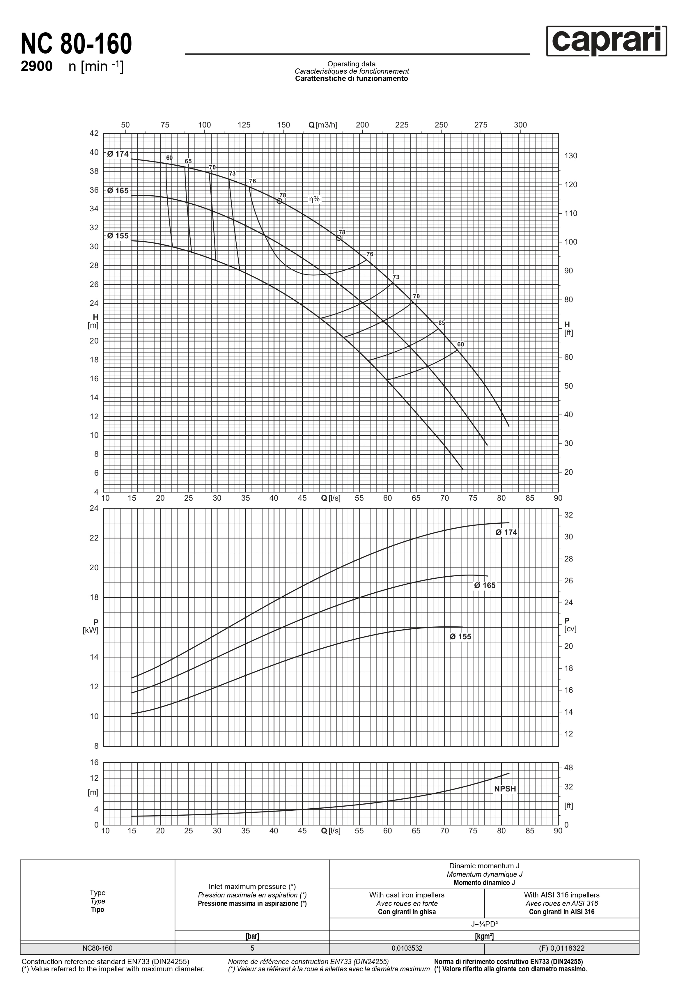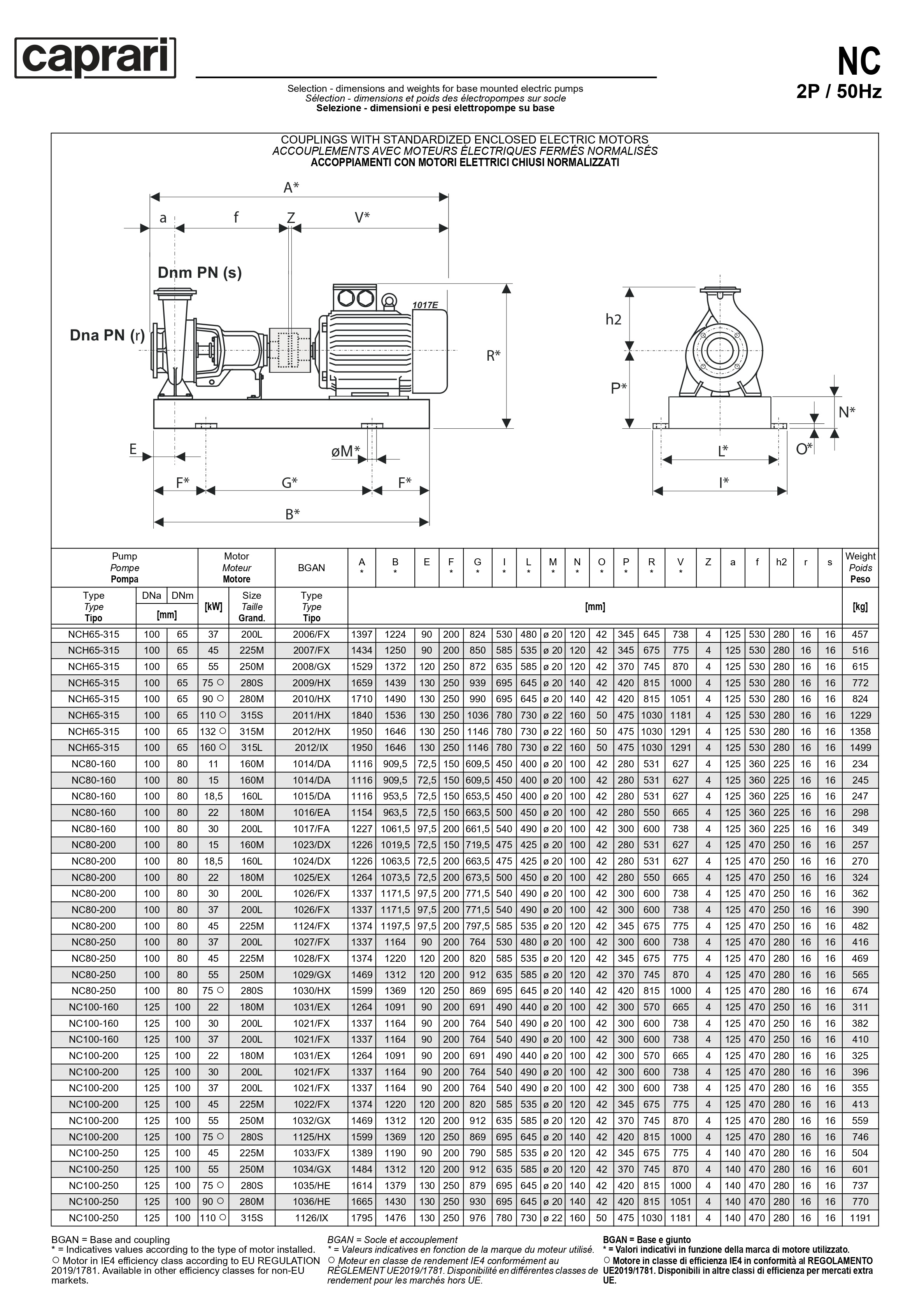 Одноступенчатые горизонтальные центробежные насосы Caprari NC 80-160 2900