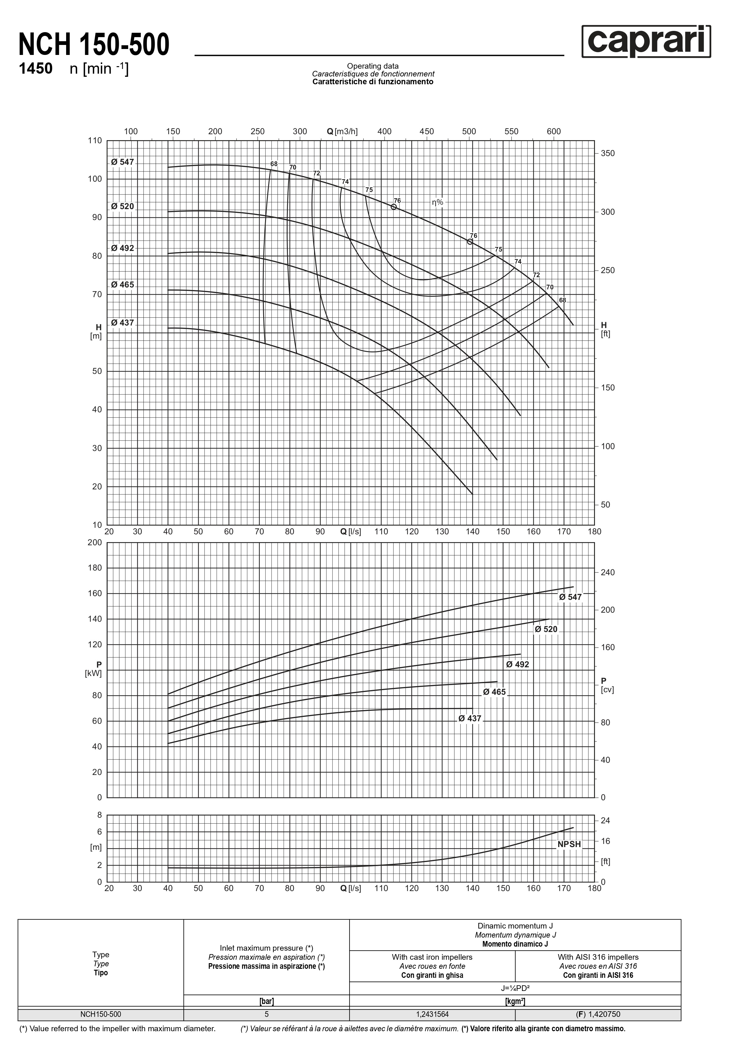 Одноступенчатые горизонтальные центробежные насосы Caprari NCH 150-500 1450
