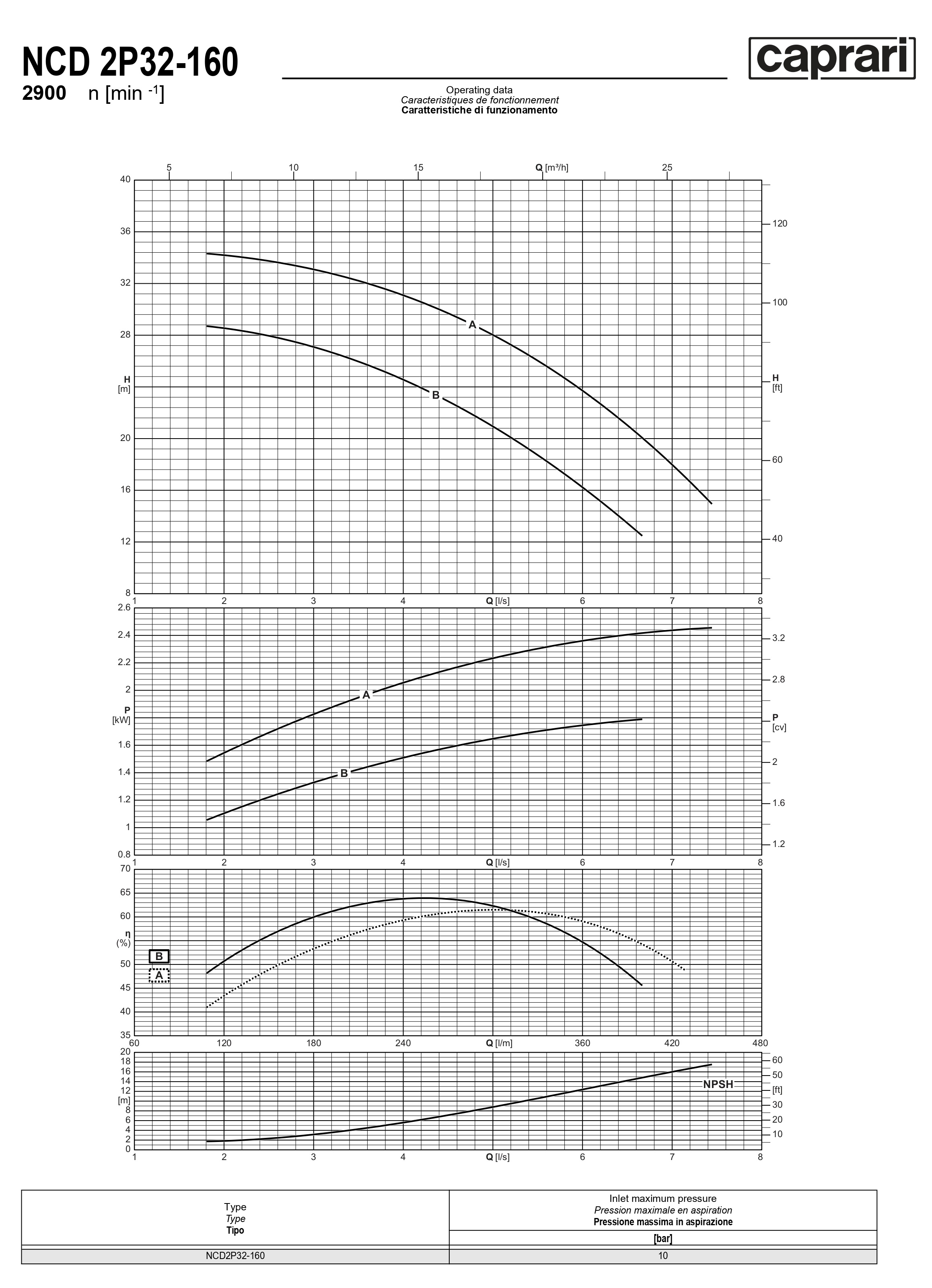 Одноступенчатые горизонтальные центробежные насосы Caprari NCD 2P32-160 2900