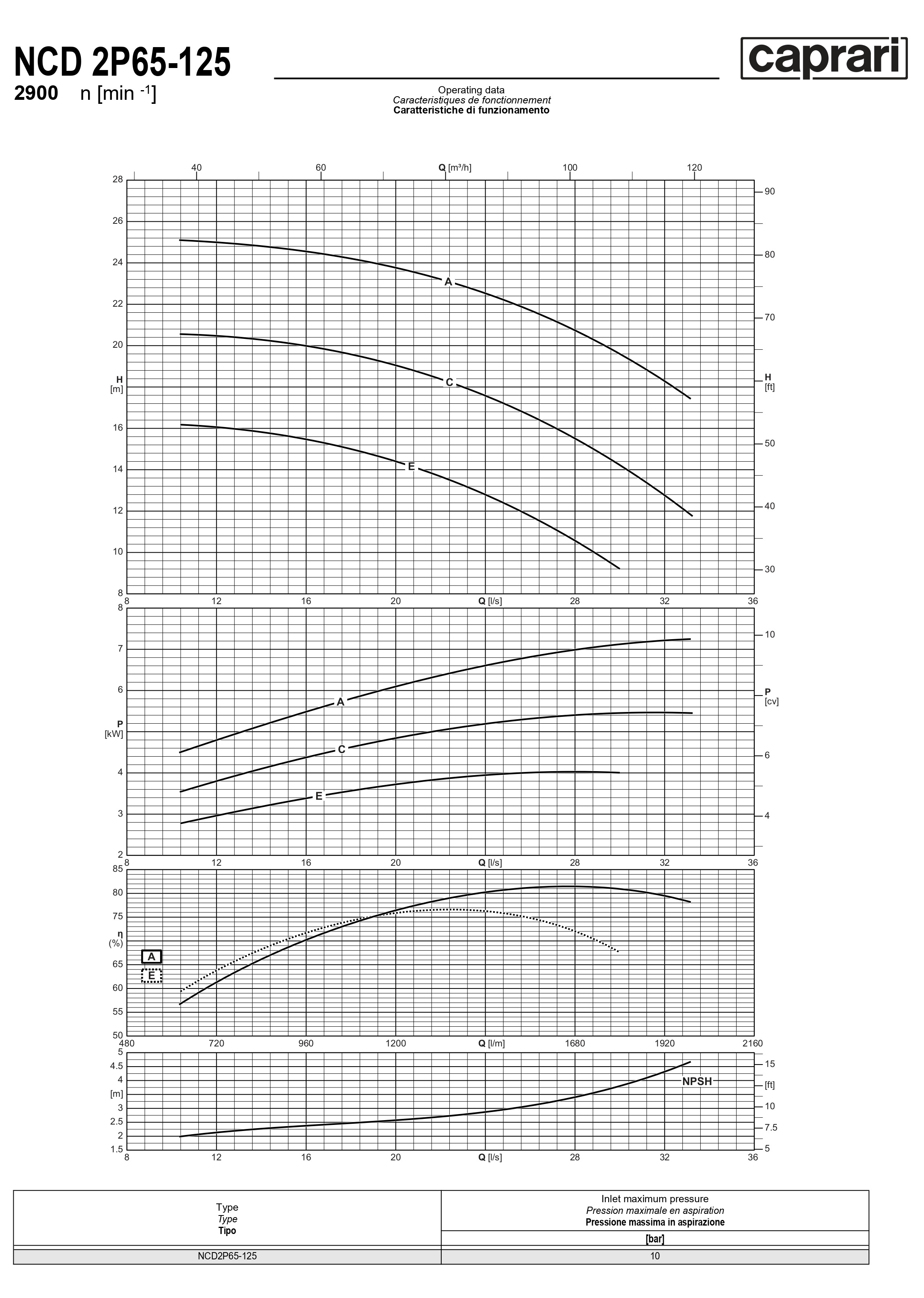 Одноступенчатые горизонтальные центробежные насосы Caprari NCD 2P65-125 2900