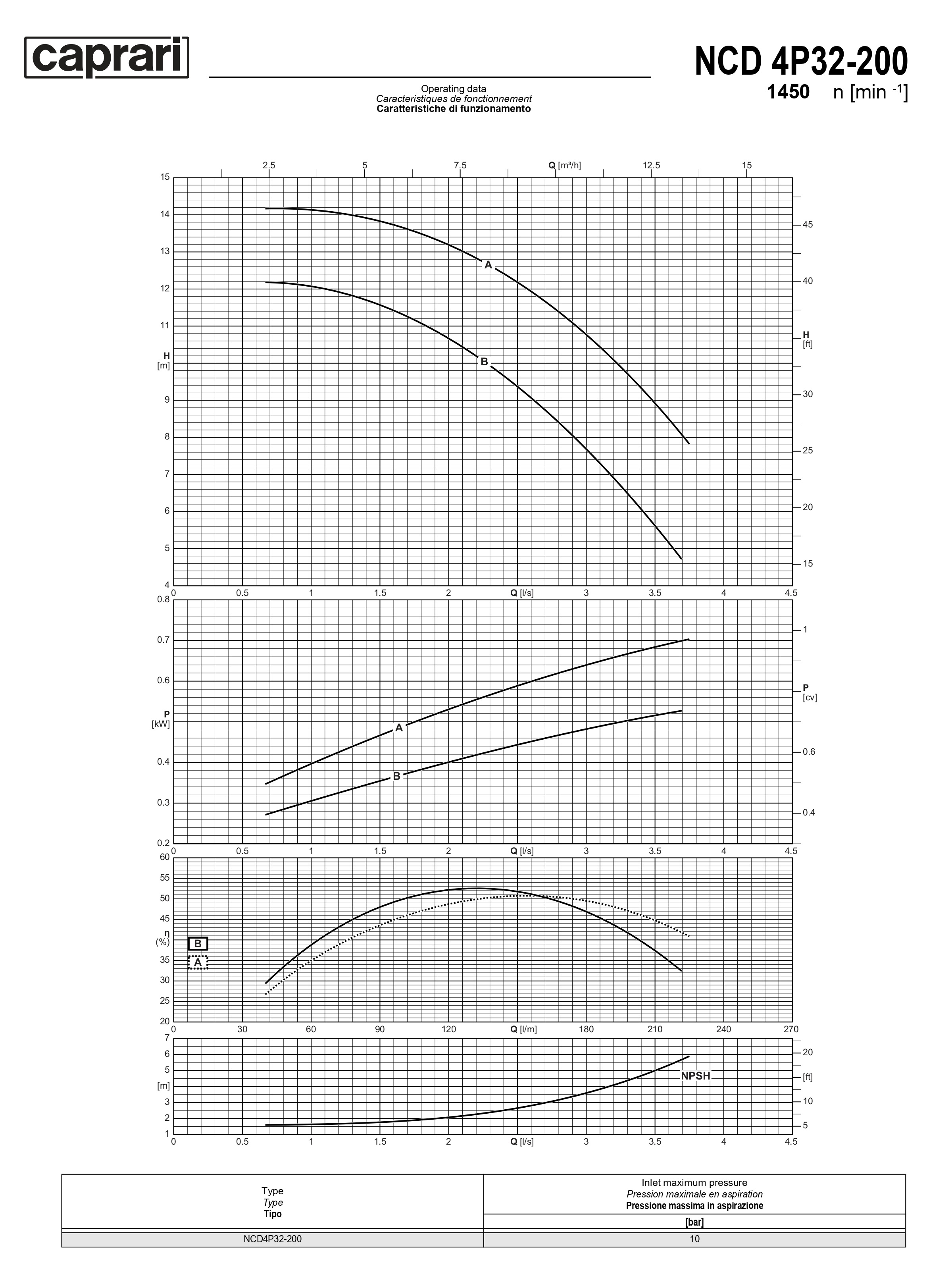 Одноступенчатые горизонтальные центробежные насосы Caprari NCD 4P32-200 1450