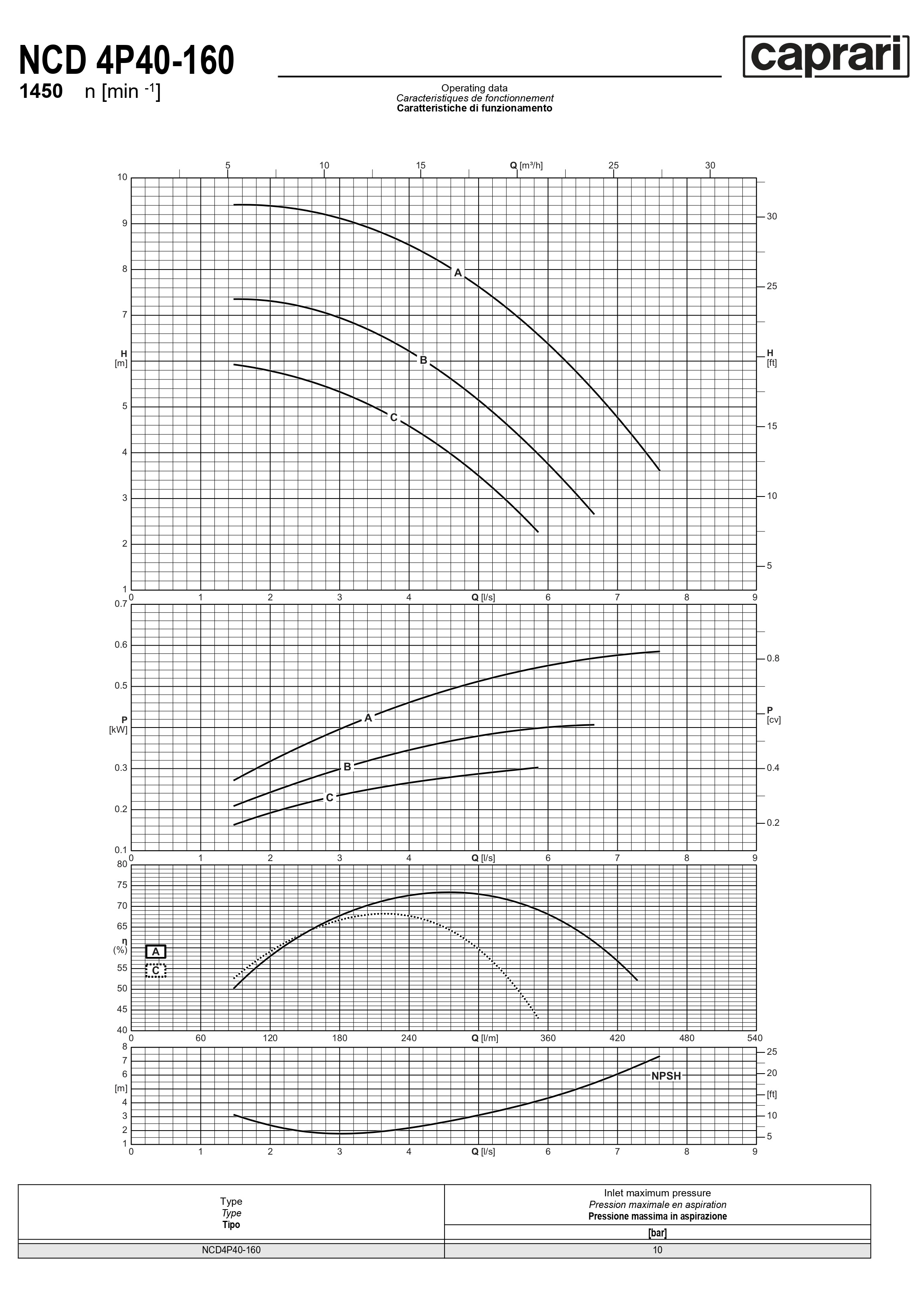 Одноступенчатые горизонтальные центробежные насосы Caprari NCD 4P40-160 1450
