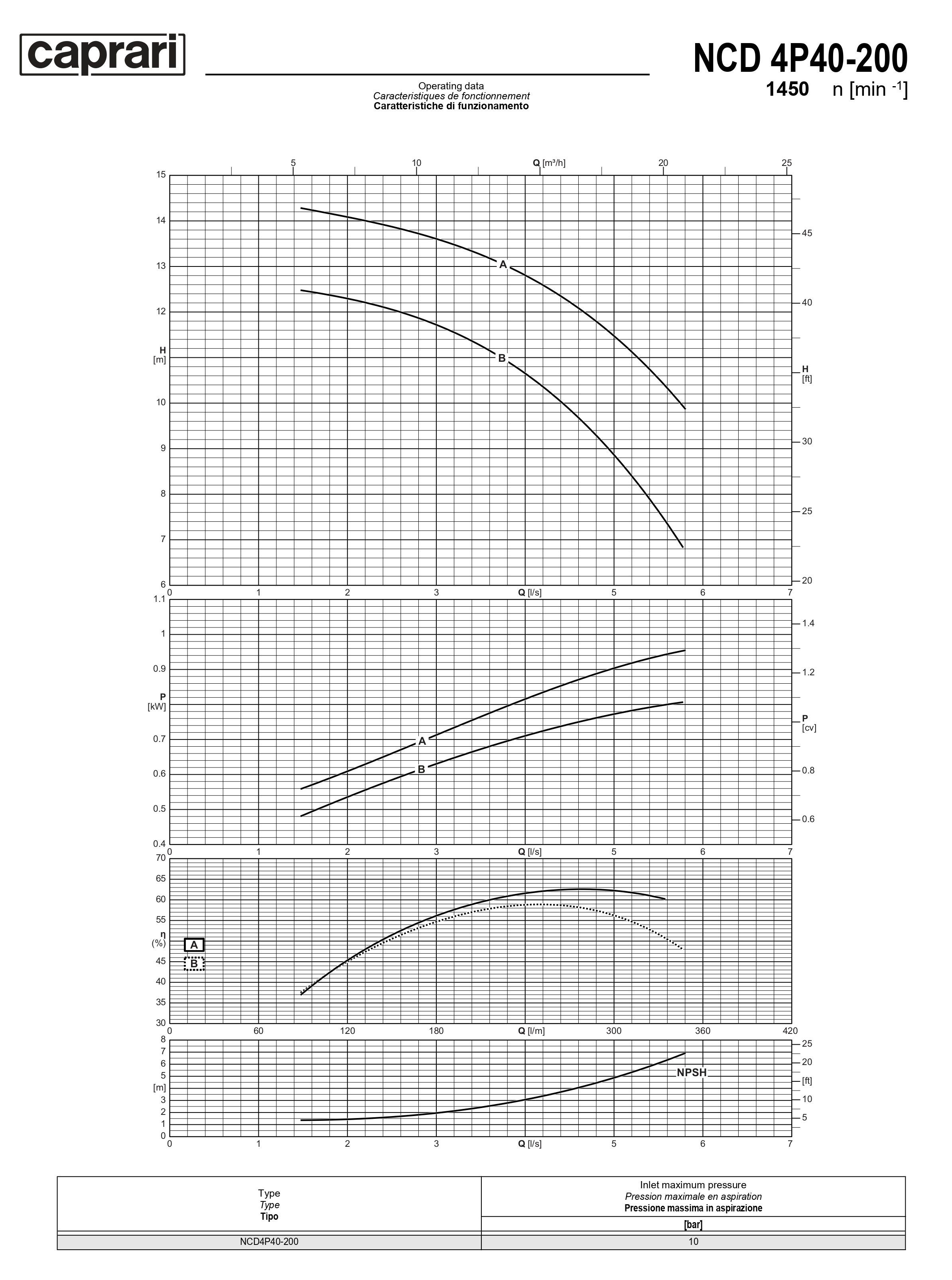 Одноступенчатые горизонтальные центробежные насосы Caprari NCD 4P40-200 1450