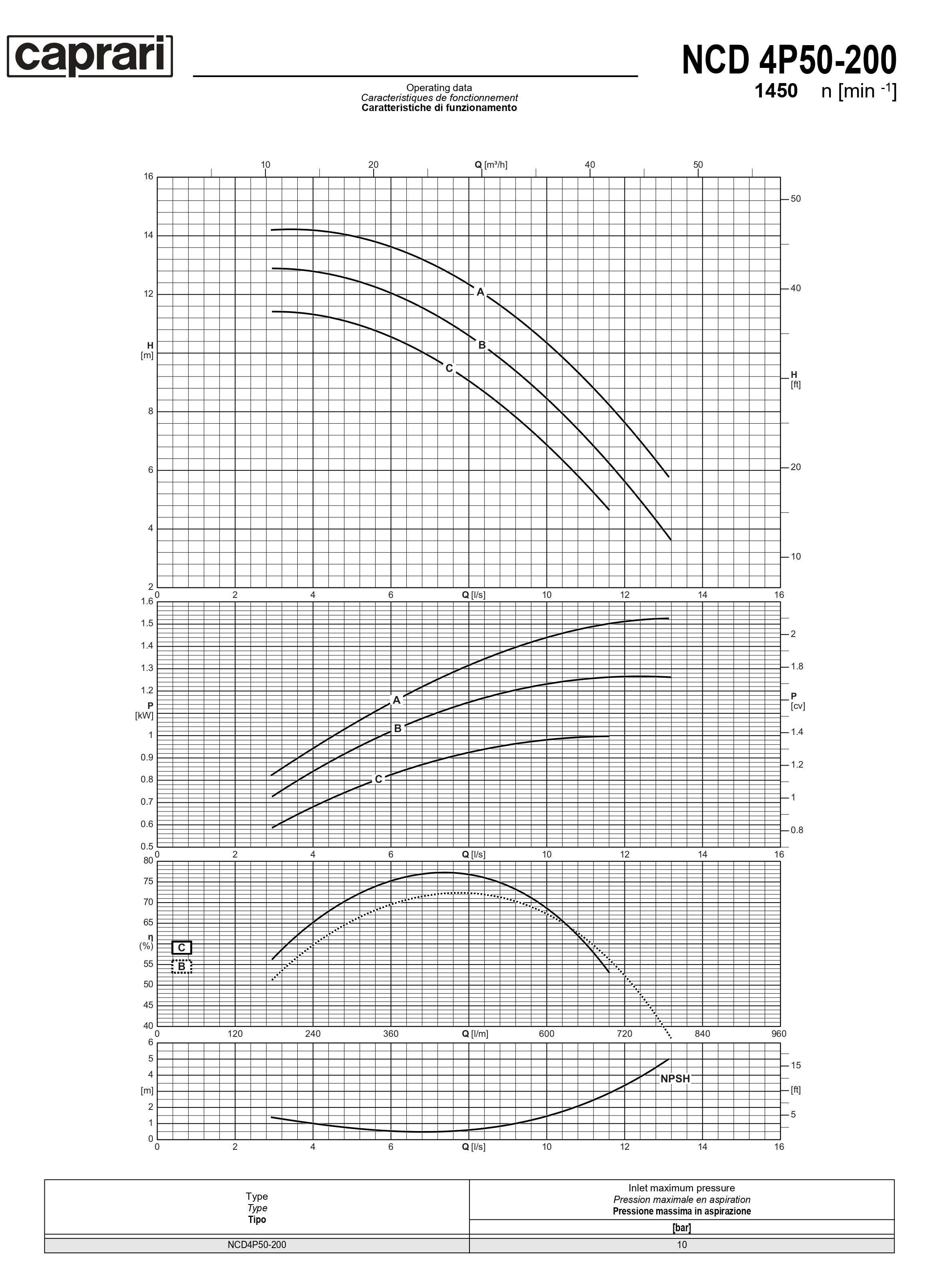 Одноступенчатые горизонтальные центробежные насосы Caprari NCD 4P50-200 1450