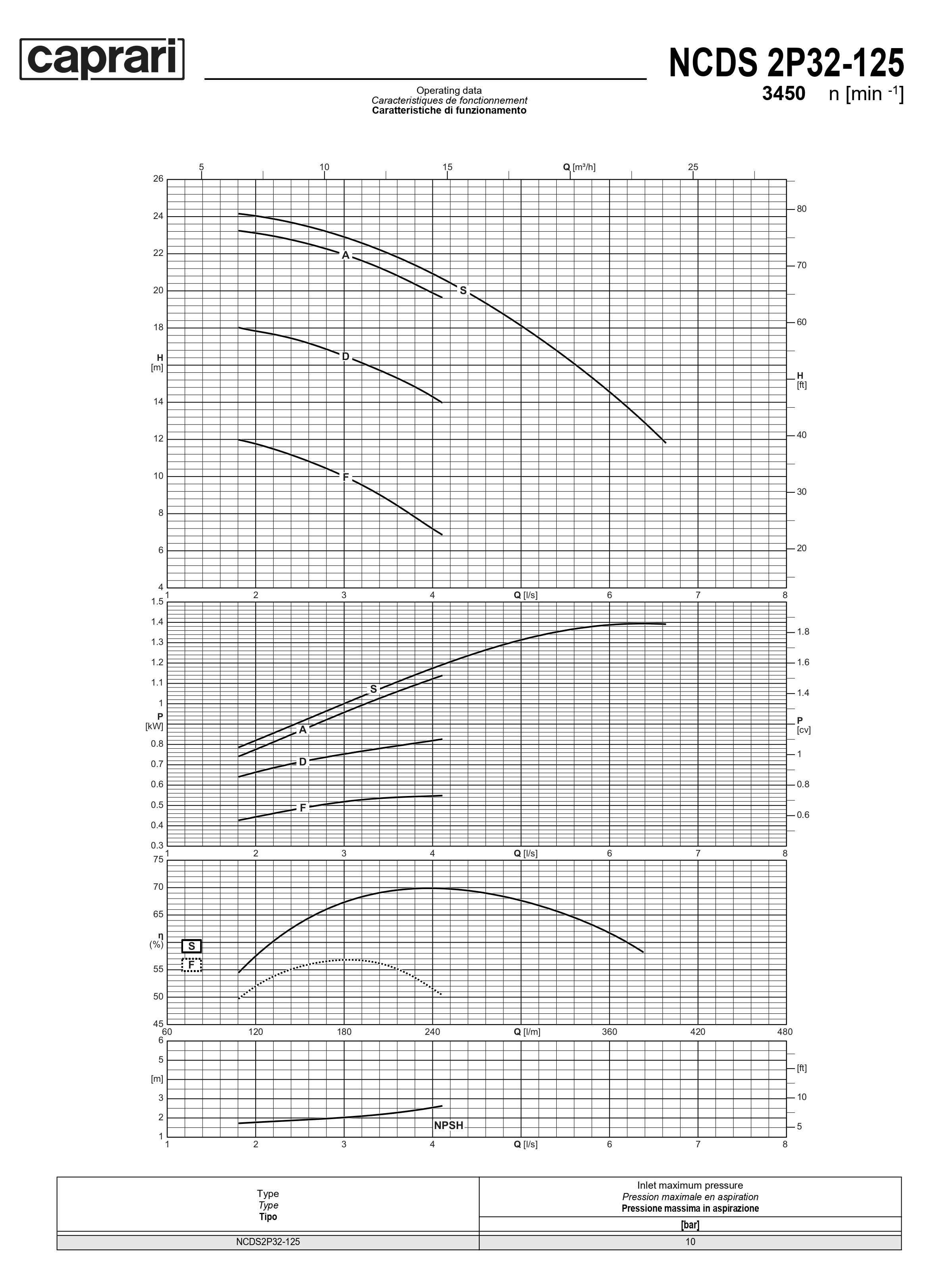 Одноступенчатые горизонтальные центробежные насосы Caprari NCDS 2P32-125 3450