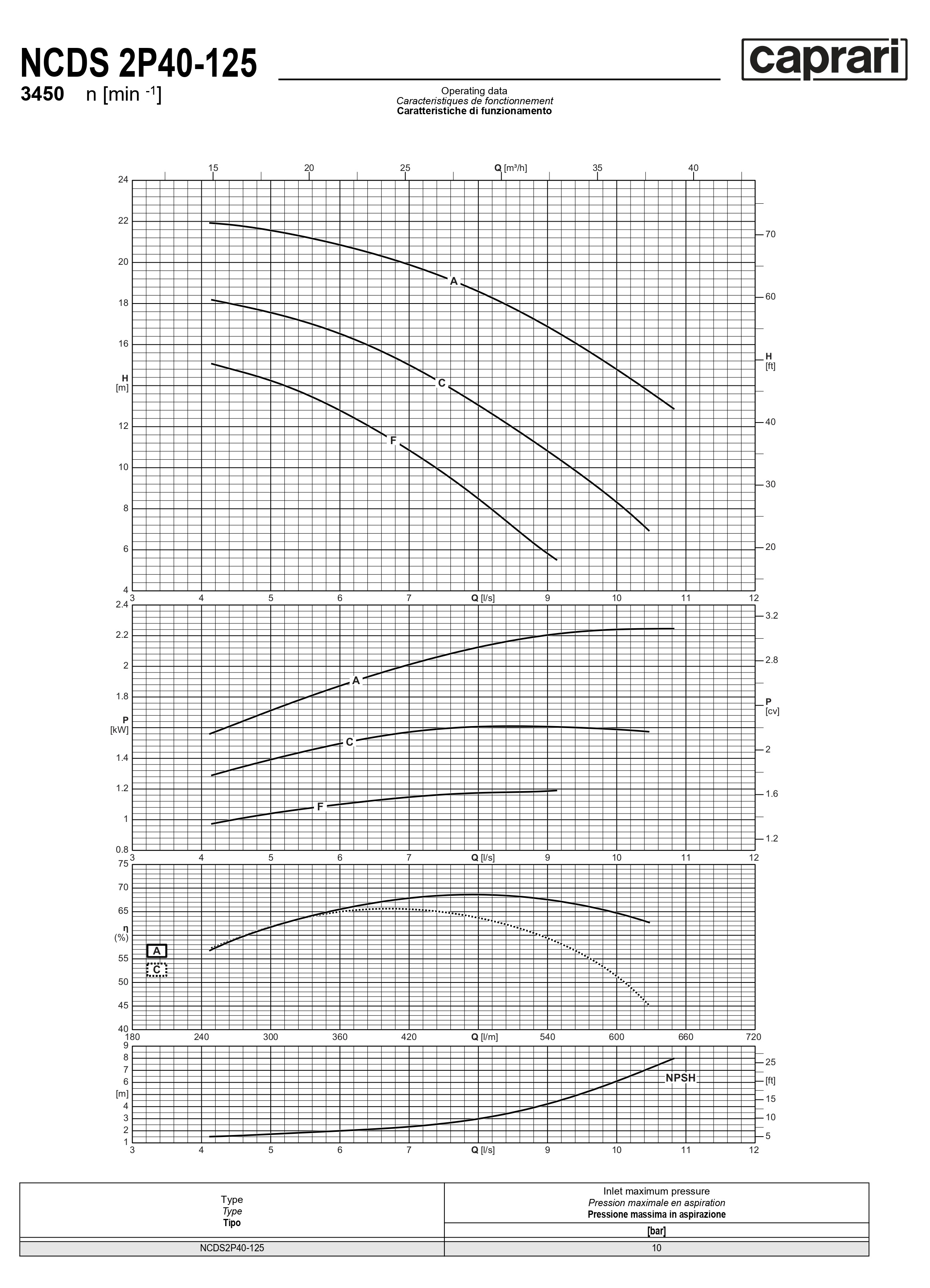 Одноступенчатые горизонтальные центробежные насосы Caprari NCDS 2P40-125 3450
