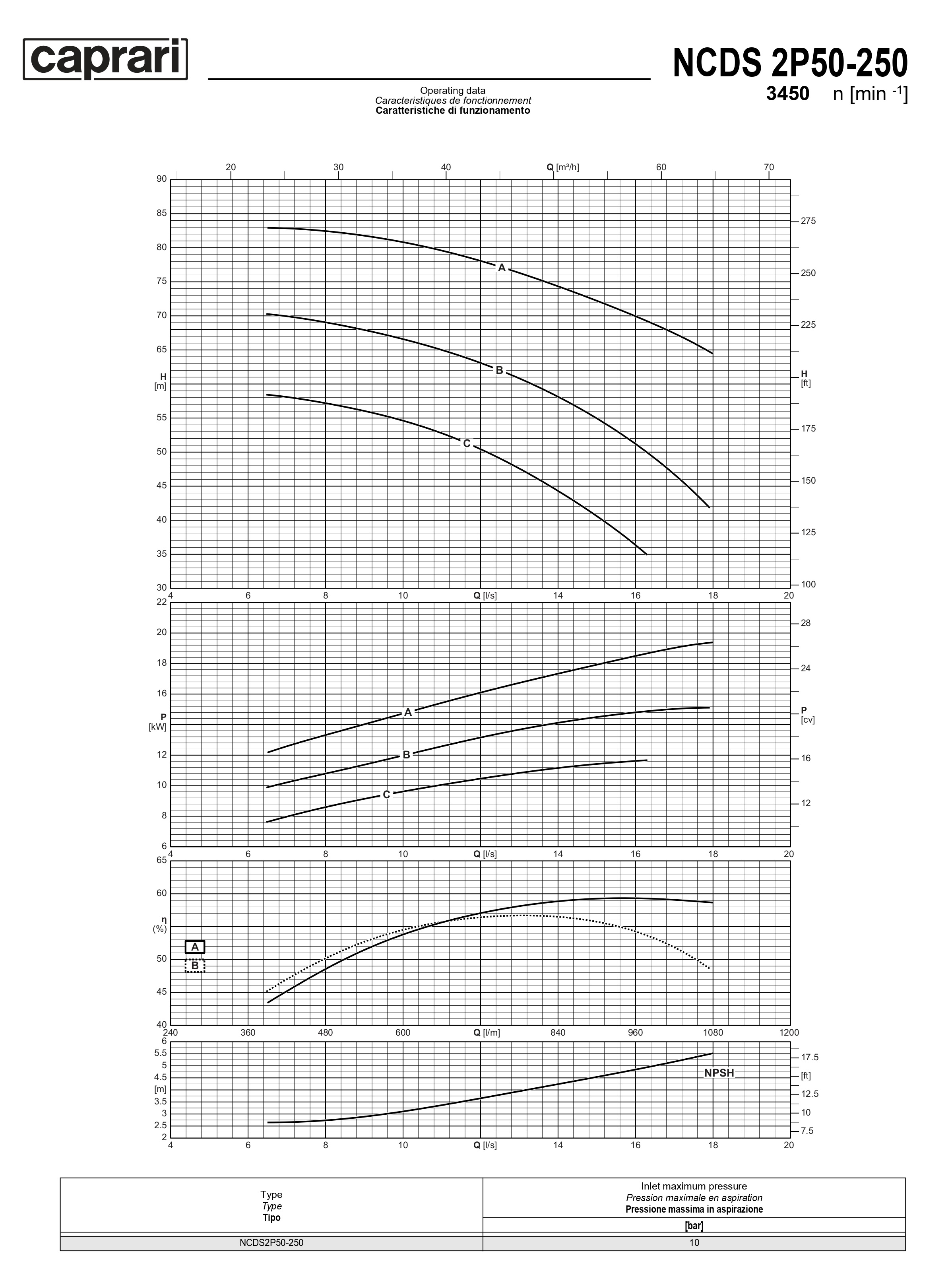 Одноступенчатые горизонтальные центробежные насосы Caprari NCDS 2P50-250 3450
