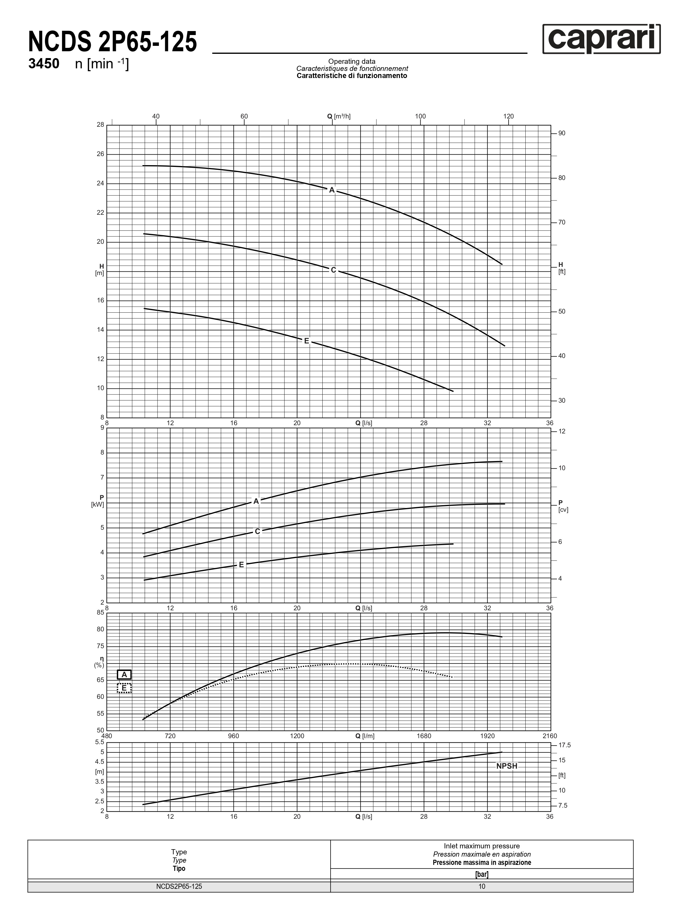 Одноступенчатые горизонтальные центробежные насосы Caprari NCDS 2P65-125 3450