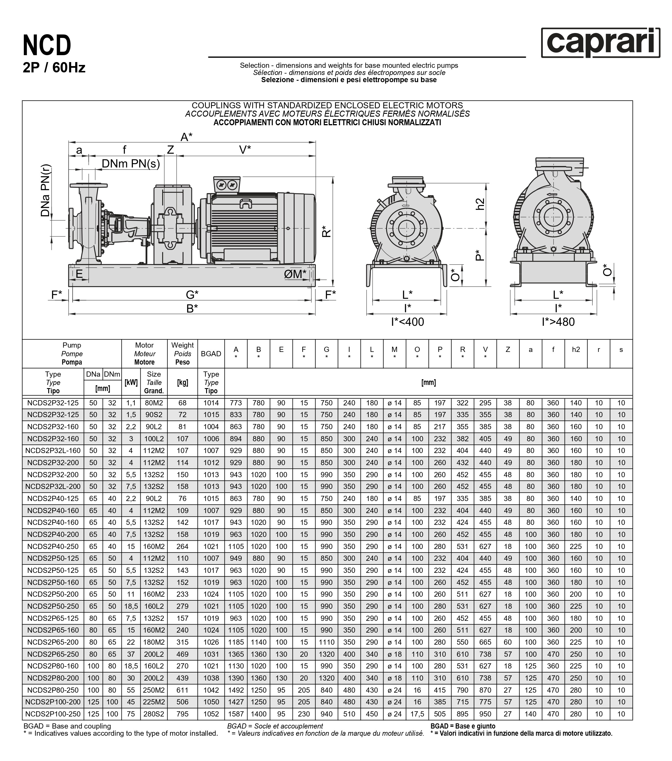 Одноступенчатые горизонтальные центробежные насосы Caprari NCDS 2P65-160 3450