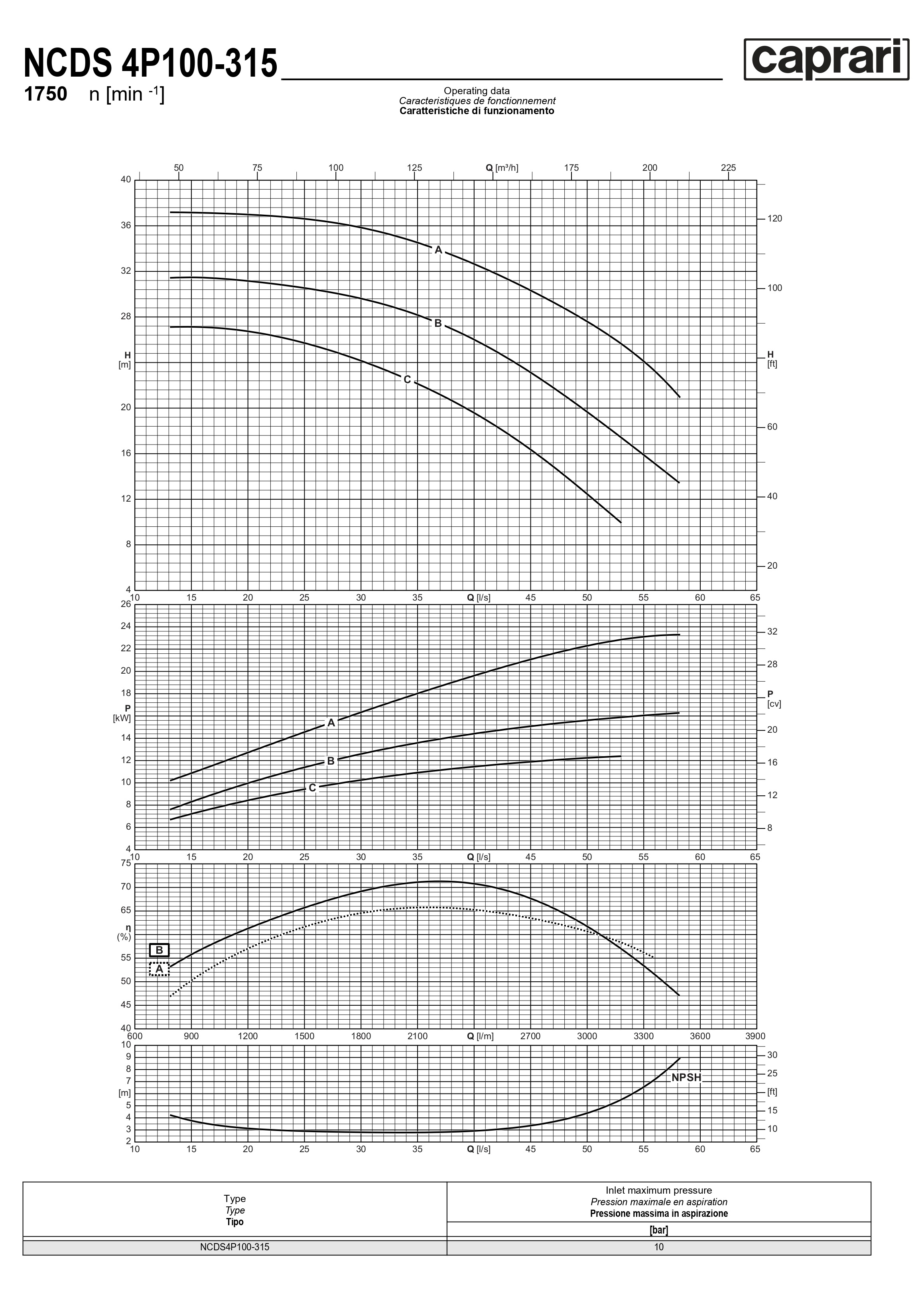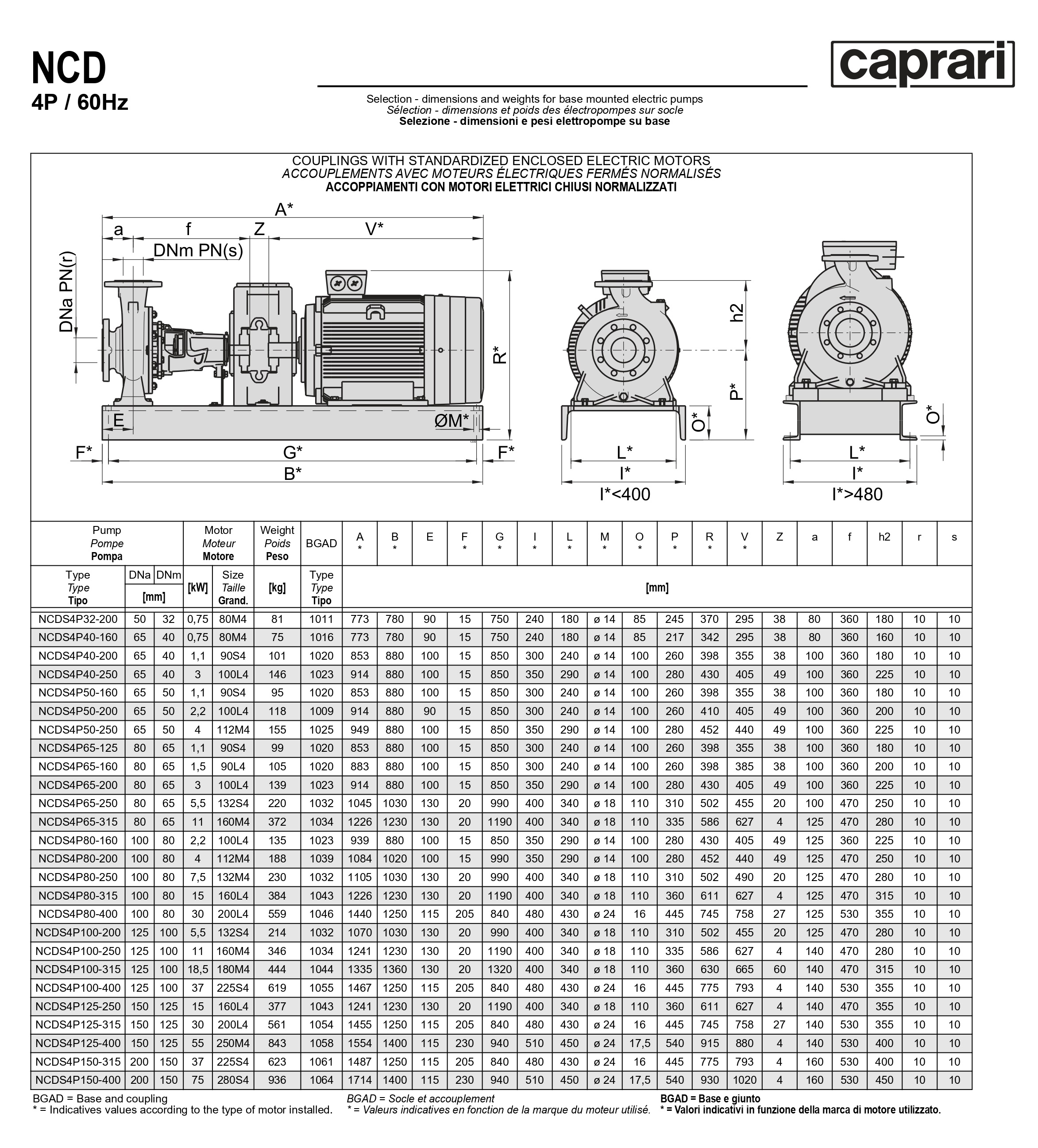 Одноступенчатые горизонтальные центробежные насосы Caprari NCDS 4P100-315 1750