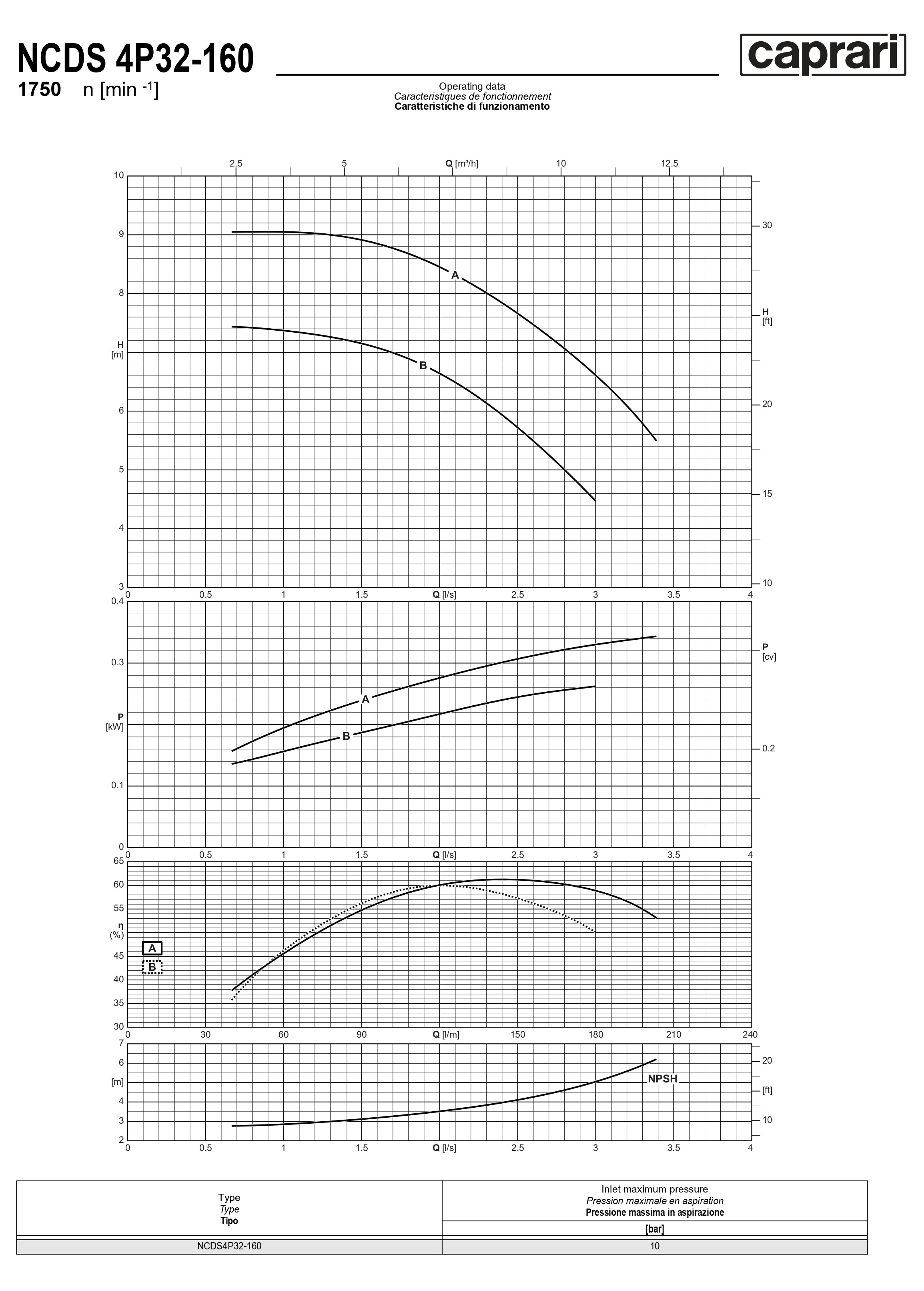 Одноступенчатые горизонтальные центробежные насосы Caprari NCDS 4P32-160 1750
