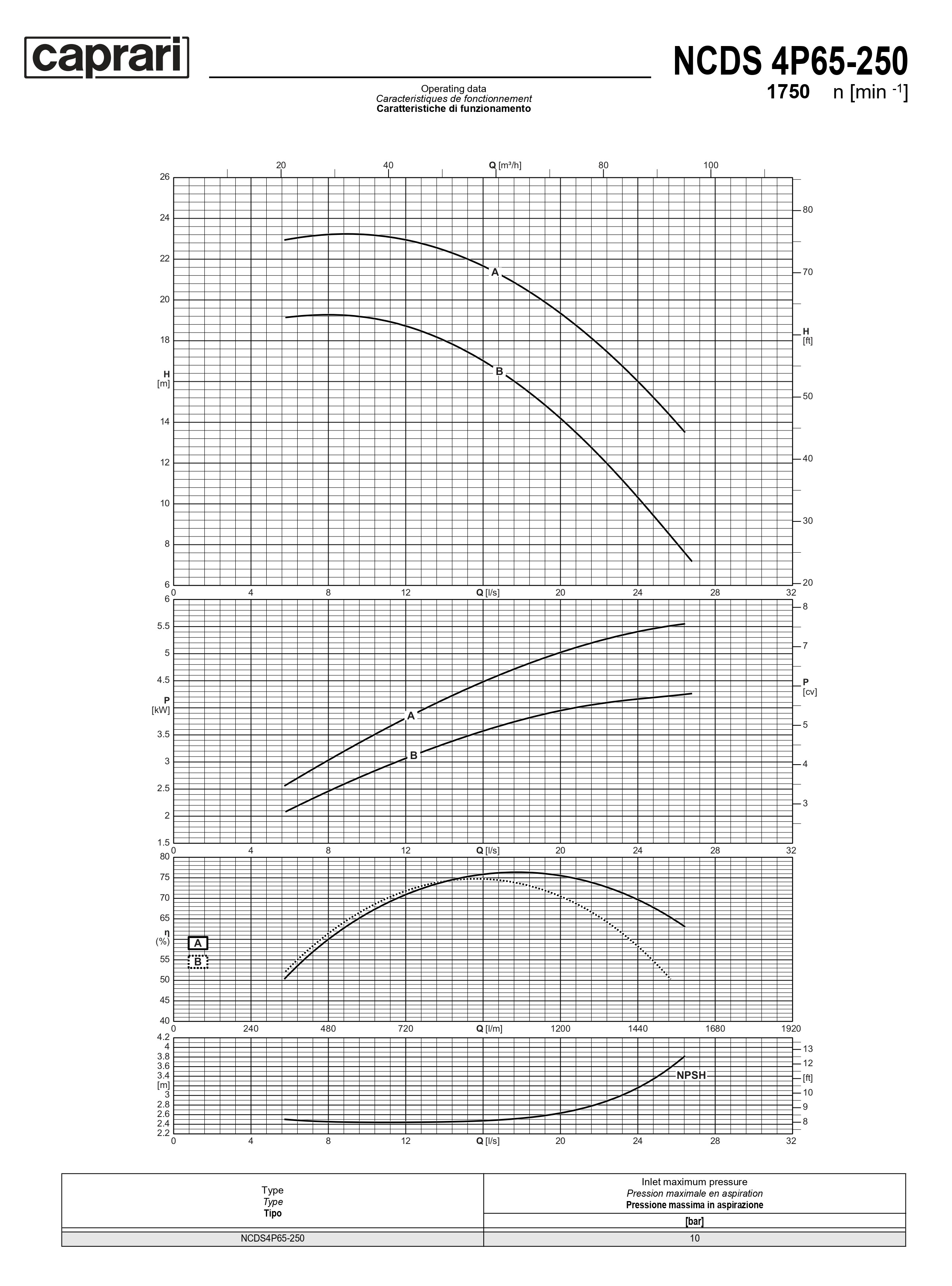 Одноступенчатые горизонтальные центробежные насосы Caprari NCDS 4P65-250 1750
