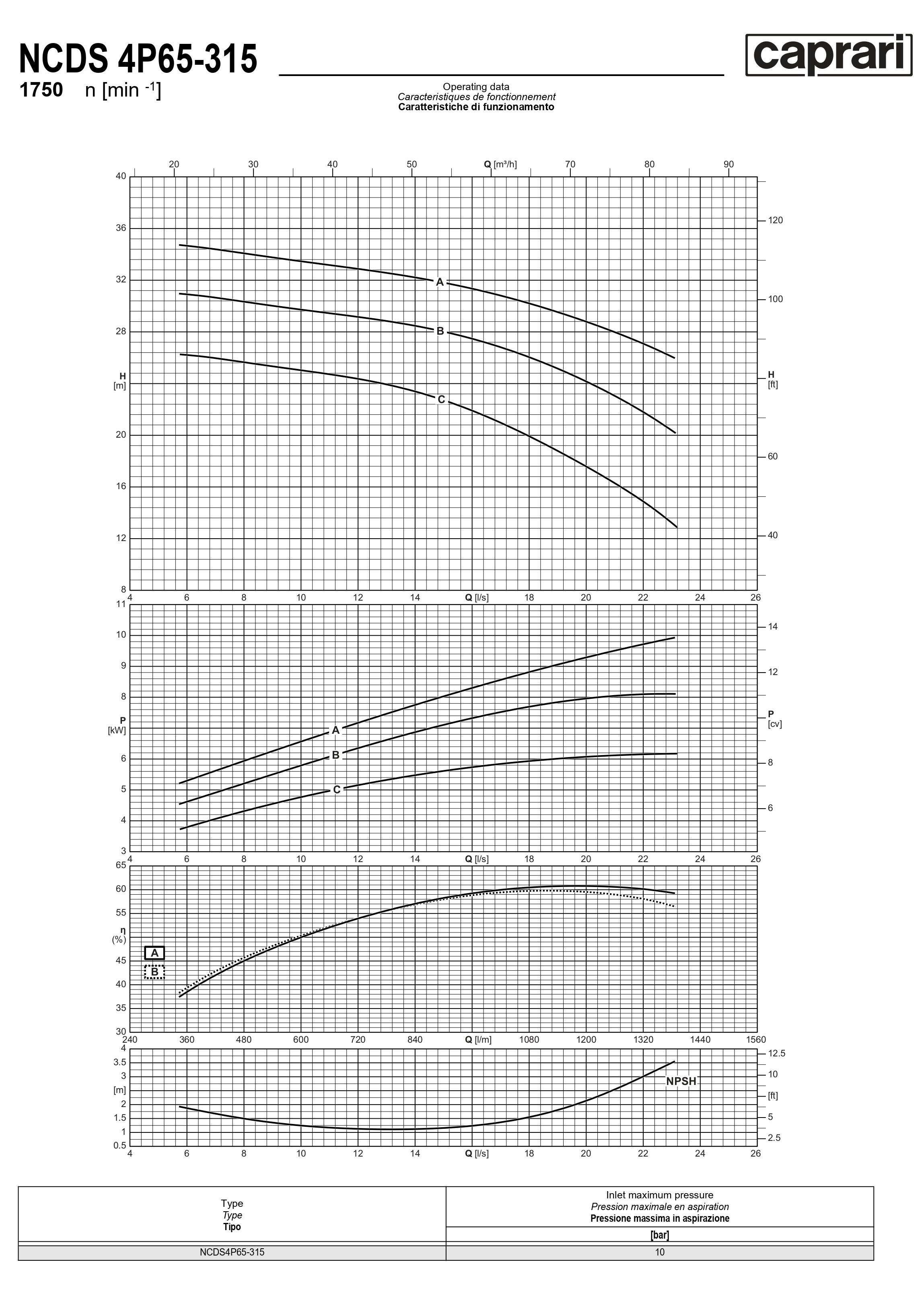 Одноступенчатые горизонтальные центробежные насосы Caprari NCDS 4P65-315 1750