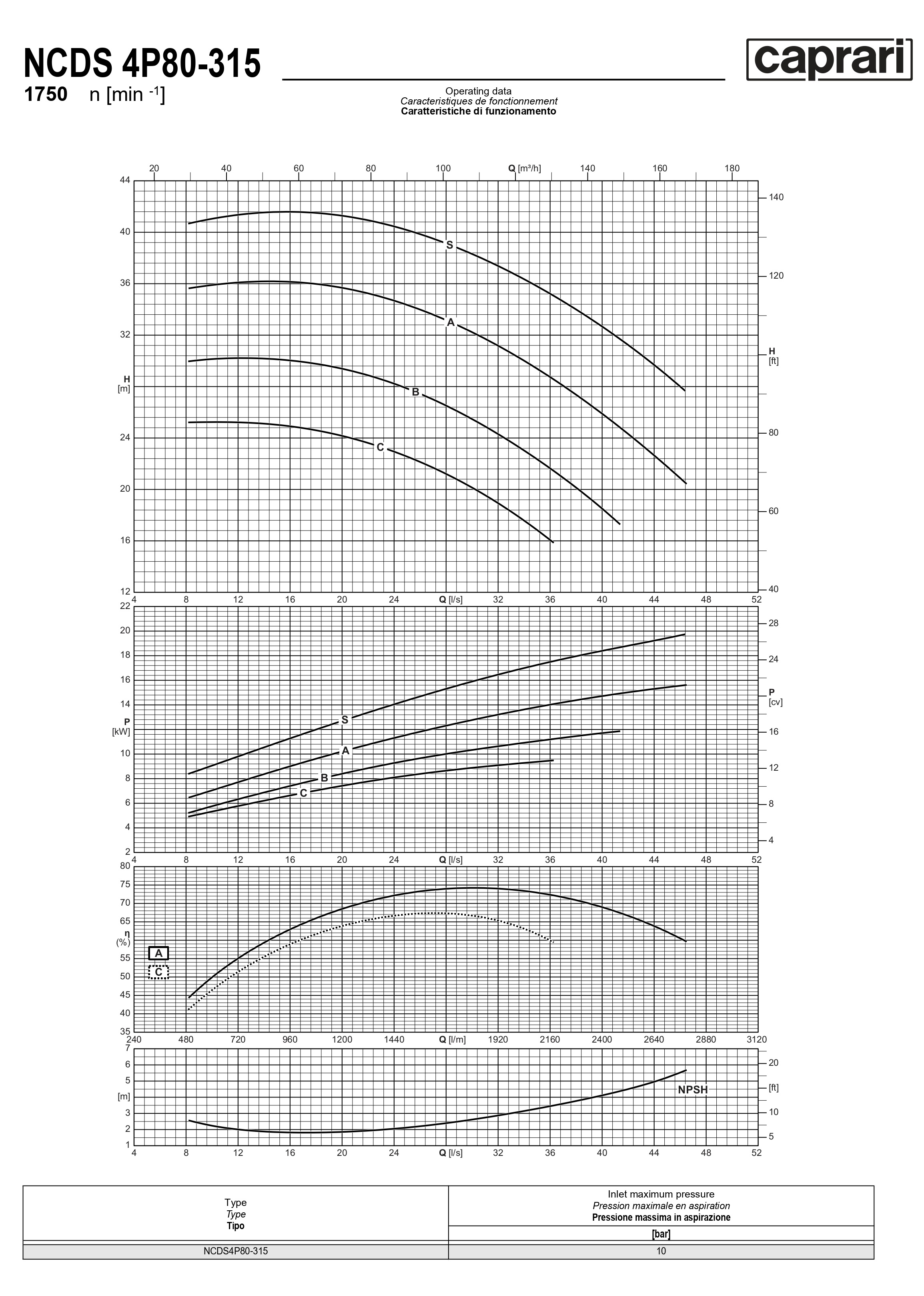Одноступенчатые горизонтальные центробежные насосы Caprari NCDS 4P80-315 1750