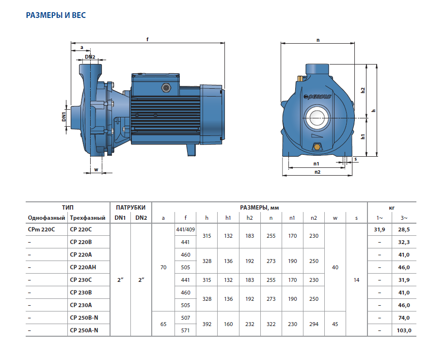 - Максимальное давление в корпусе насоса: 6 бар в CP 100-130-132-150-158; 10 бар в CP 170-190-200