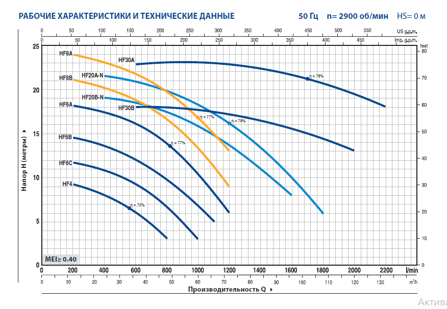 Центробежный насос Pedrollo HF 8A (Италия) с резьбовыми патрубками 100 мм рекомендуется для решения задач, где необходим большой поток при сниженном напоре. Насос позволяет перекачивать чистую или слегка загрязненную воду и другие совместимые с чугуном жидкости. Применяется в системах водоснабжения, орошения, для забора воды из водоемов и емкостей.Производительность насоса от 12 до 72 м3/час (200 - 1200 л/мин), напор от 13 до 24 м.в.ст. Рабочая точка производительности 60 м3/ч (1000 л/мин) при давлении 16,8 м.в.ст. КПД насоса в указанной точке около 77 %. Патрубки вход/выход 4 ".