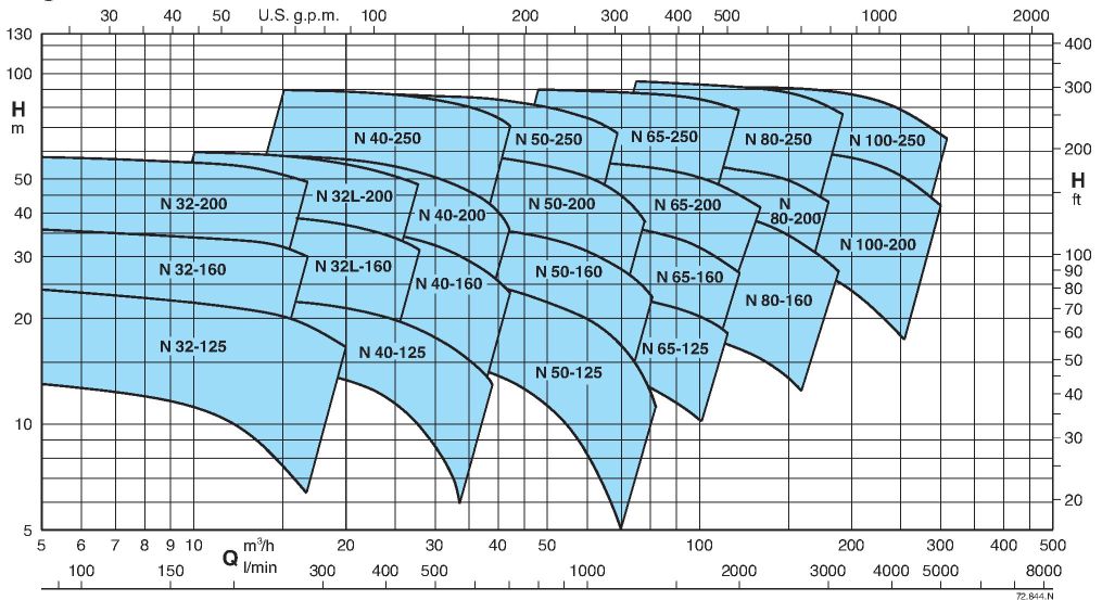 - Максимально допустимое конечное давление в корпусе насоса: 10 бар(16 бар для N,N4 65/125, N,N4 65/160, N,N4 80/160)