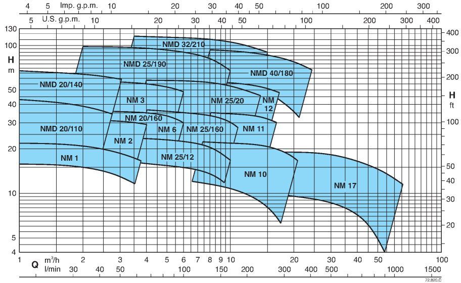 - Максимально допустимое конечное давление в корпусе насоса: 16 бар (для NMD 25/190; NMD 32/210; NMD 40/180)