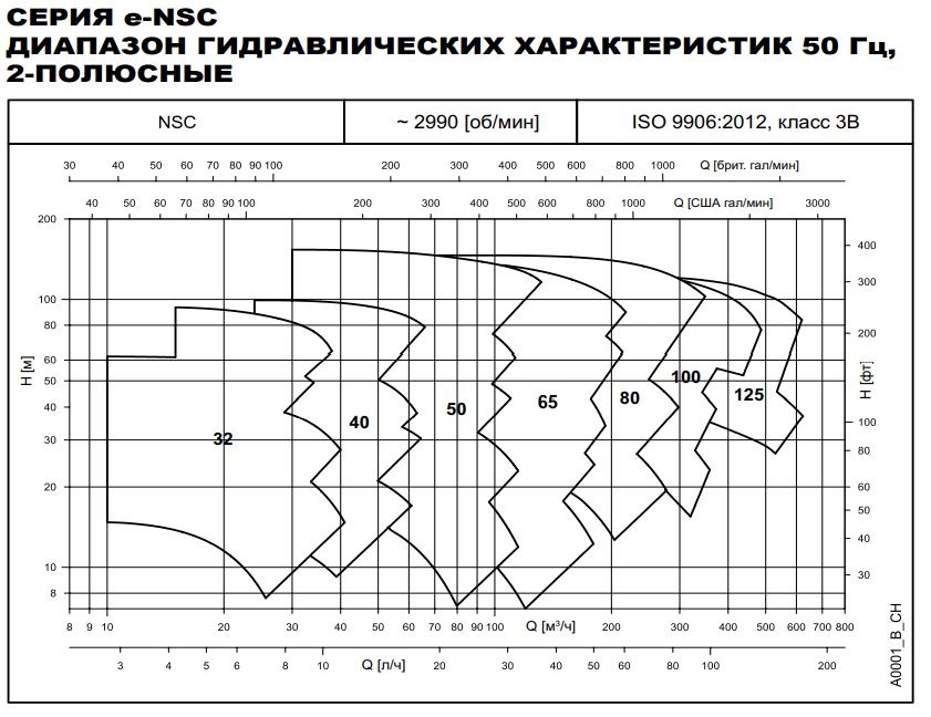 - Гидравлические характеристики отвечают требованиям ISO 9906:2012, класс 3B