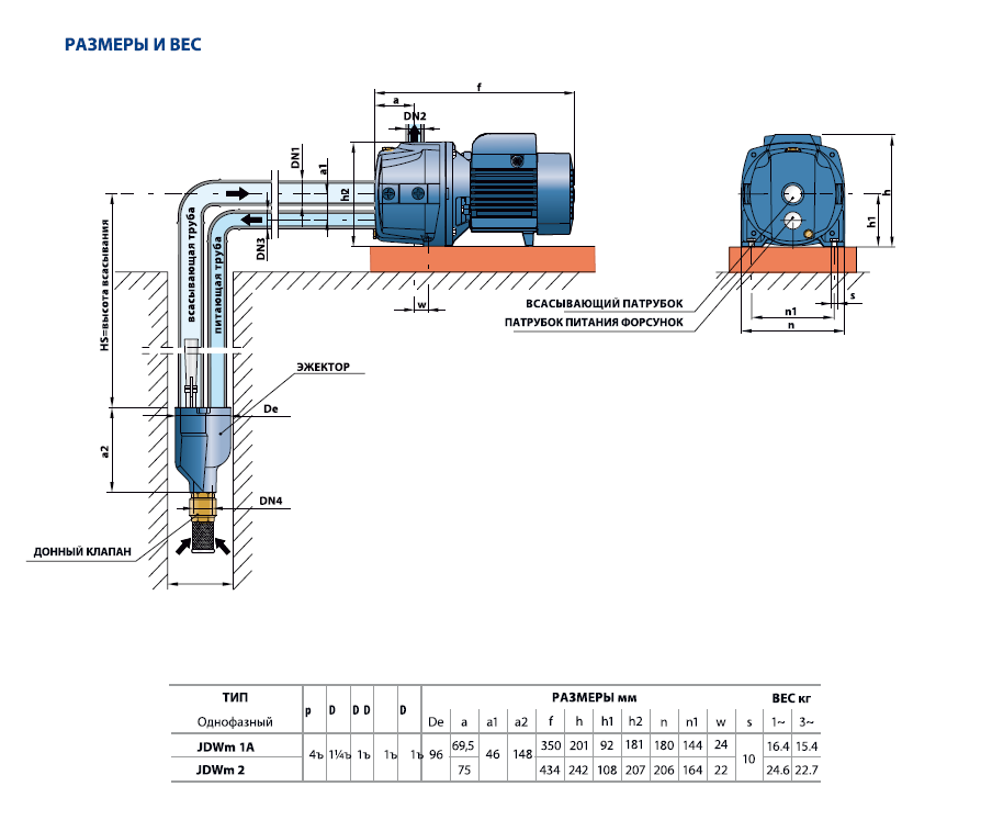 Самовсасывающие насосы Pedrollo JDW — это серия мощных насосов, производительность которых доходит до 1680 литров в час, с суммарным напором воды до 81 метра. Данные насосы предназначены для перекачивания жидкостей с глубины более 9 метров. Им следует перекачивать только чистую воду с содержанием воздуха.Агрегат предназначен для водоснабжения частных домов и коттеджей, в случаях, когда требуется повышение давления. Его следует устанавливать в закрытом помещении, или месте защищенном от погодных условий и осадков, где температура воздуха не превышает +40 °C.