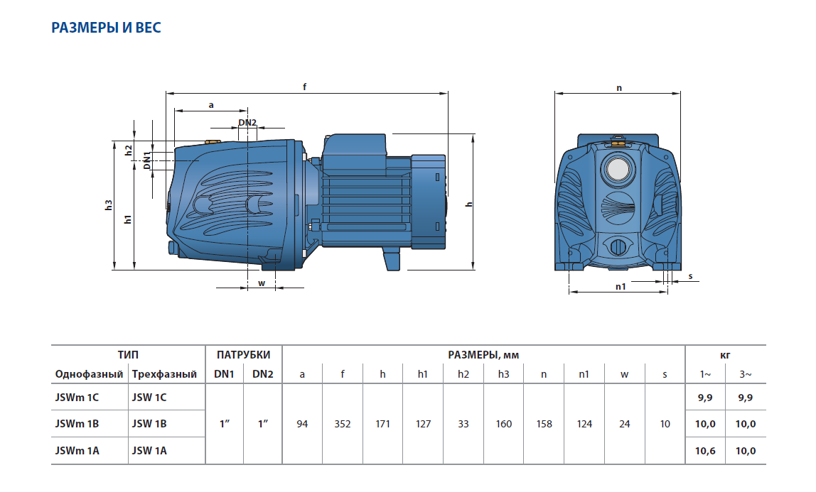 - Манометрическая высота всасывания до 9 м