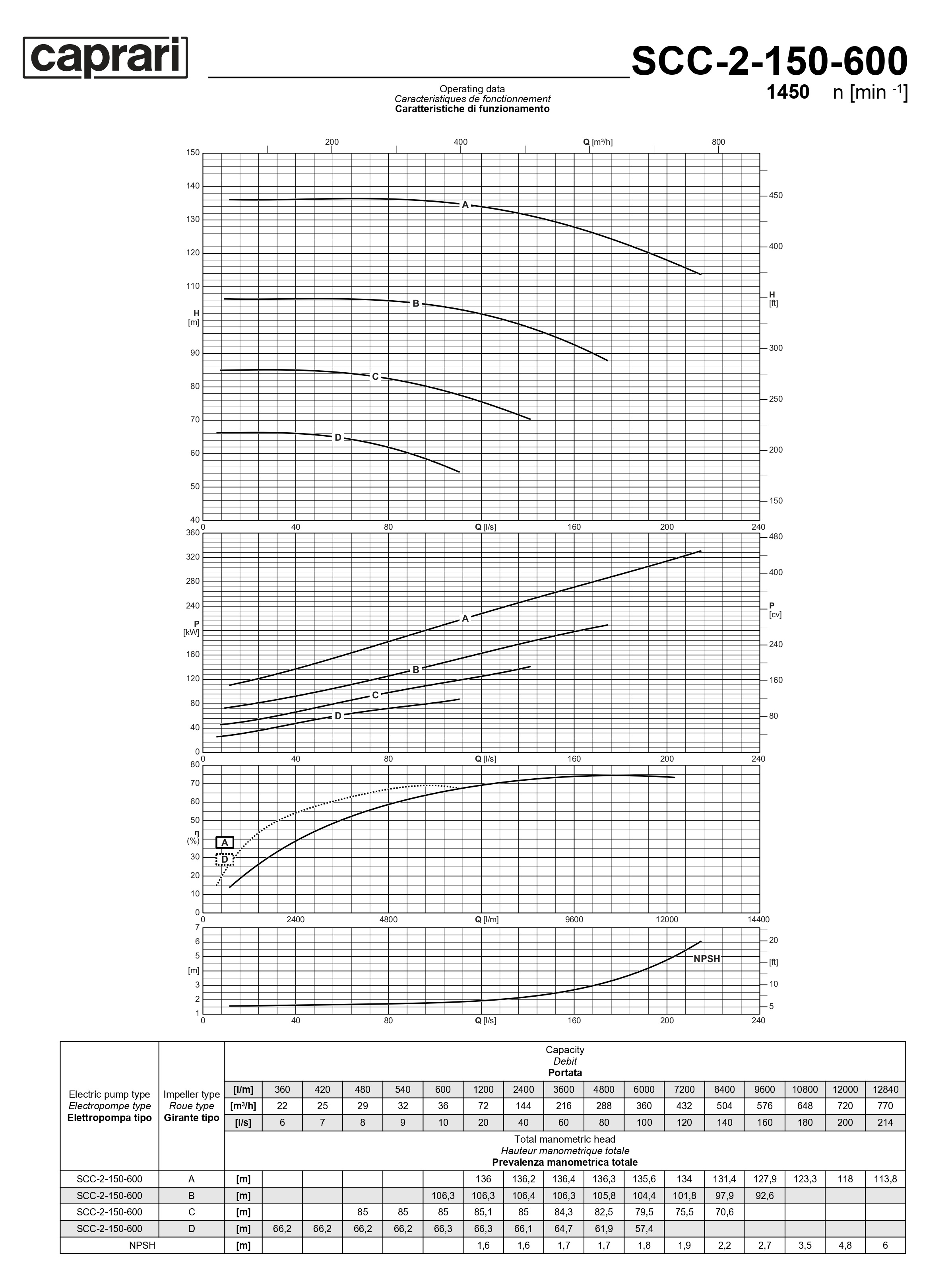 Горизонтальные насосы двустороннего входа Caprari SCC-2-150-600 1450