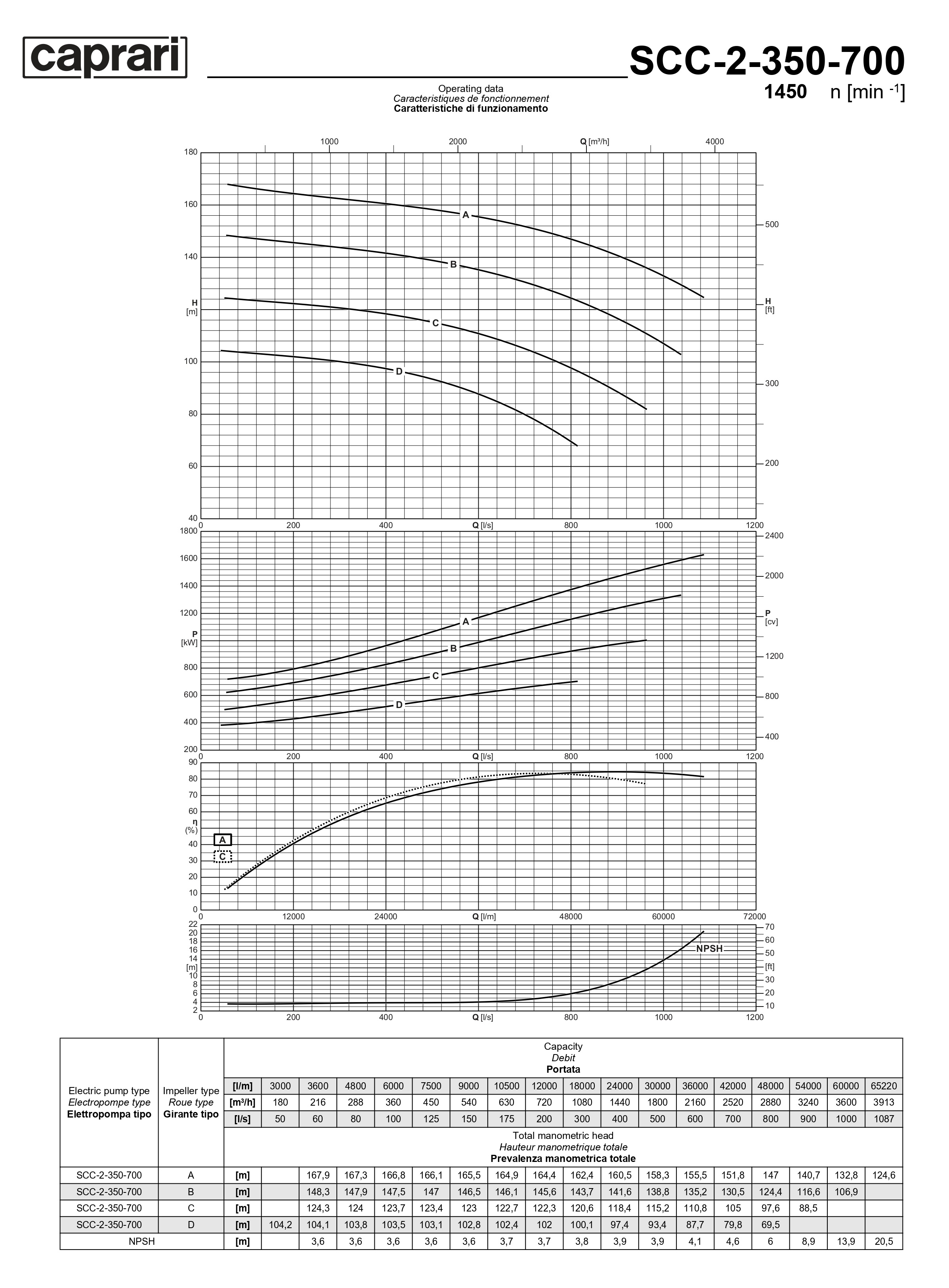 Горизонтальные насосы двустороннего входа Caprari SCC-2-350-700 1450