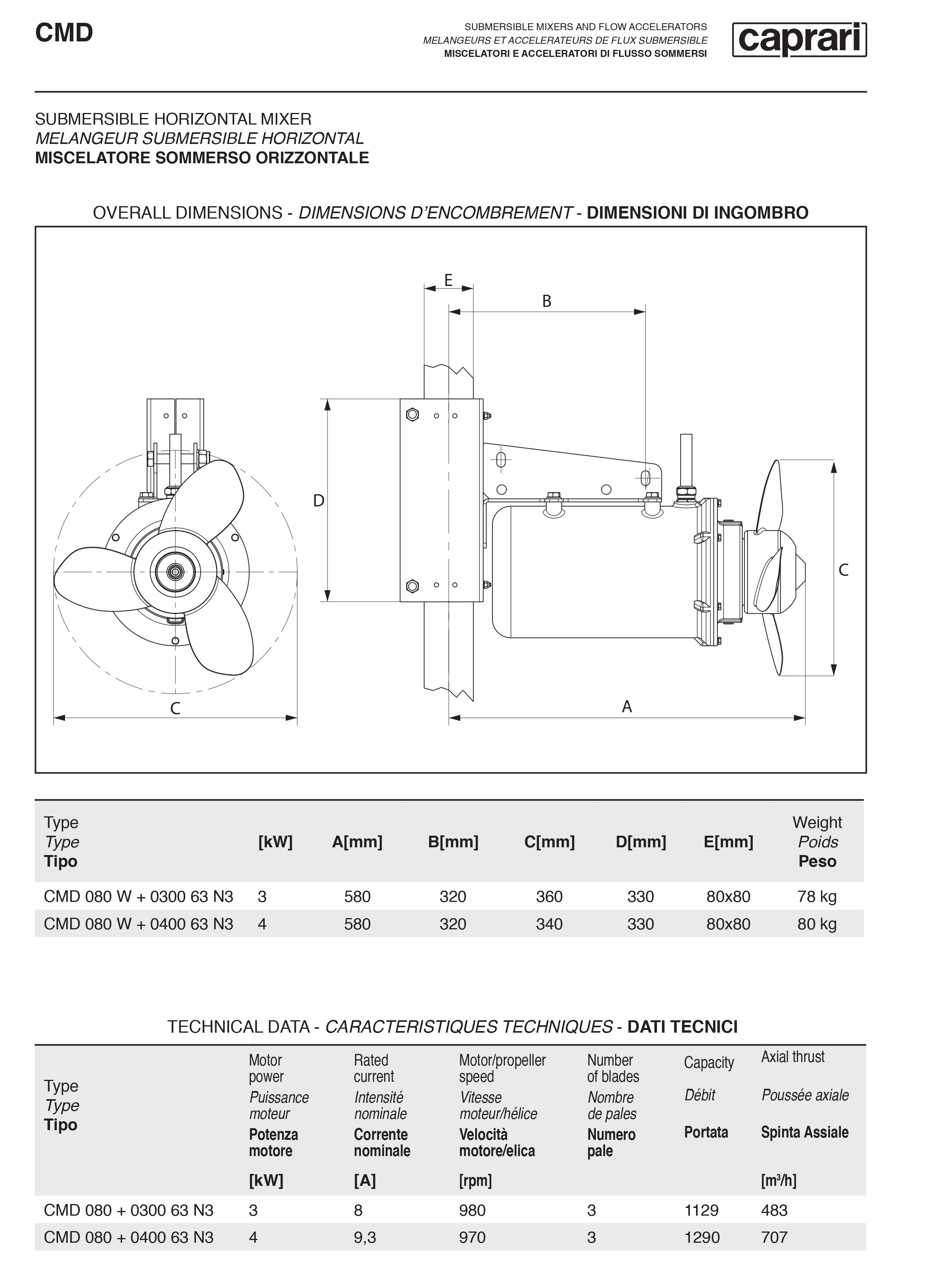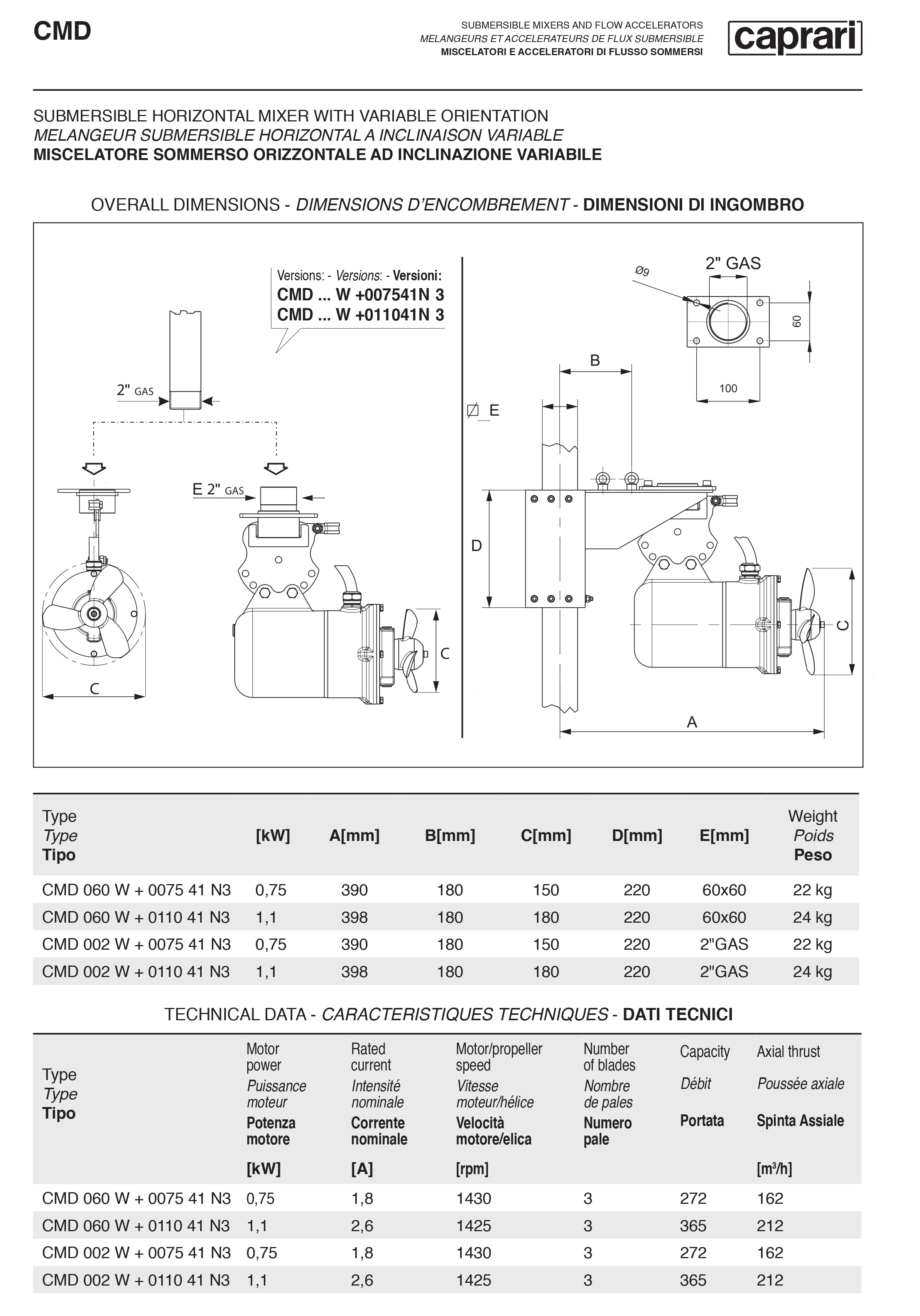 Погружные ускорители потока (мешалки) Caprari предназначенны для всех гражданских и промышленных применений.