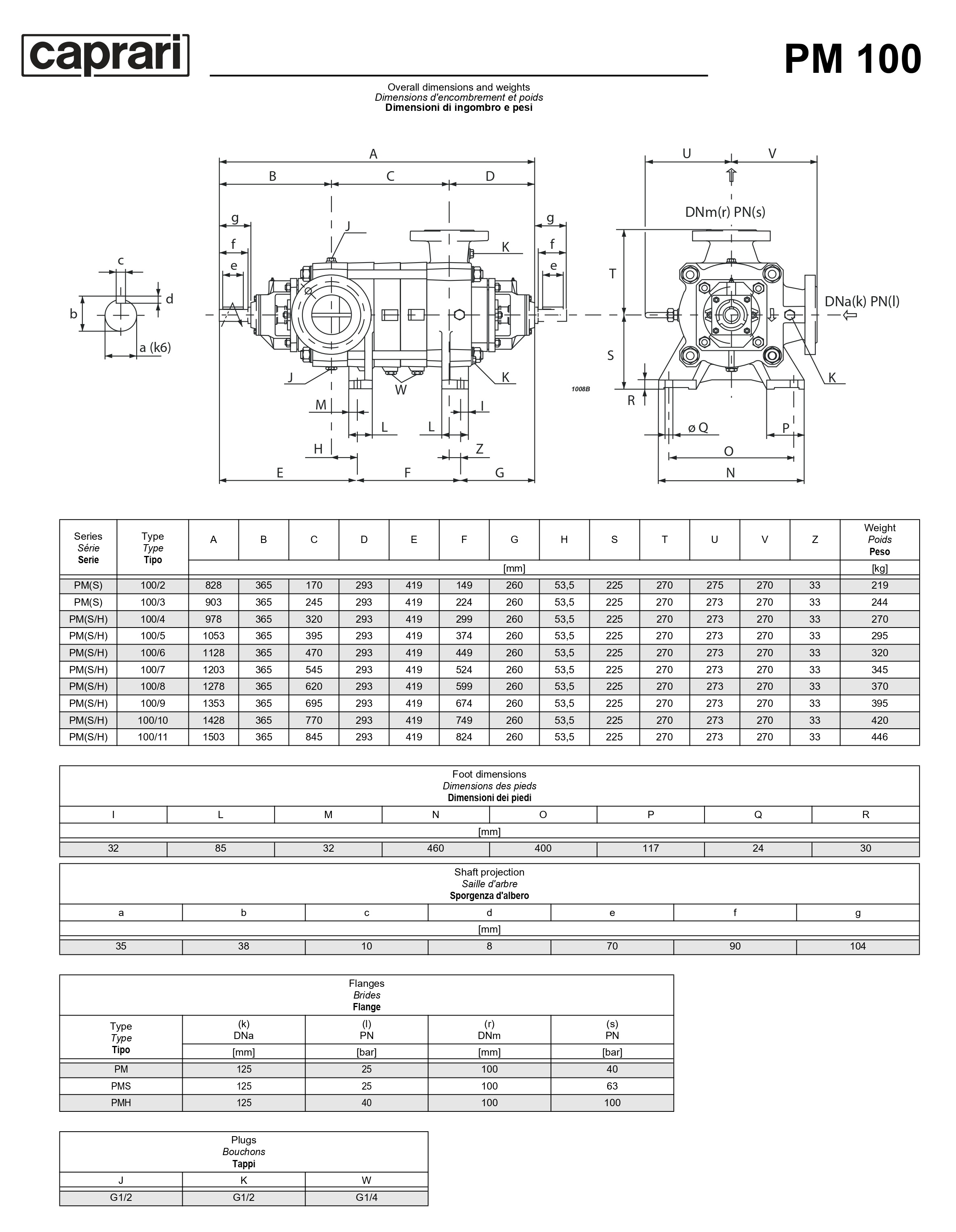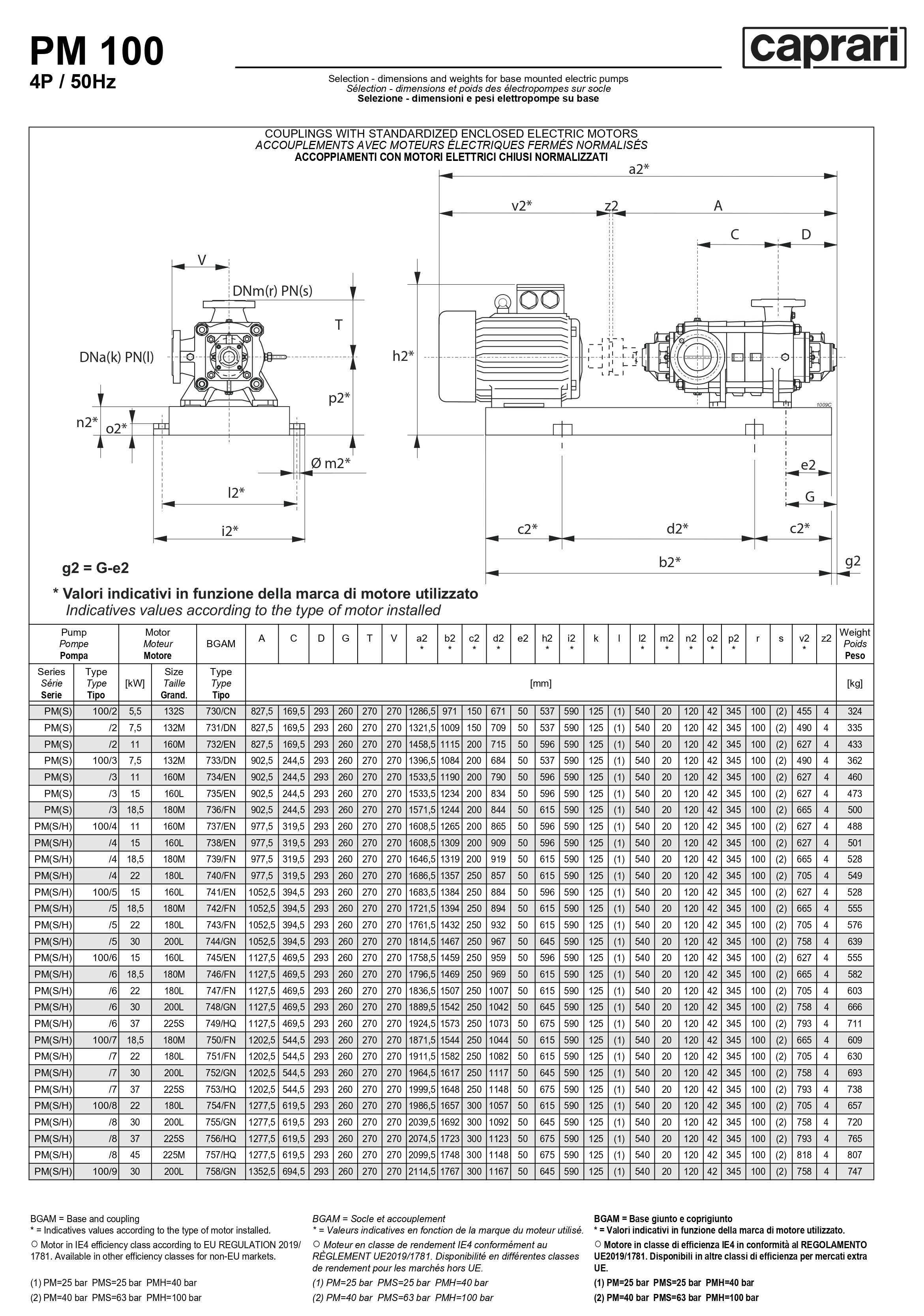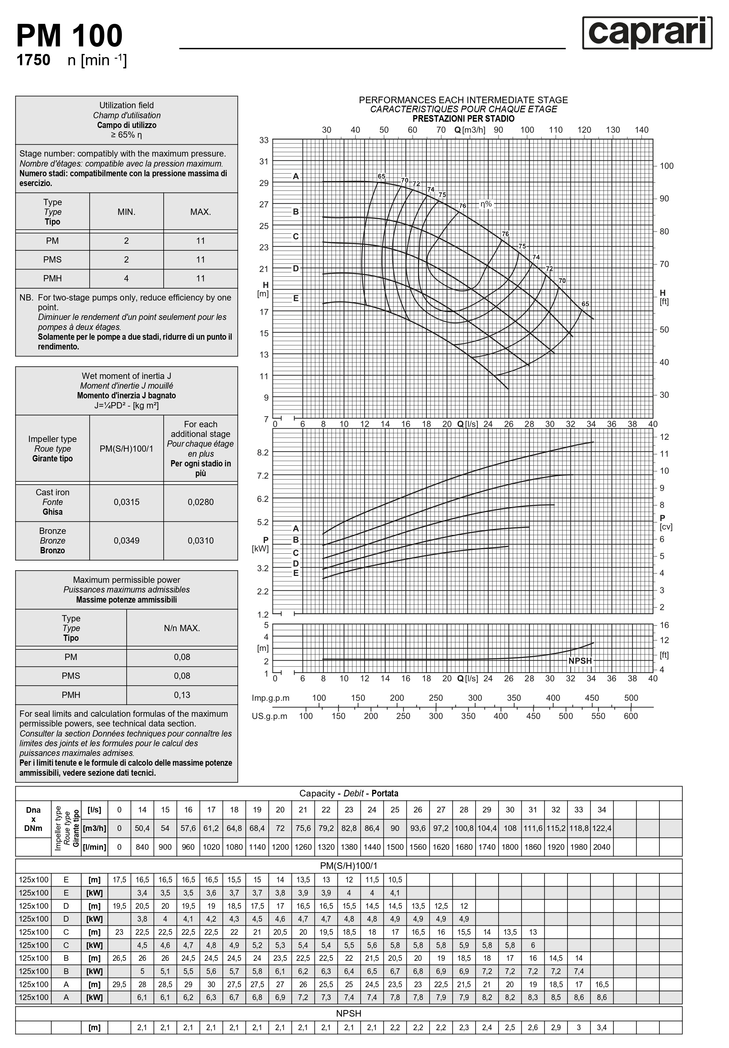 Горизонтальные многоступенчатые насосы высокого давления Caprari PM 100 1750
