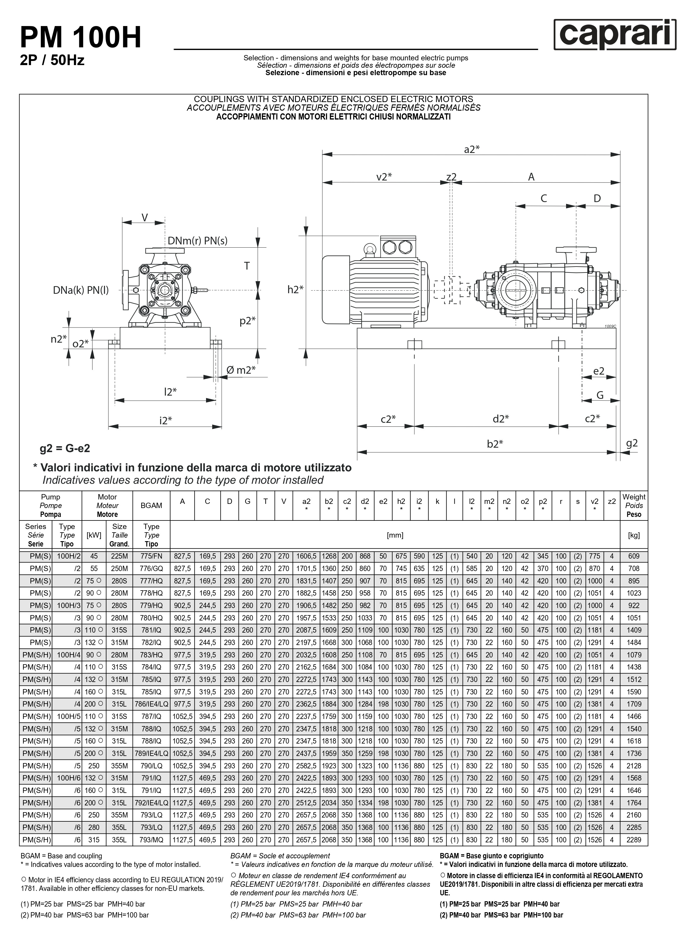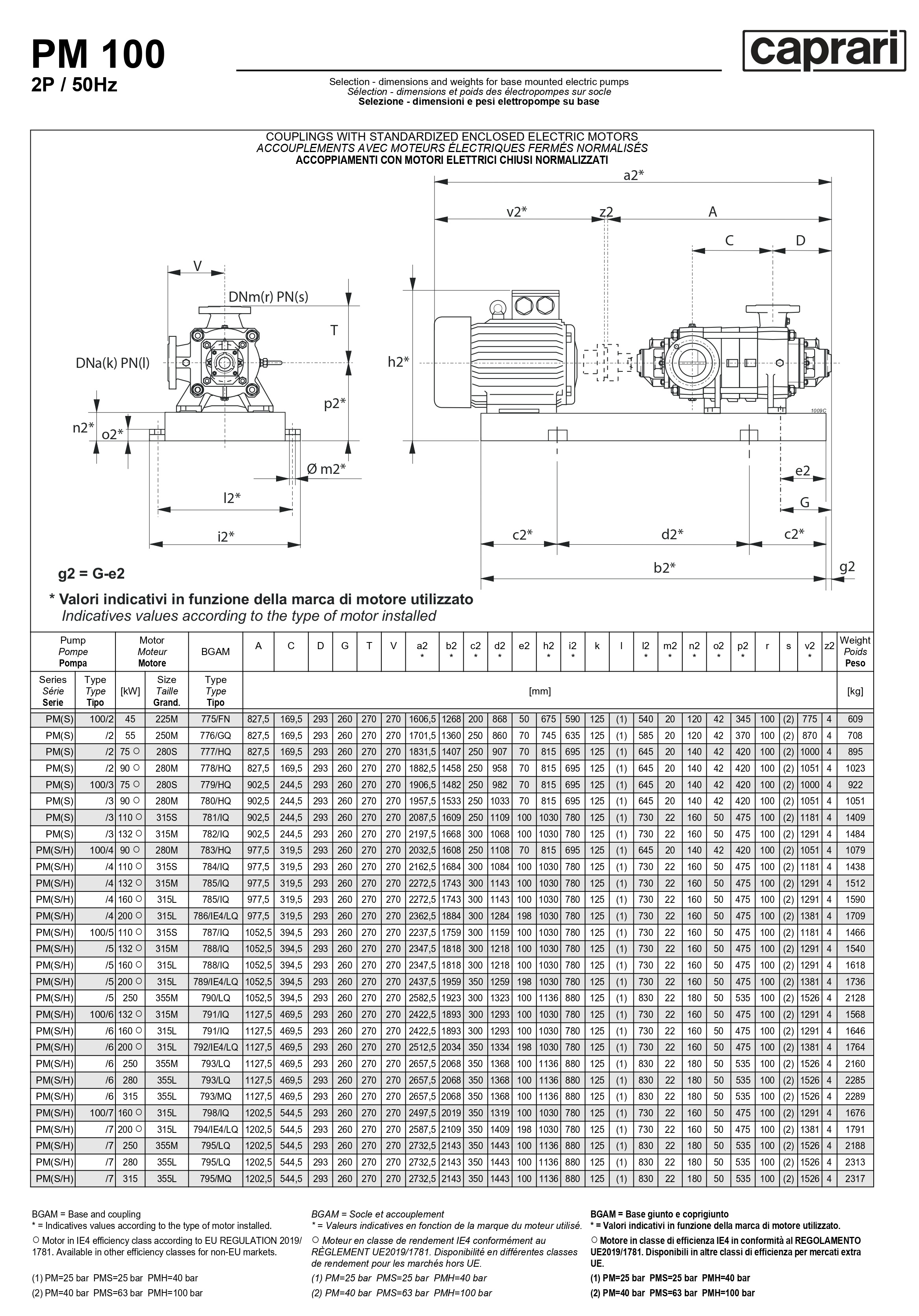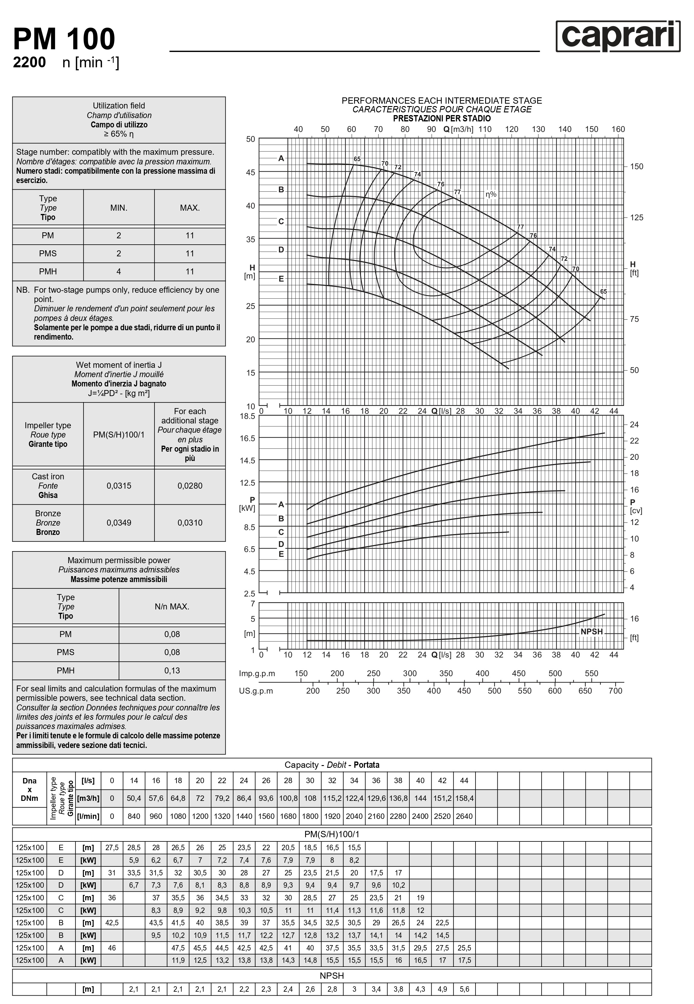 Горизонтальные многоступенчатые насосы высокого давления Caprari PM 100 2200