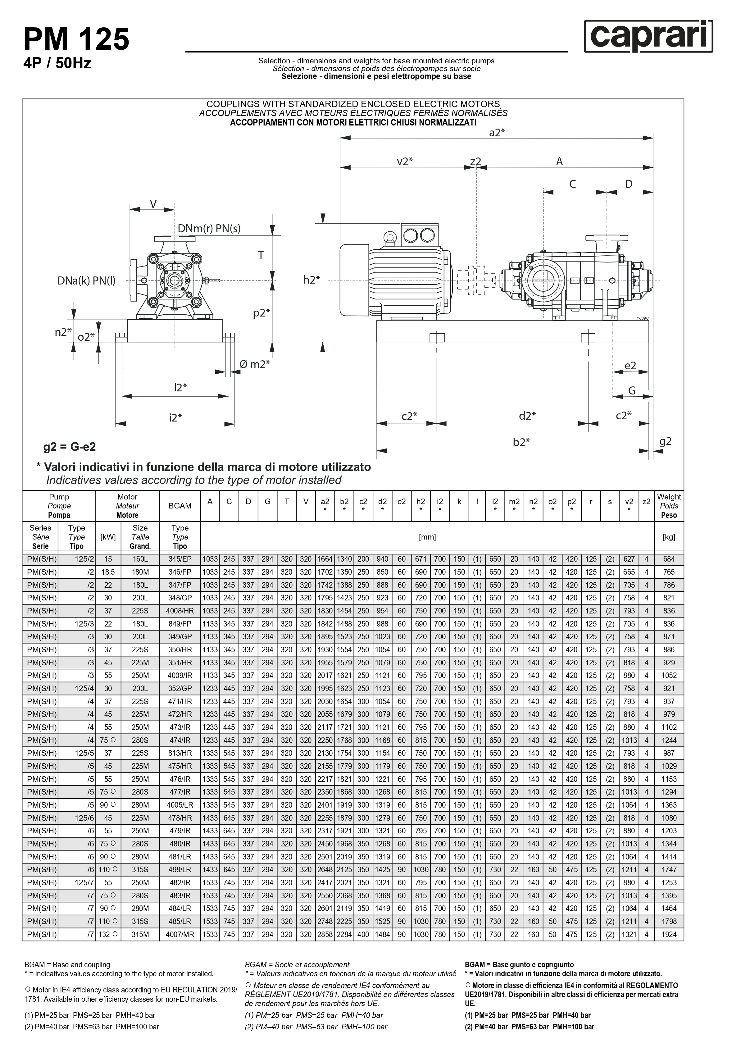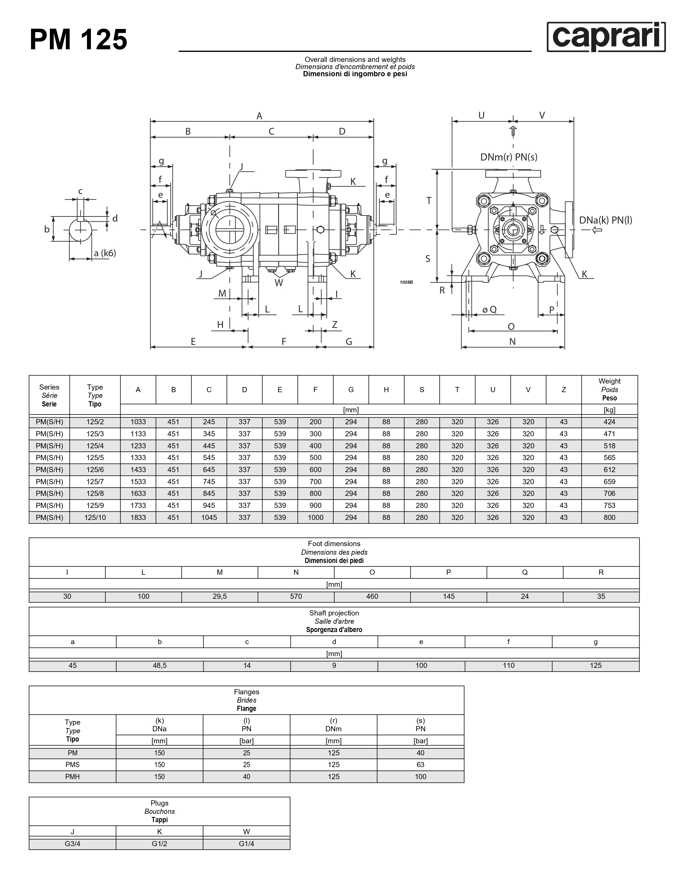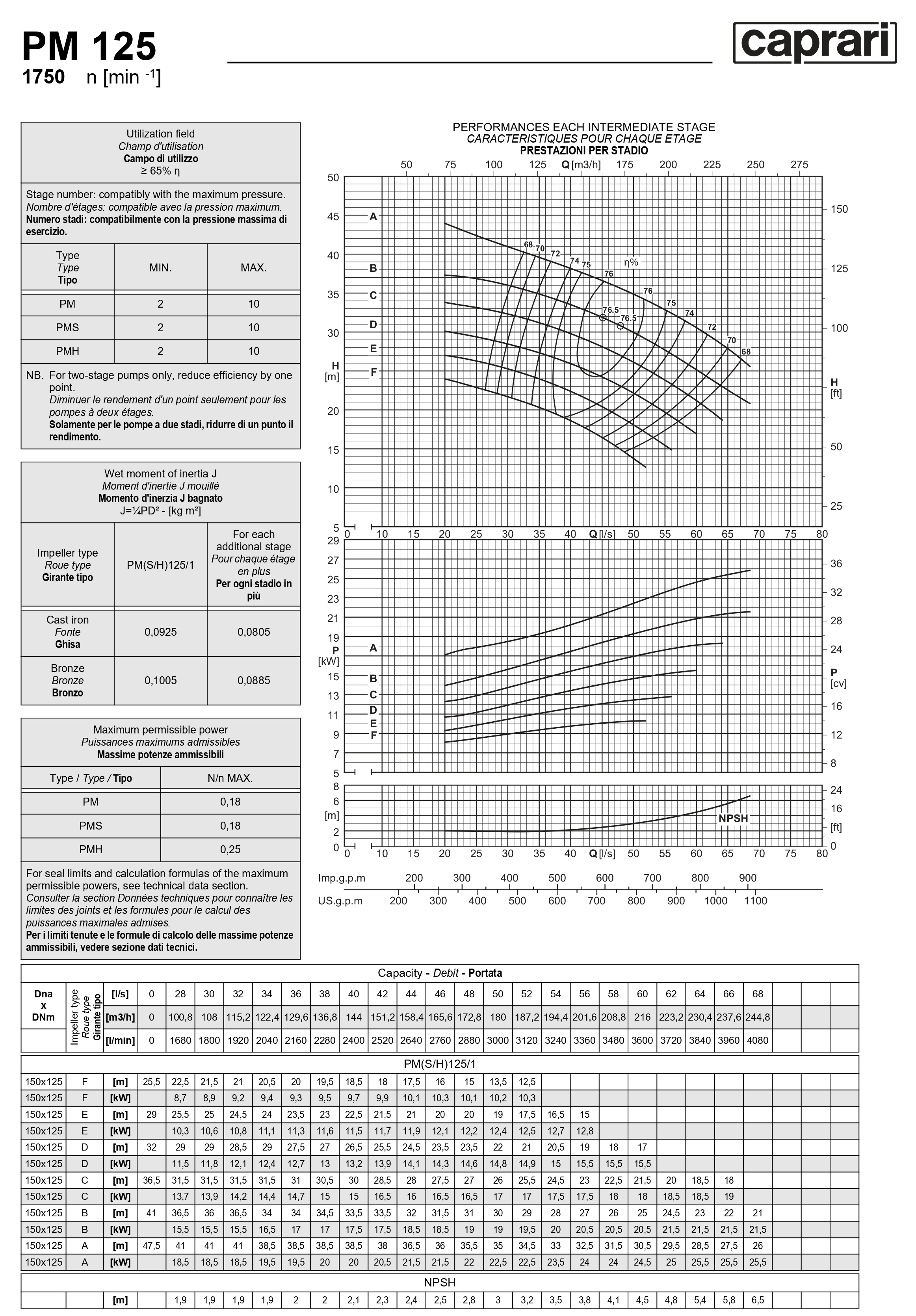 Горизонтальные многоступенчатые насосы высокого давления Caprari PM 125 1750