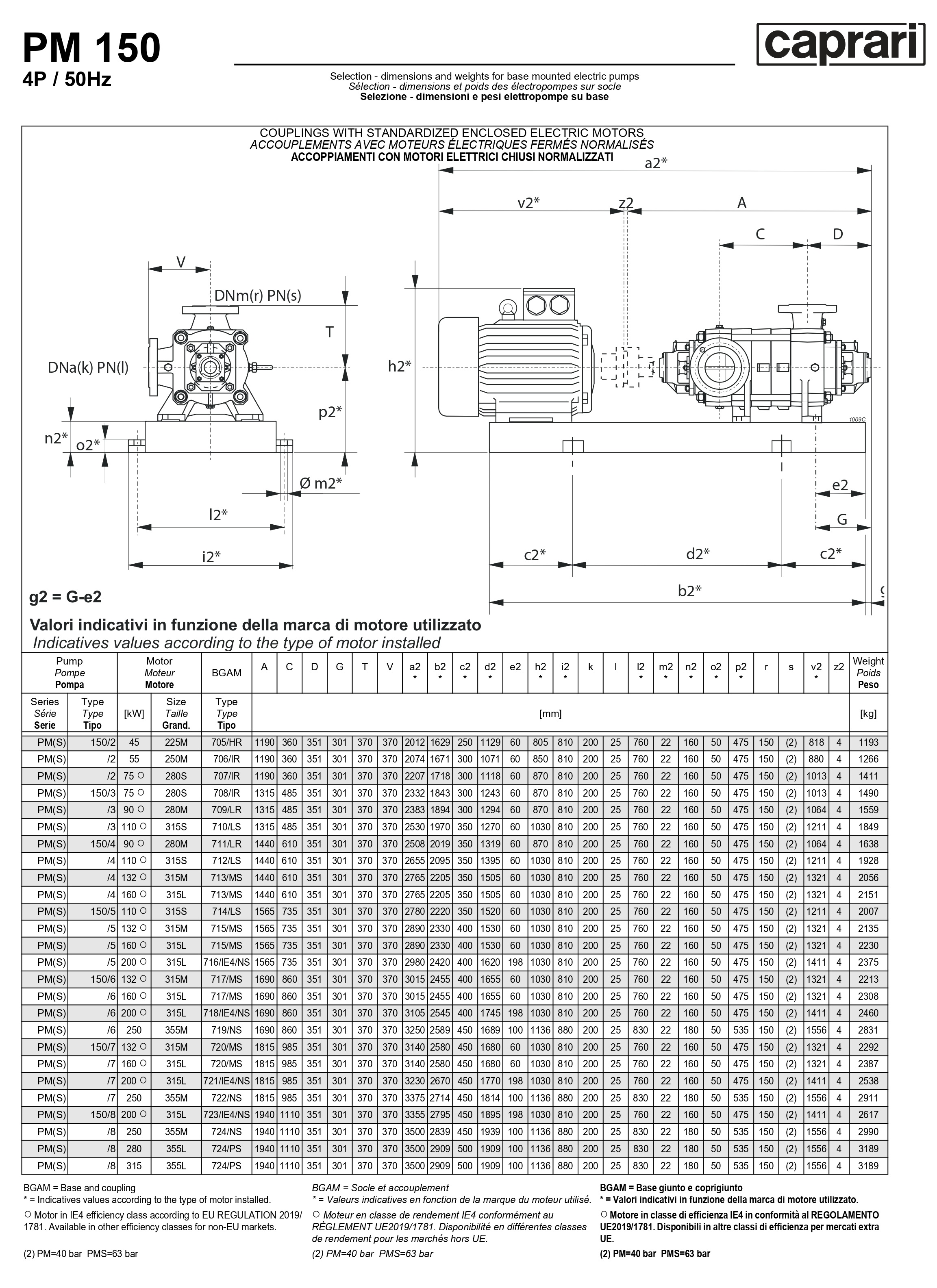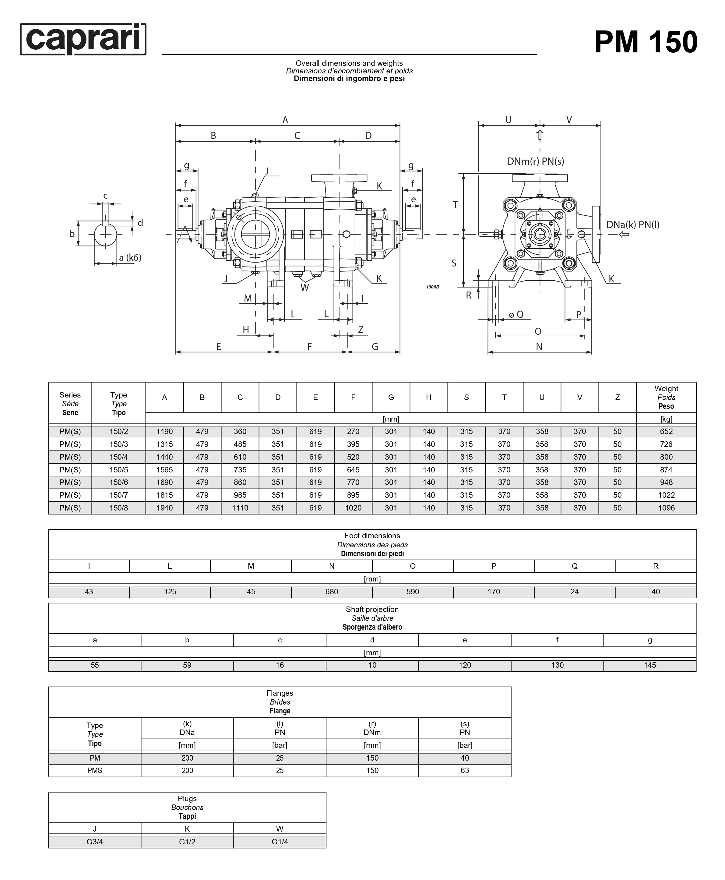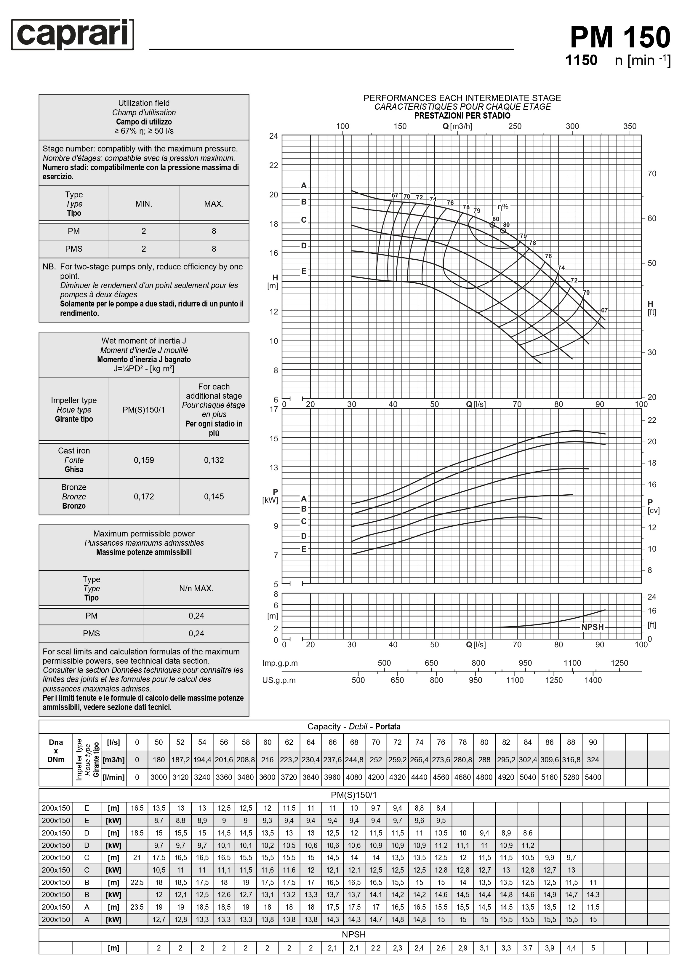 Горизонтальные многоступенчатые насосы высокого давления Caprari PM 150 1150