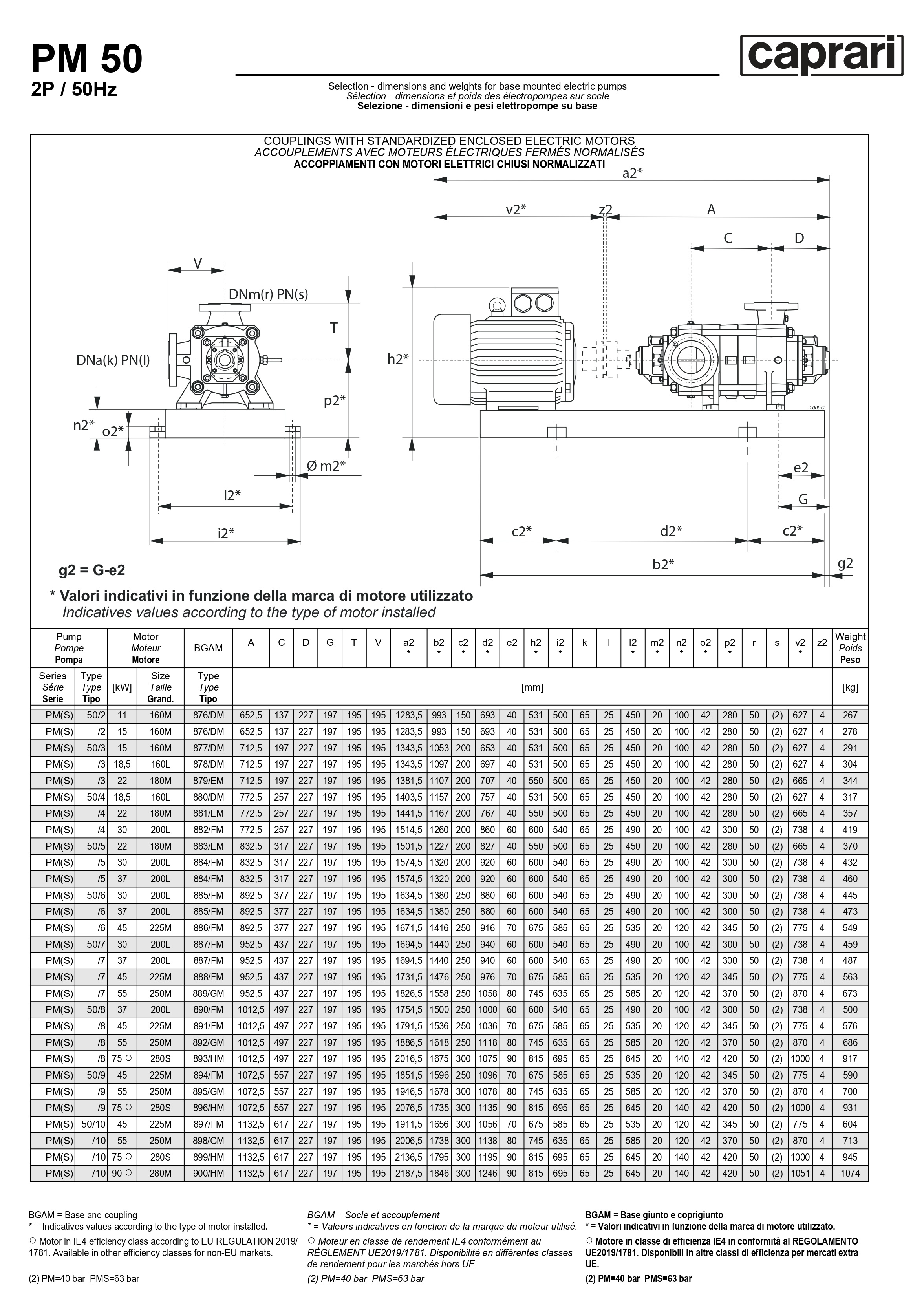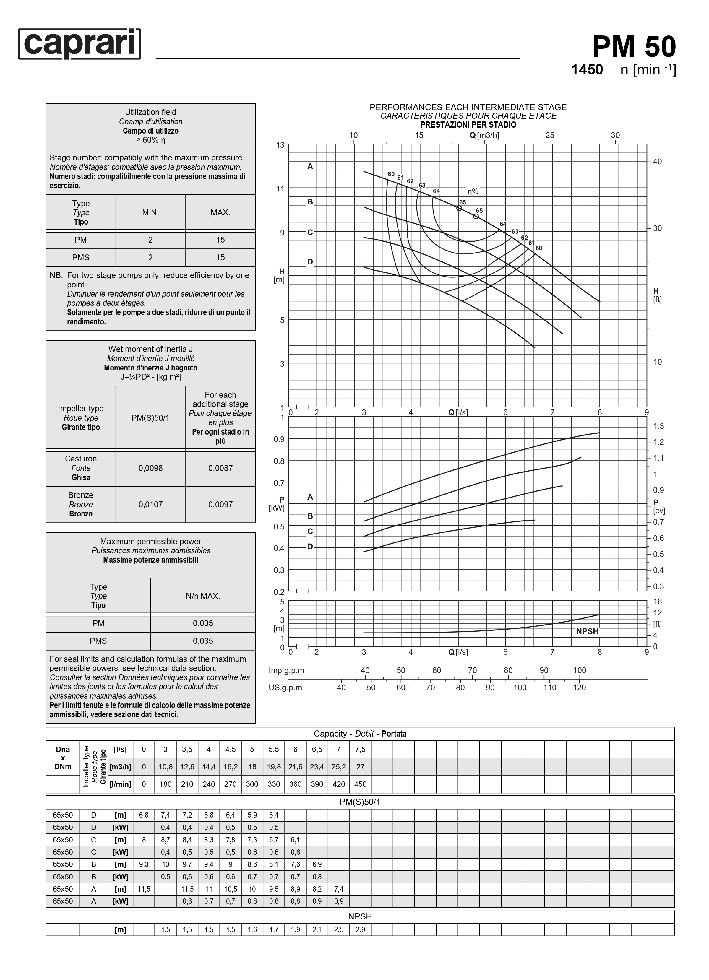 Горизонтальные многоступенчатые насосы высокого давления Caprari PM 50 1450