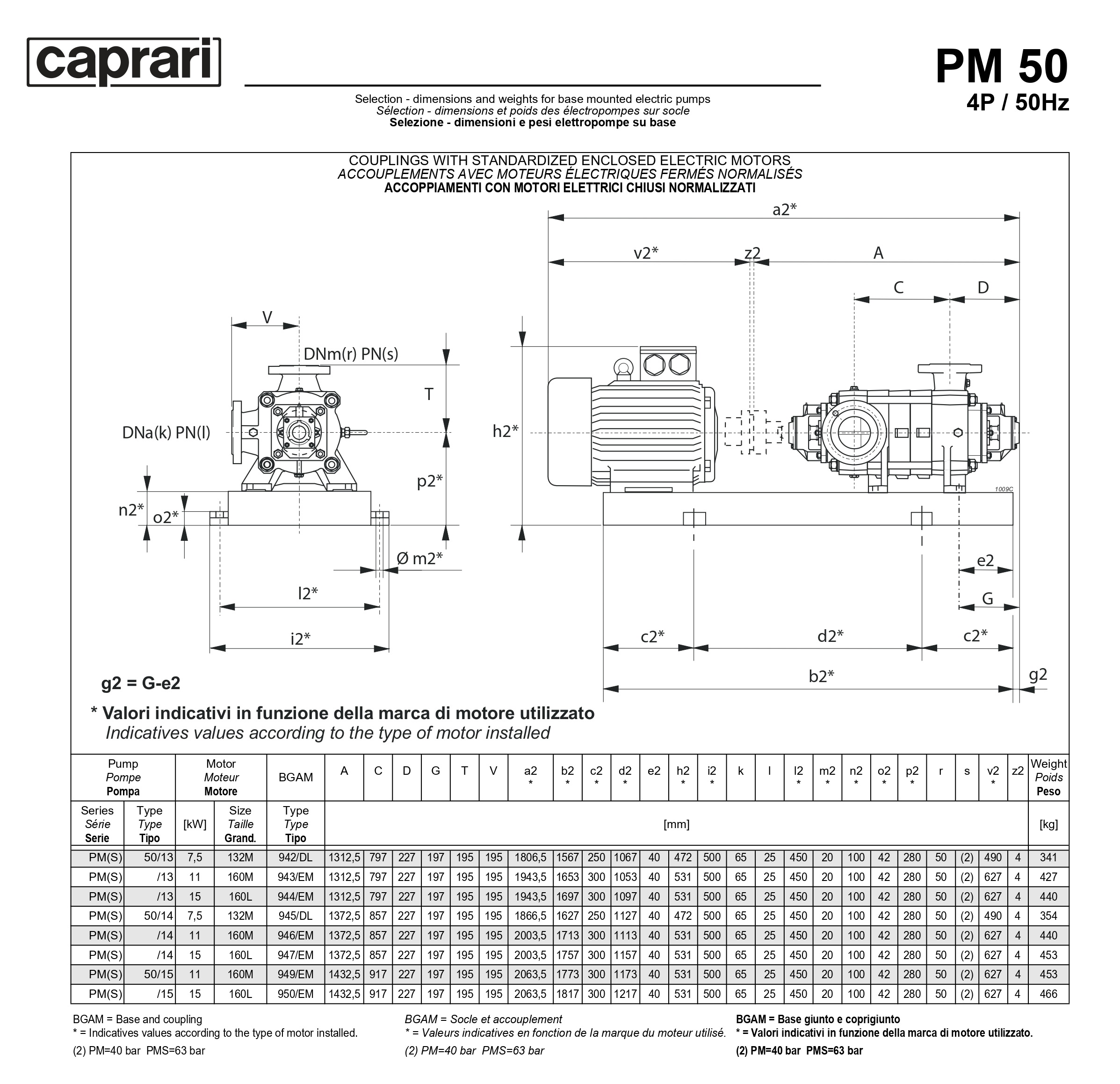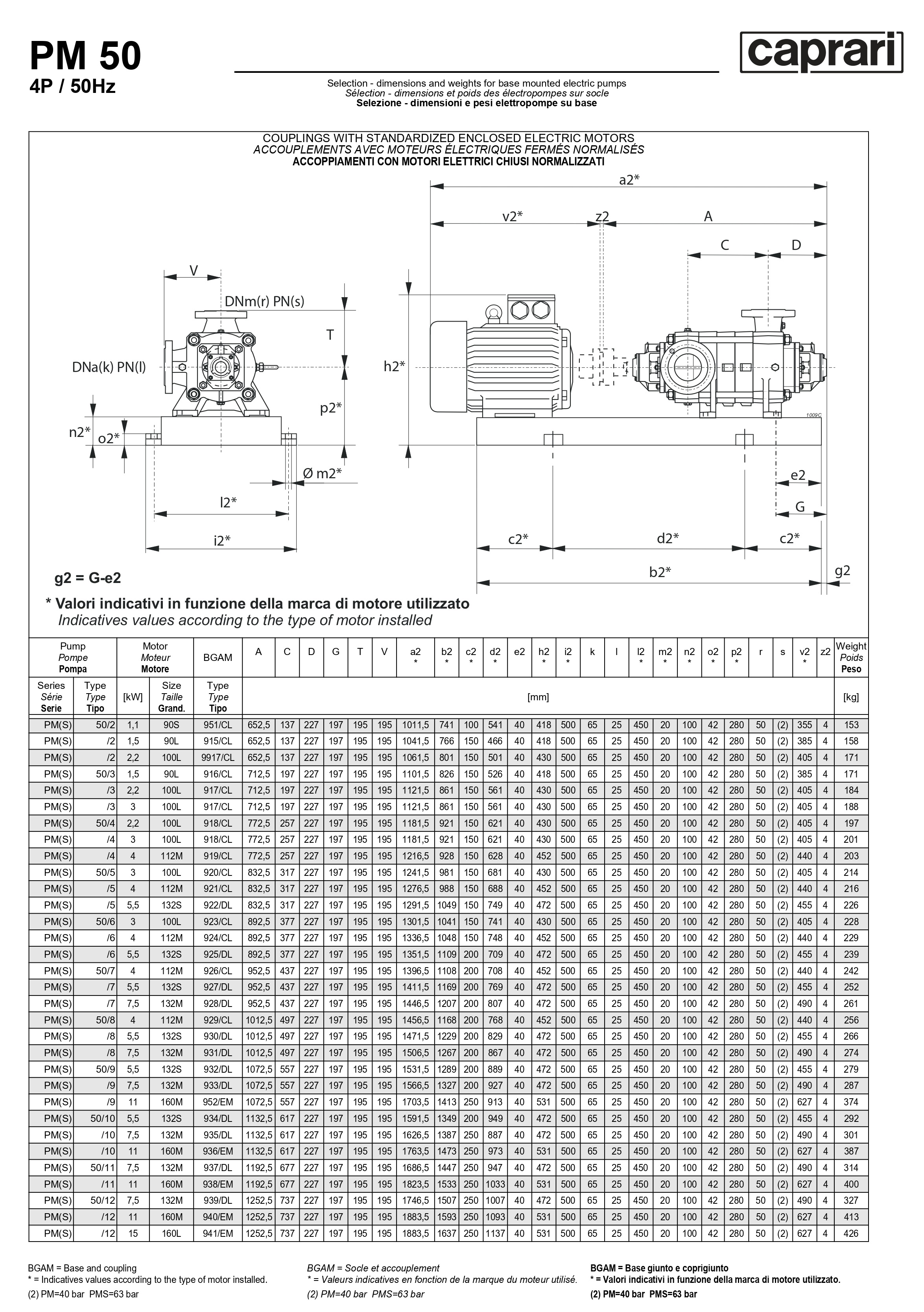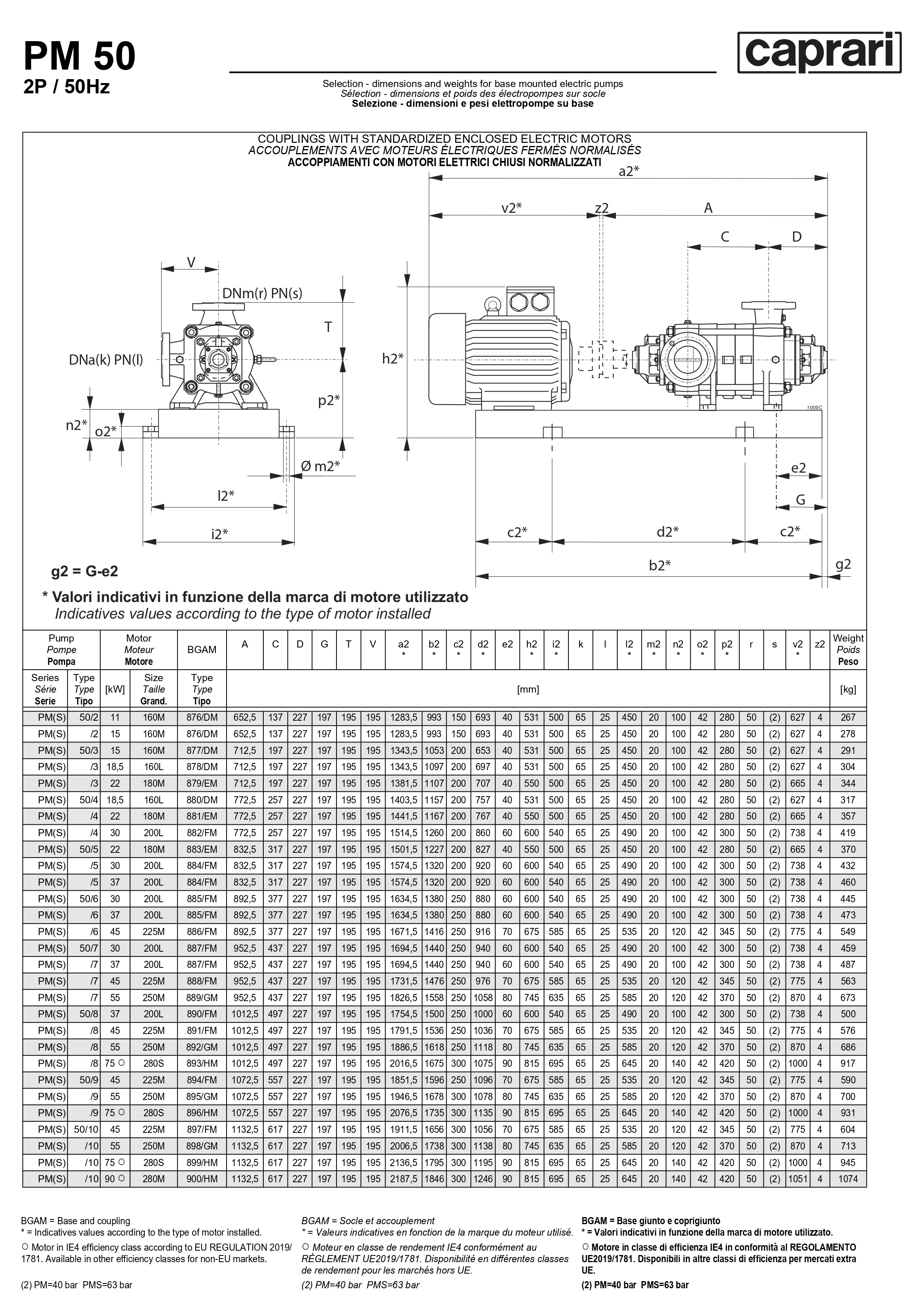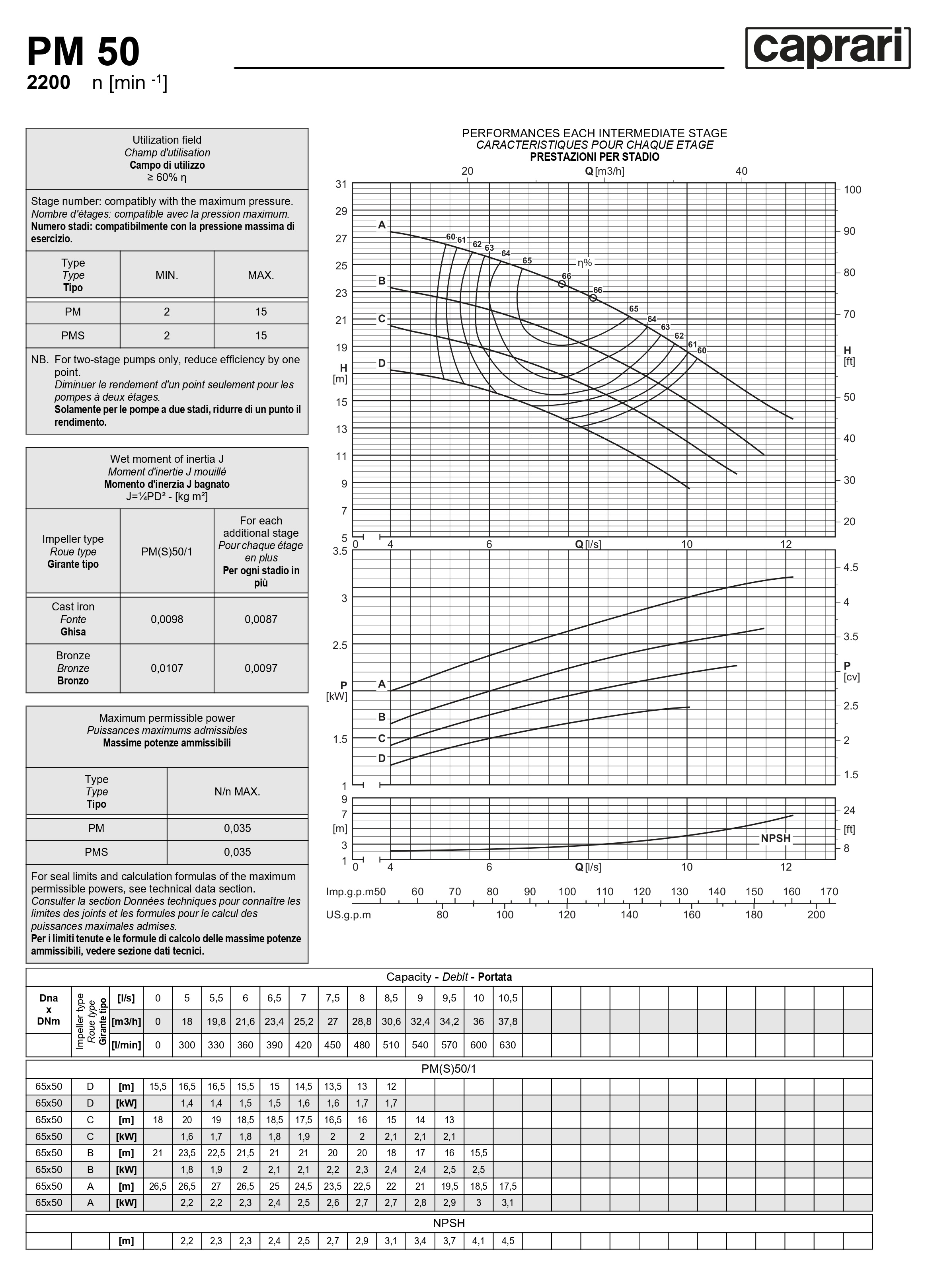 Горизонтальные многоступенчатые насосы высокого давления Caprari PM 50 2200